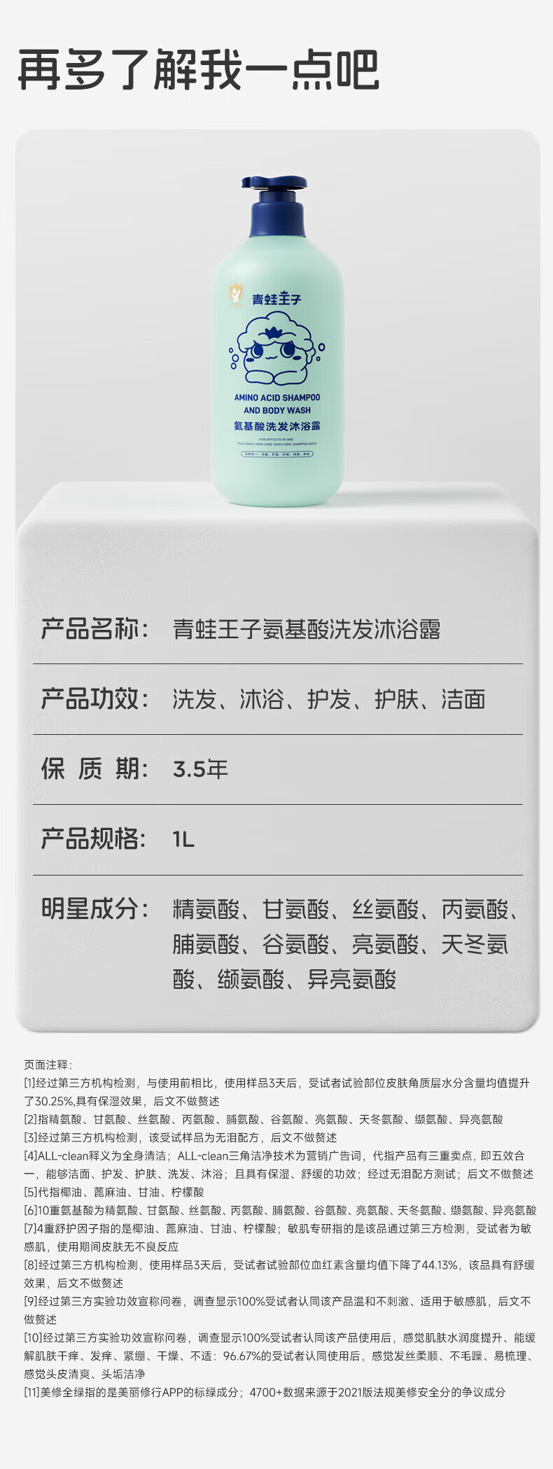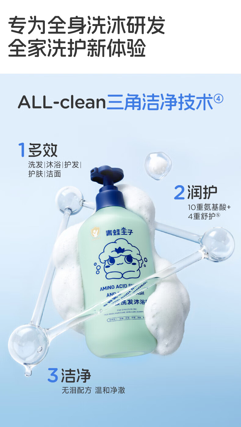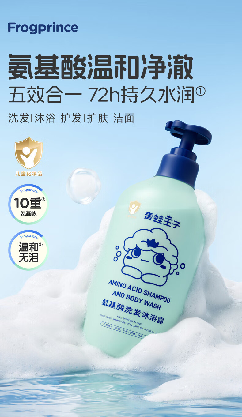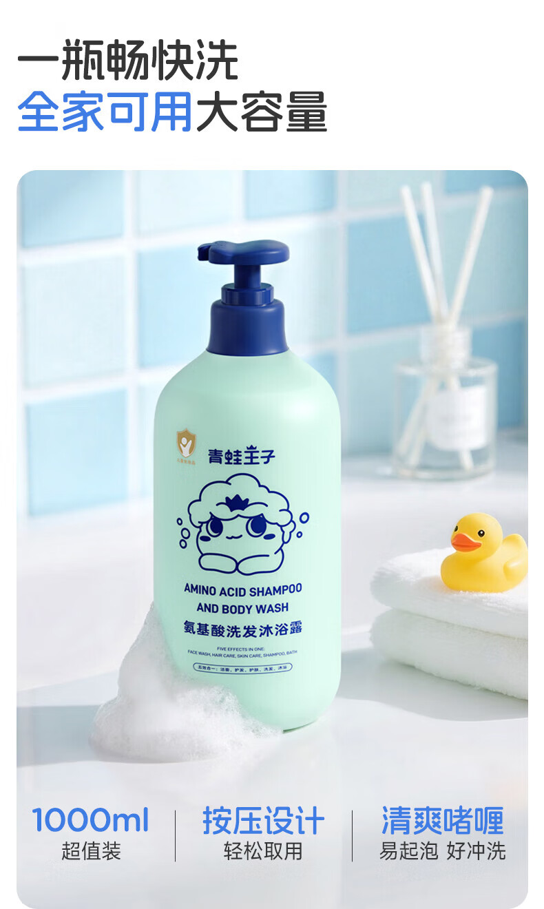 青蛙王子儿童氨基酸洗发沐浴露5合一宝宝沐浴露洗发水婴儿温和无泪清洁 氨基酸洗发沐浴露1L+抑菌洗手液300ml