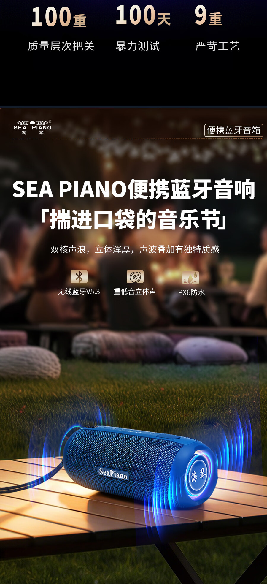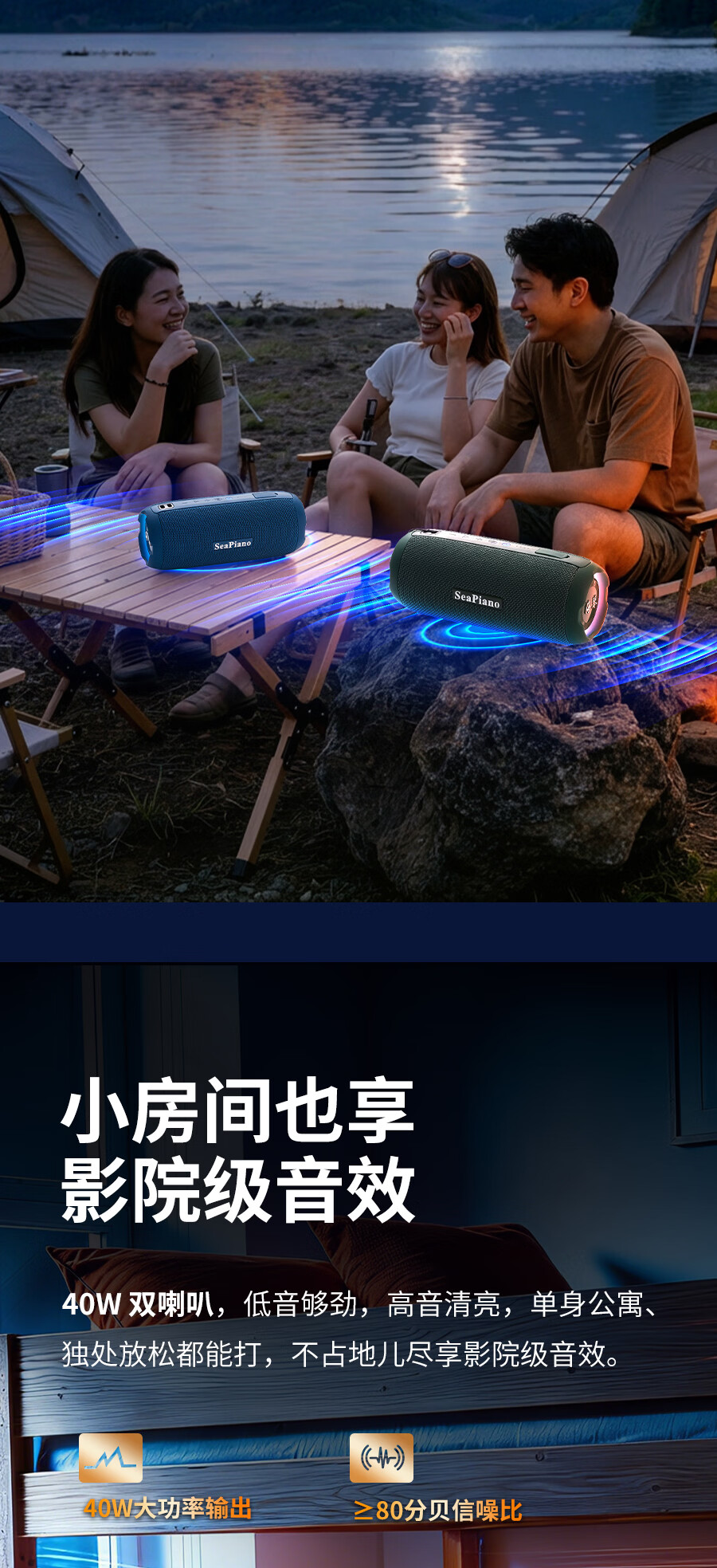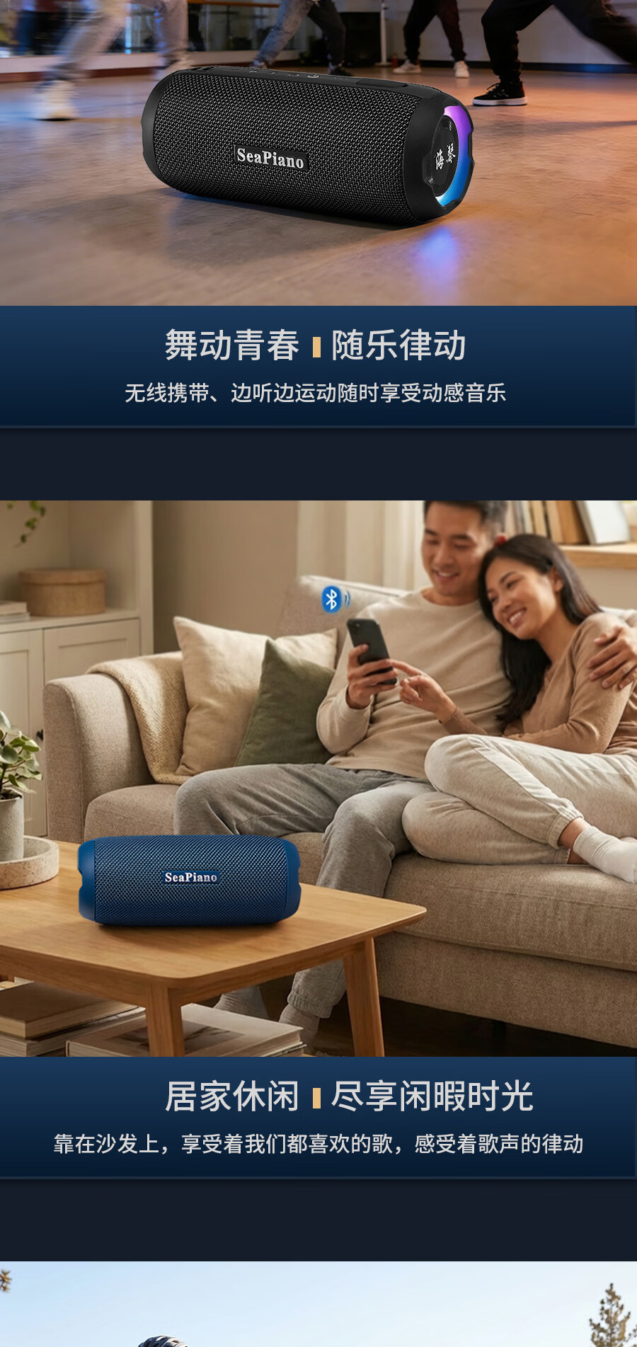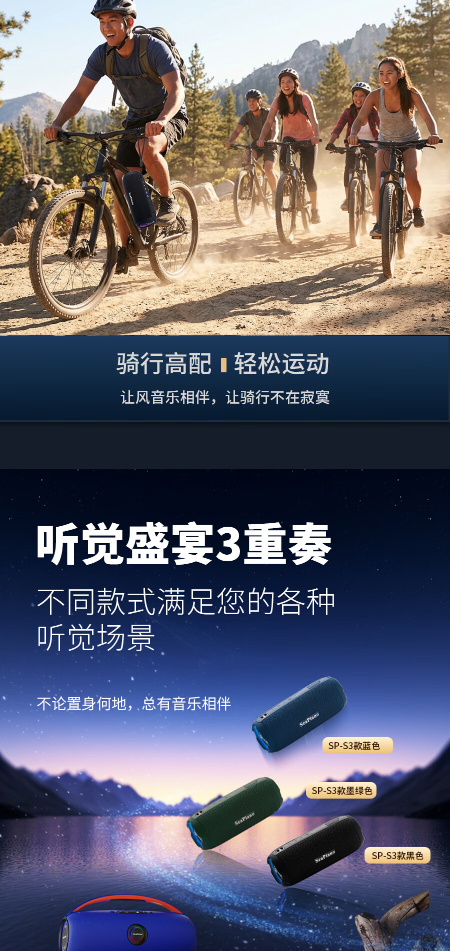 海琴 SEA PIANO蓝牙音响户外便携带露营骑行爬山车载小型低音炮小音箱 雅墨绿Pro旗舰版