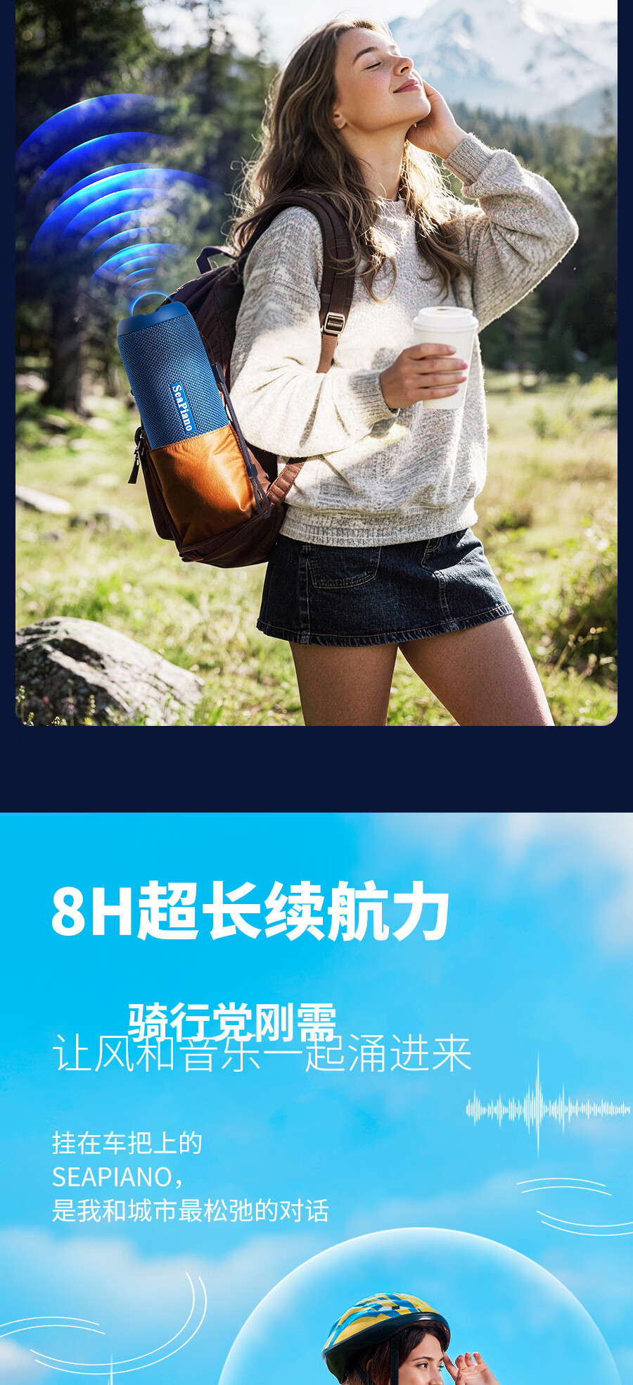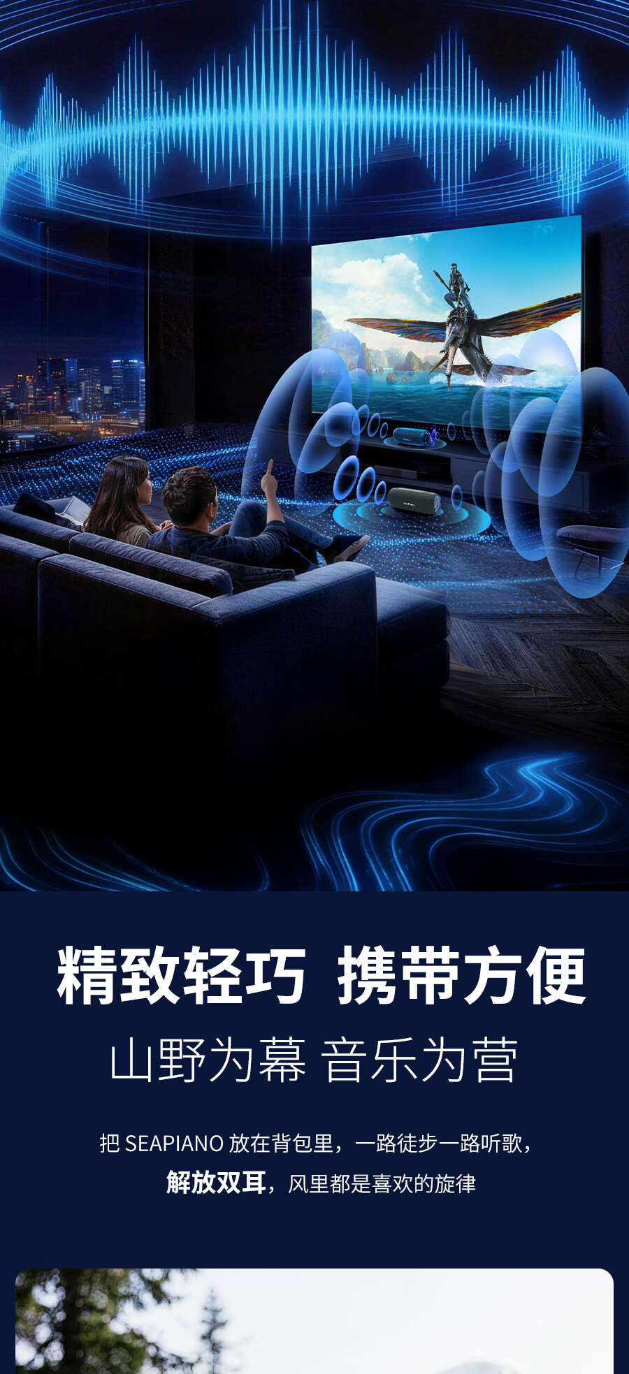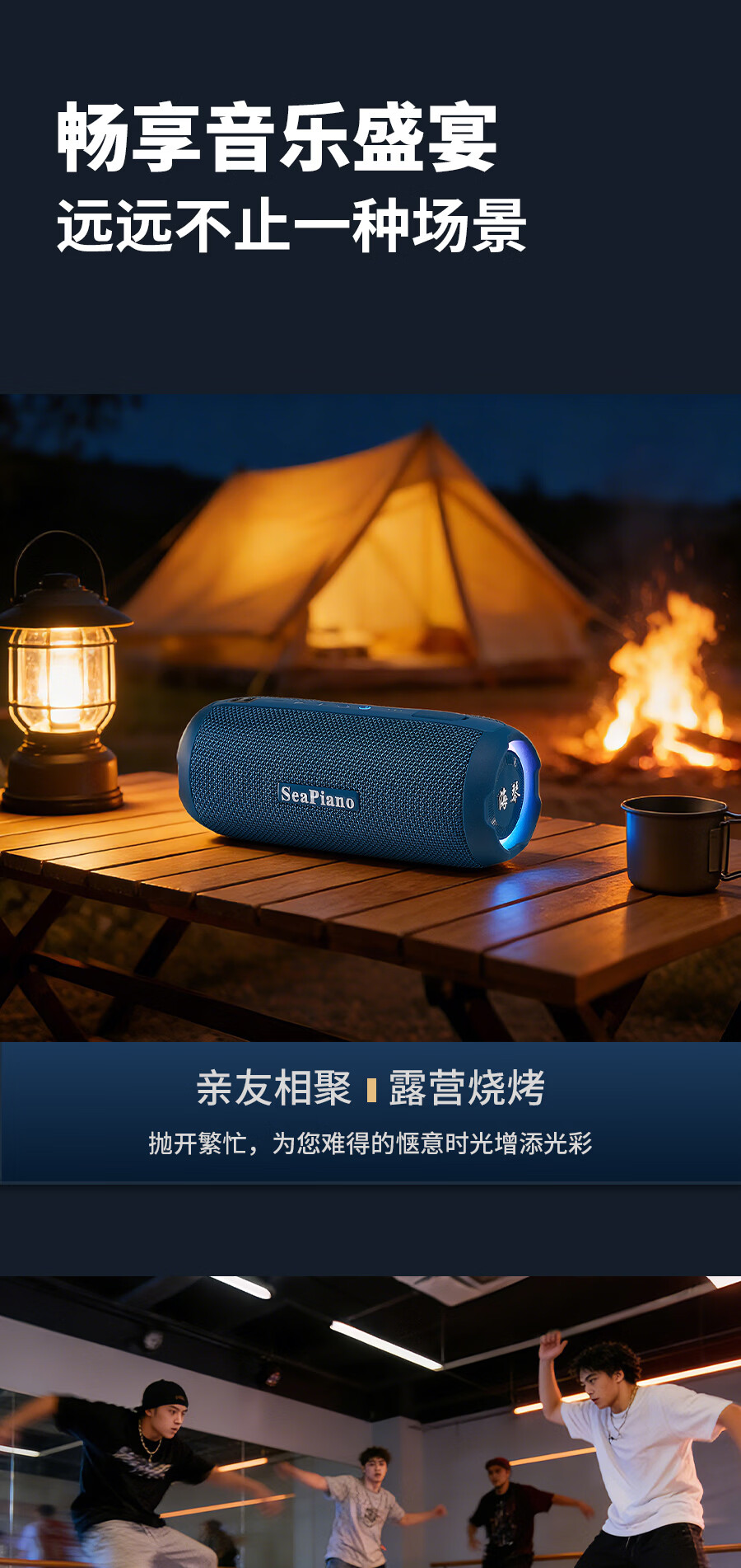海琴 SEA PIANO蓝牙音响户外便携带露营骑行爬山车载小型低音炮小音箱 雅墨绿Pro旗舰版