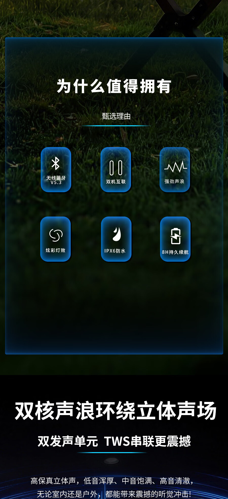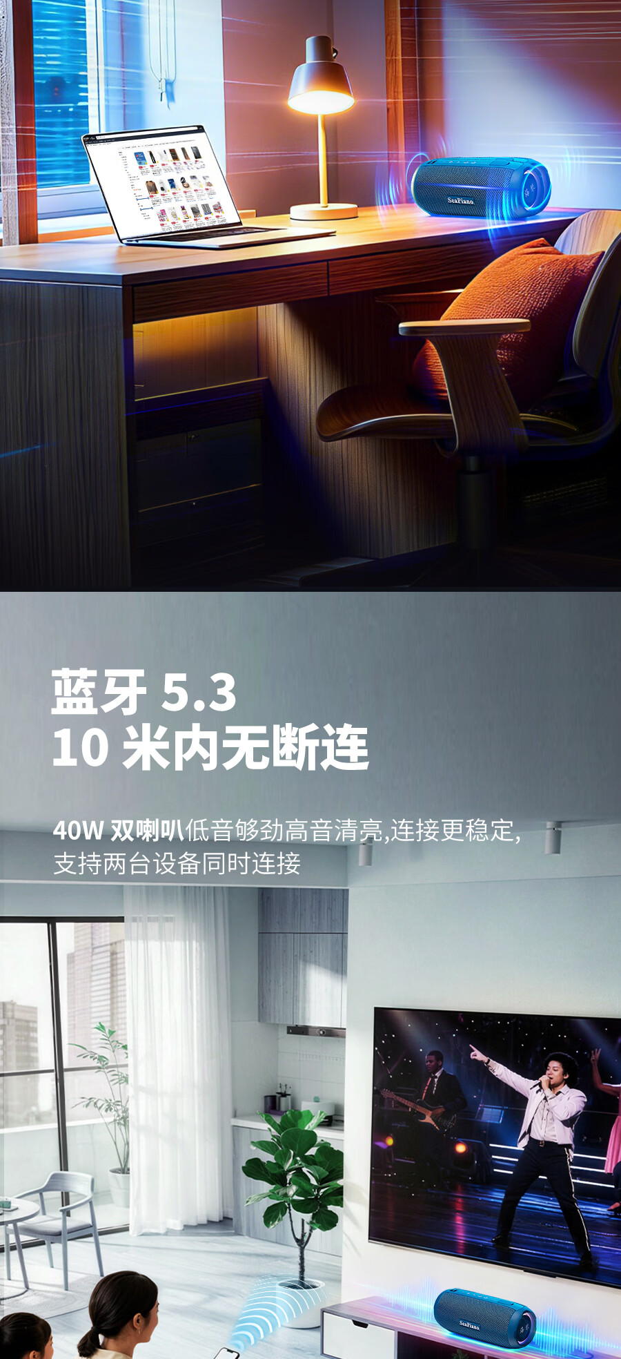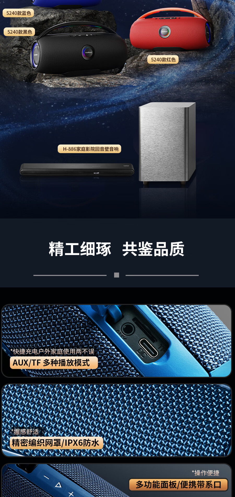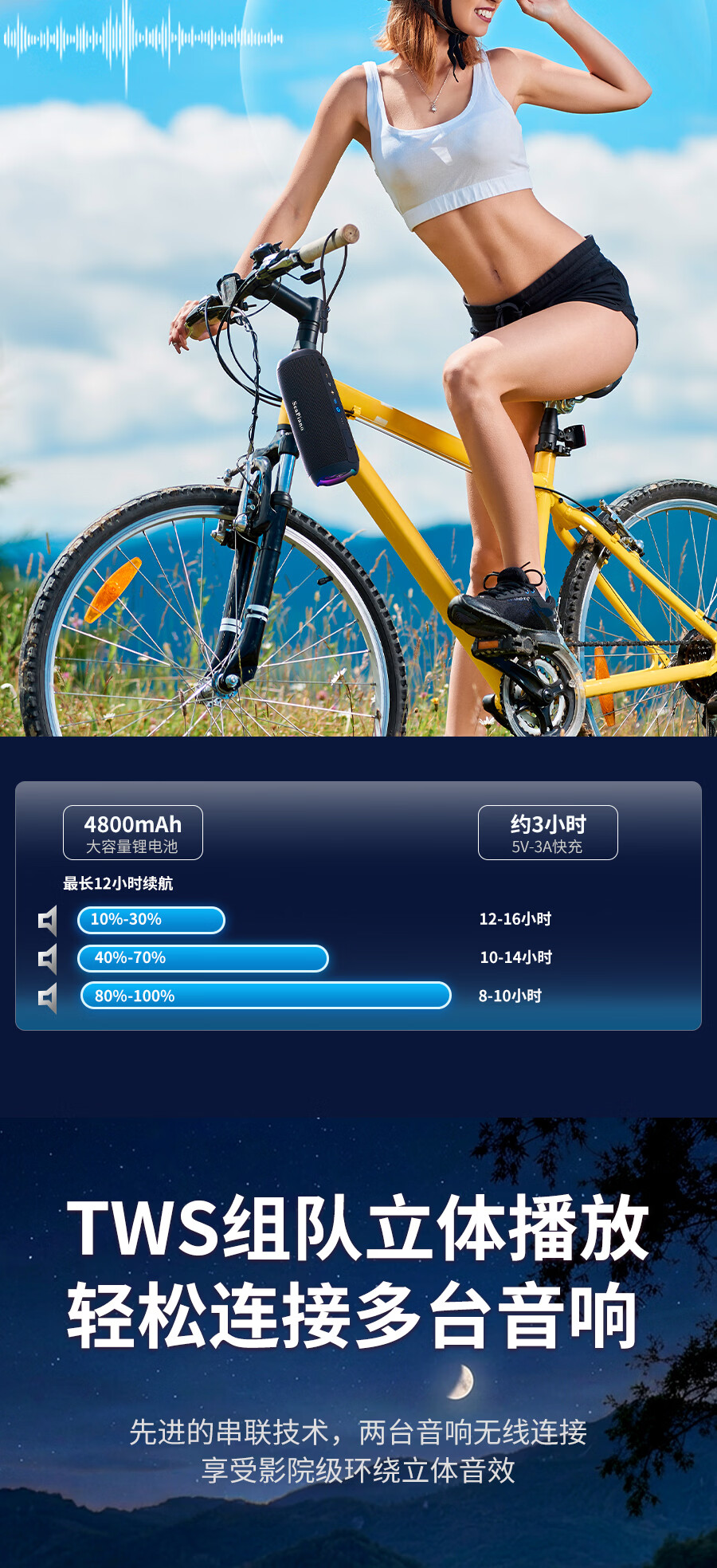 海琴 SEA PIANO蓝牙音响户外便携带露营骑行爬山车载小型低音炮小音箱 雅墨绿Pro旗舰版