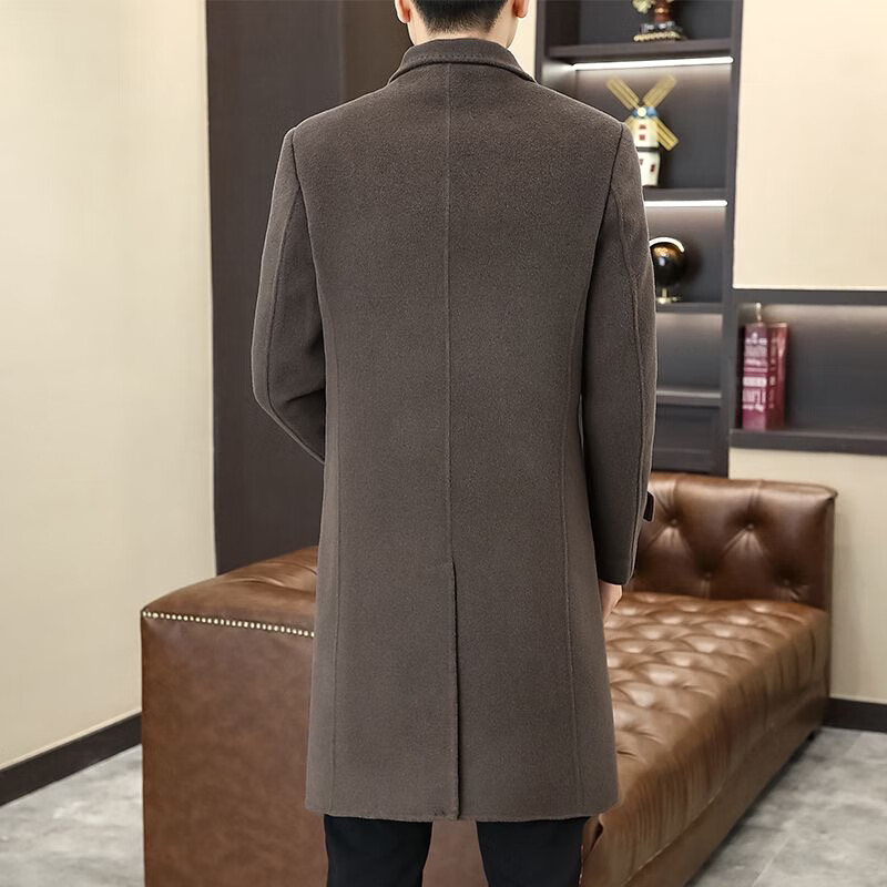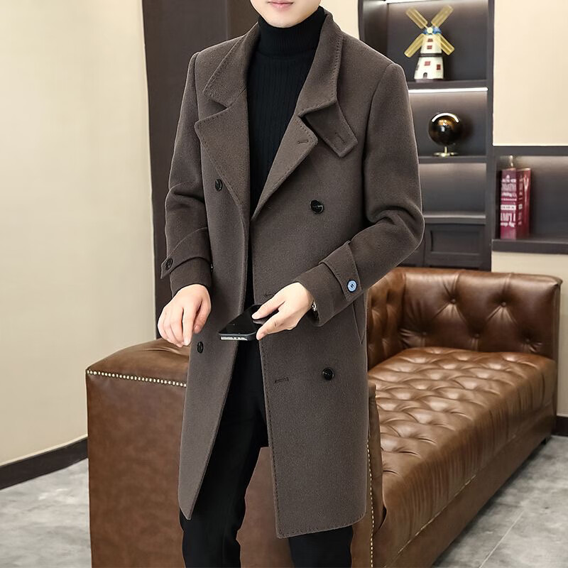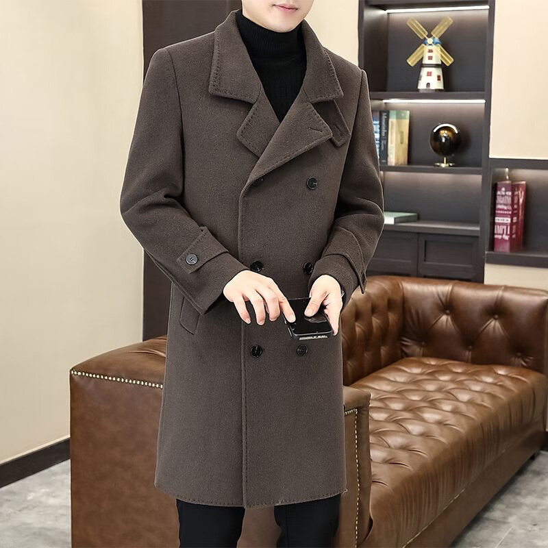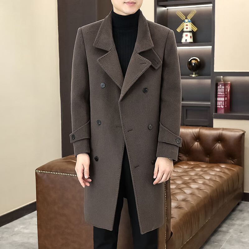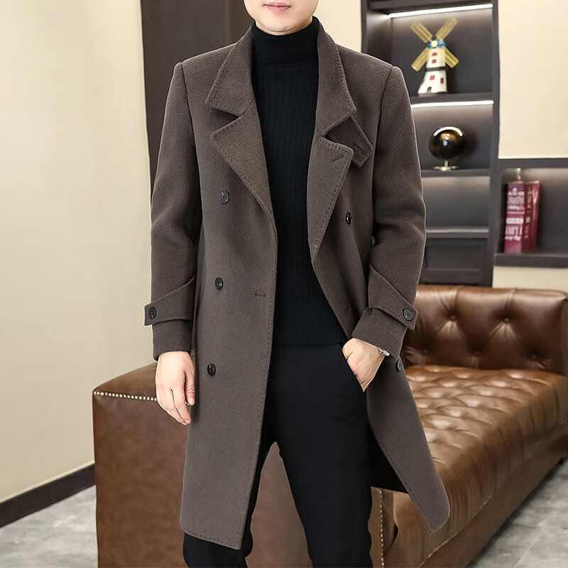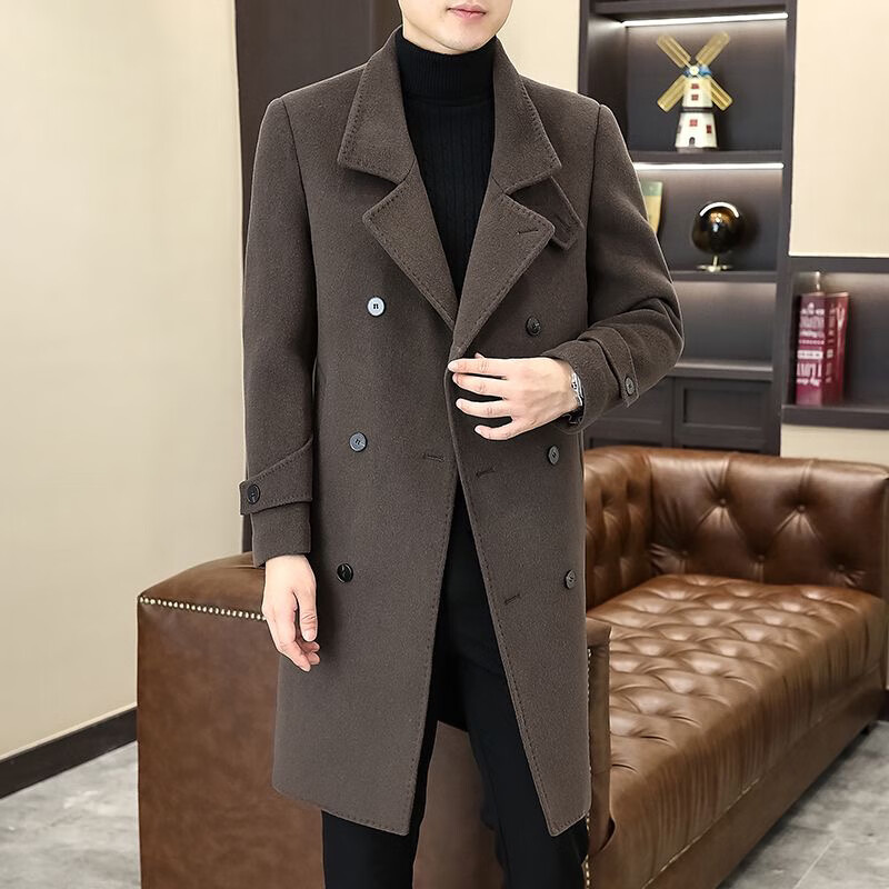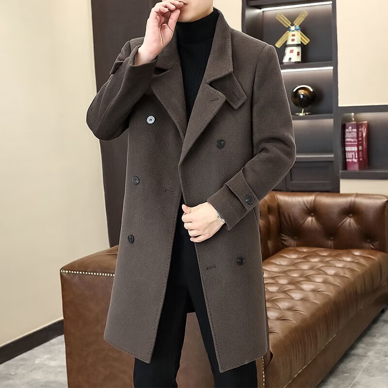花花公子(PLAYBOY)毛呢大衣男士秋冬季韩版修身中长款呢子风衣感时尚双排扣外套 黑色 4XL 180-200