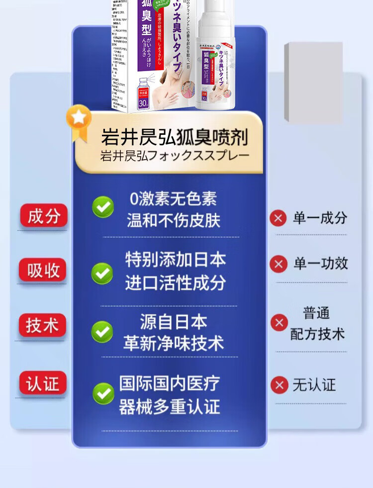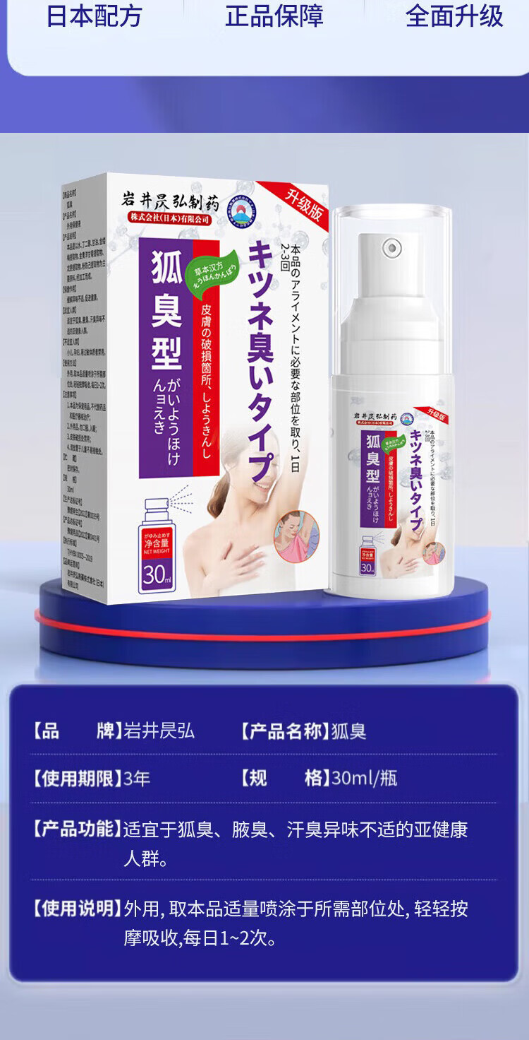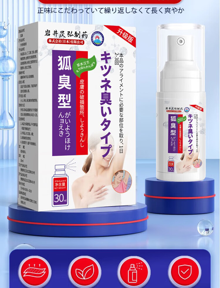 岩井昃弘狐臭100%药腋臭根除去油耳型狐臭液遗传狐臭净男士女士专用止汗露 特效1盒装【日本进口】 去狐臭腋臭腋下异味狐臭净味液男女士专用氯化羟铝露