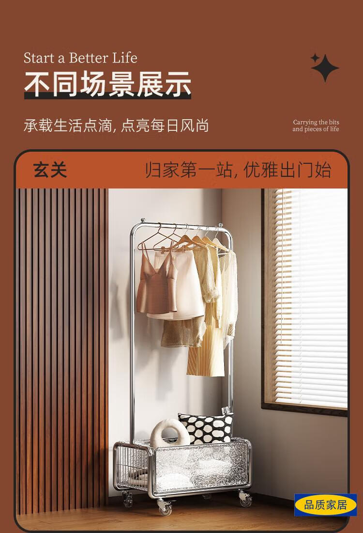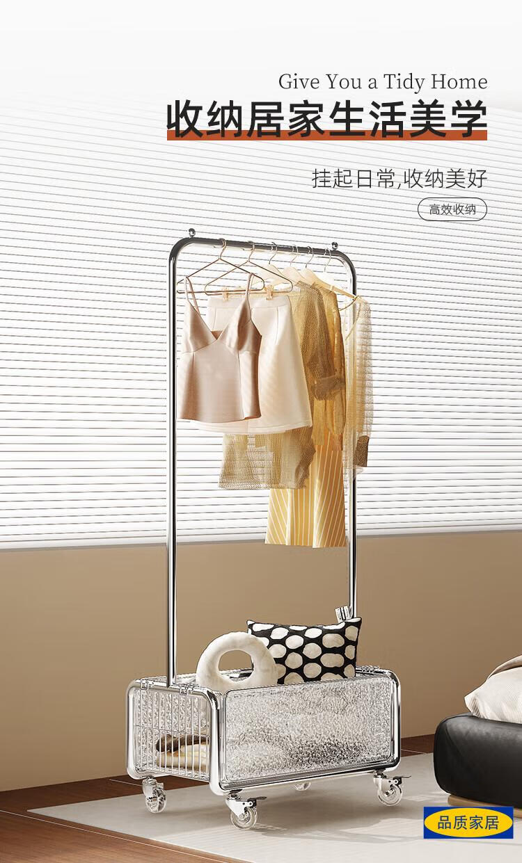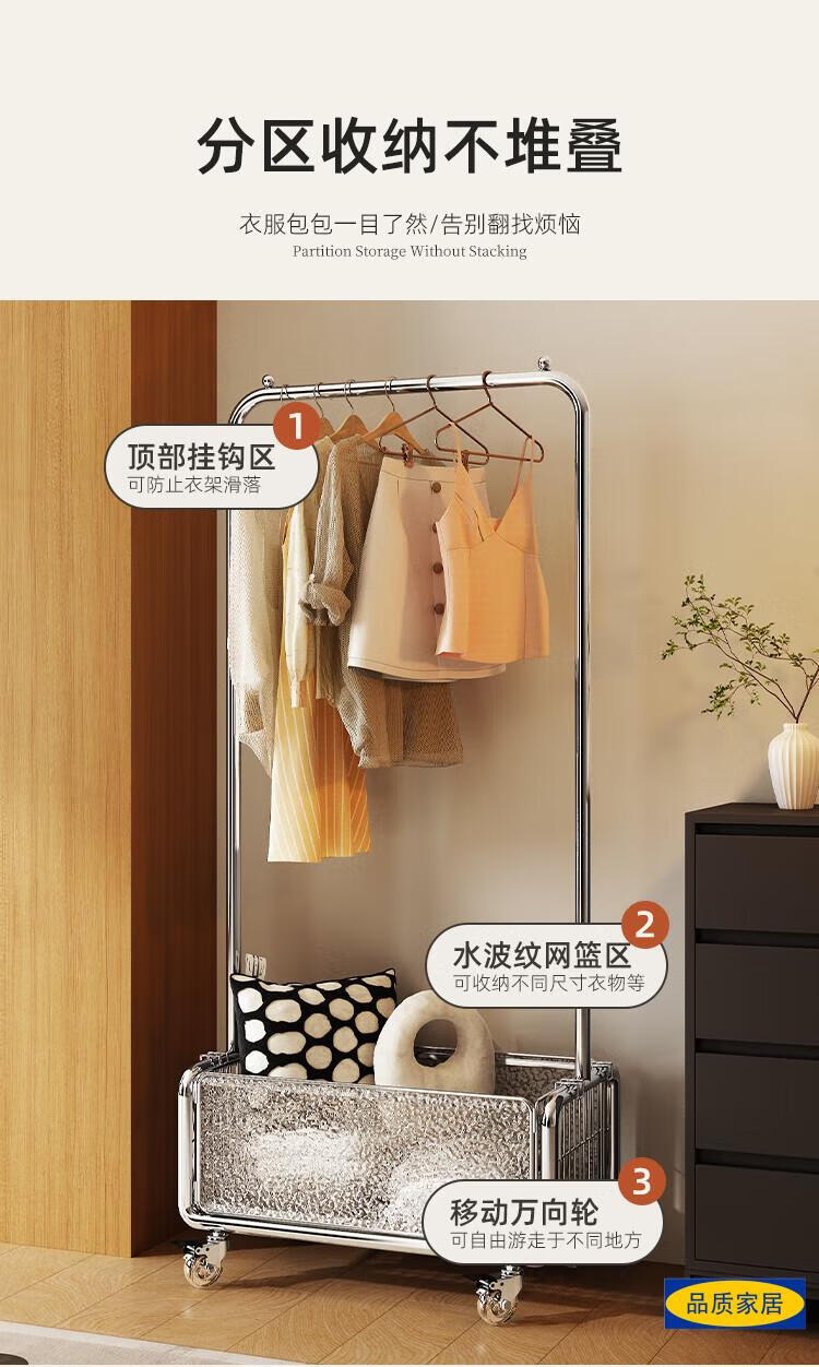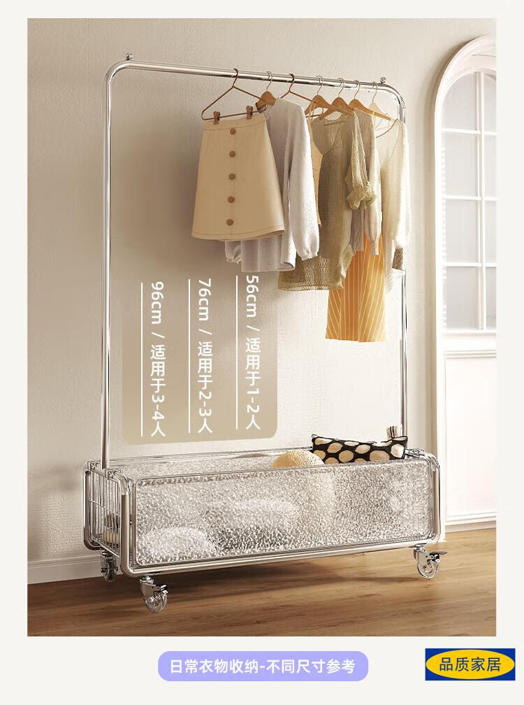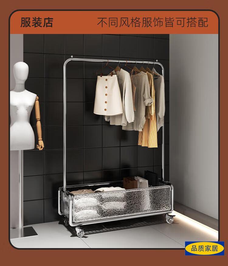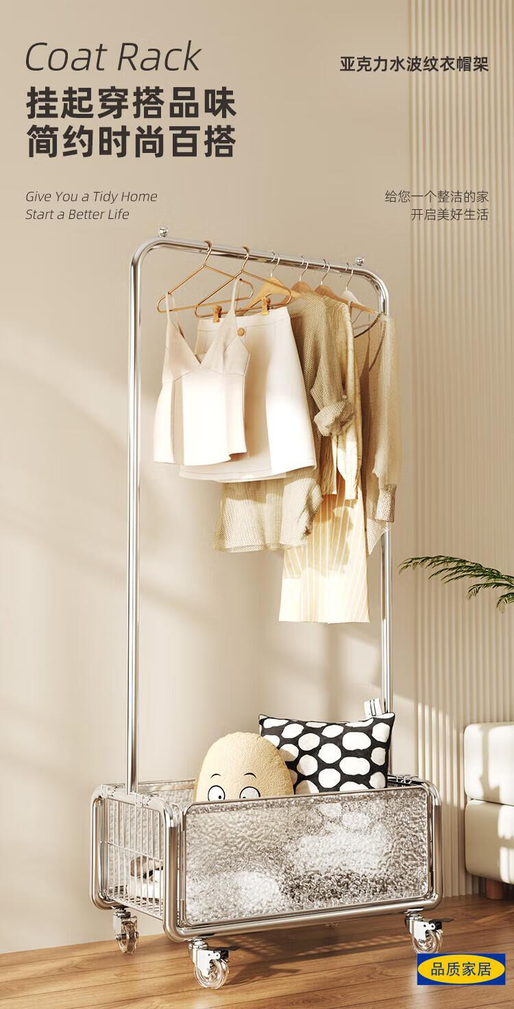 胖东来同款落地衣架可移动卧室衣架落地家用简易衣帽架酒店移代购 新款亚克力水波纹衣帽架96cm(水