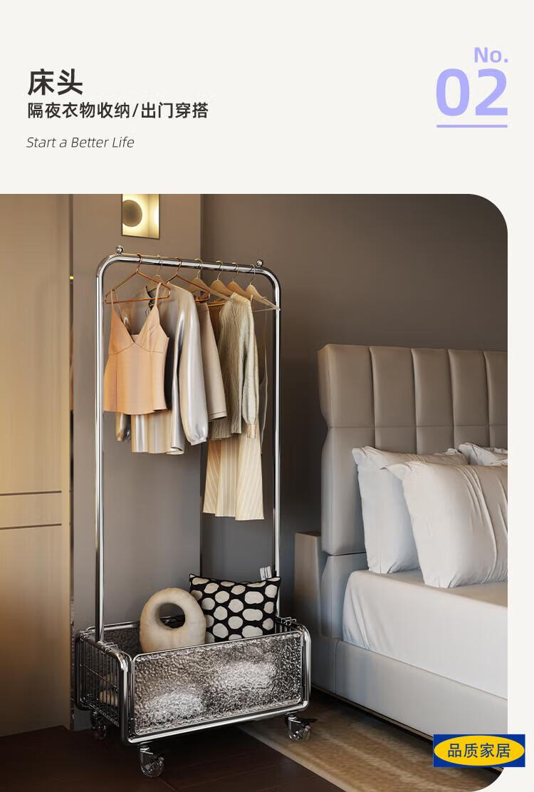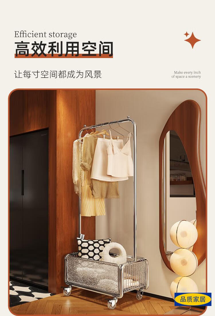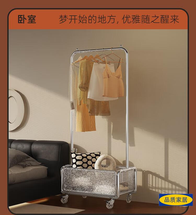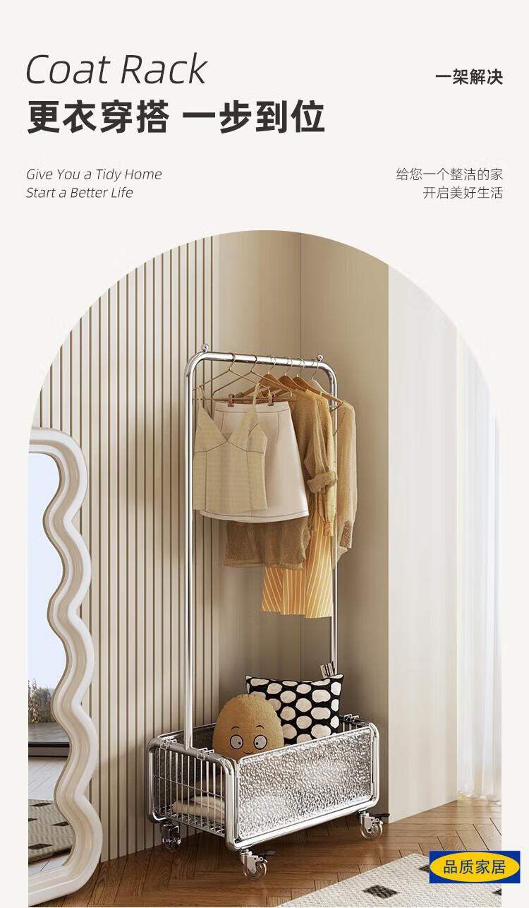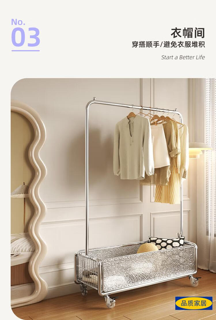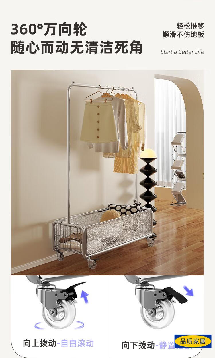 胖东来同款落地衣架可移动卧室衣架落地家用简易衣帽架酒店移代购 新款亚克力水波纹衣帽架96cm(水