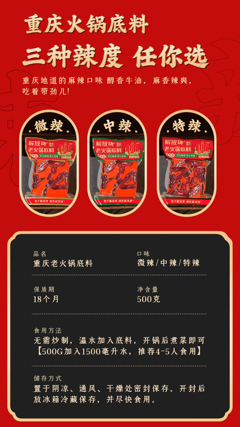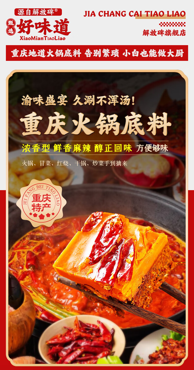 解放碑火锅底料正宗重庆牛油老火锅底料红油麻辣香锅干锅调料 【高品质】火锅底料500g*1袋