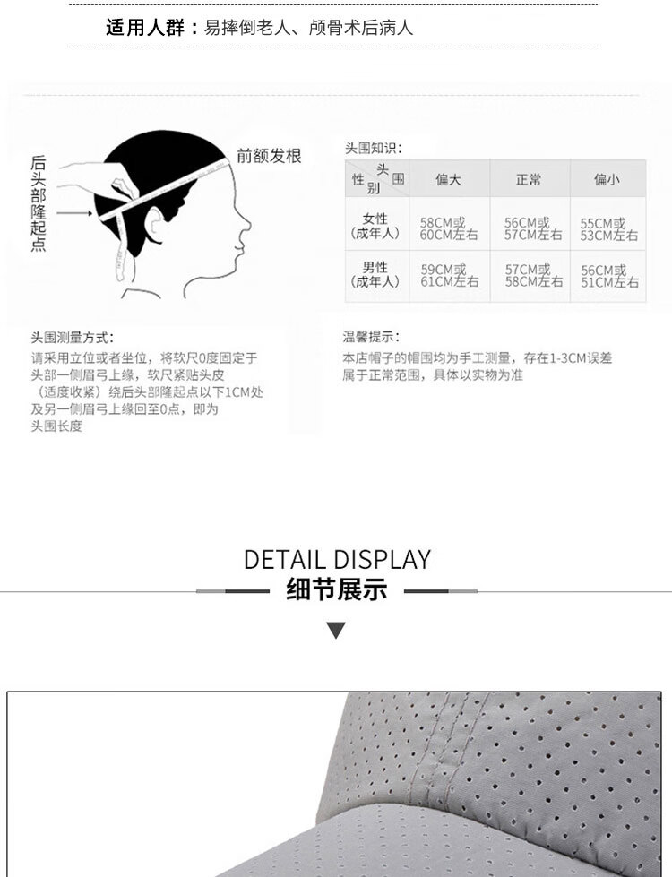 颅骨开颅手术后头部受伤保护帽子防跌倒成人护头神器老人防摔防撞 杏色-BAB纹(开颅术后 放疗化疗) 均码(建议头围58-62cm)
