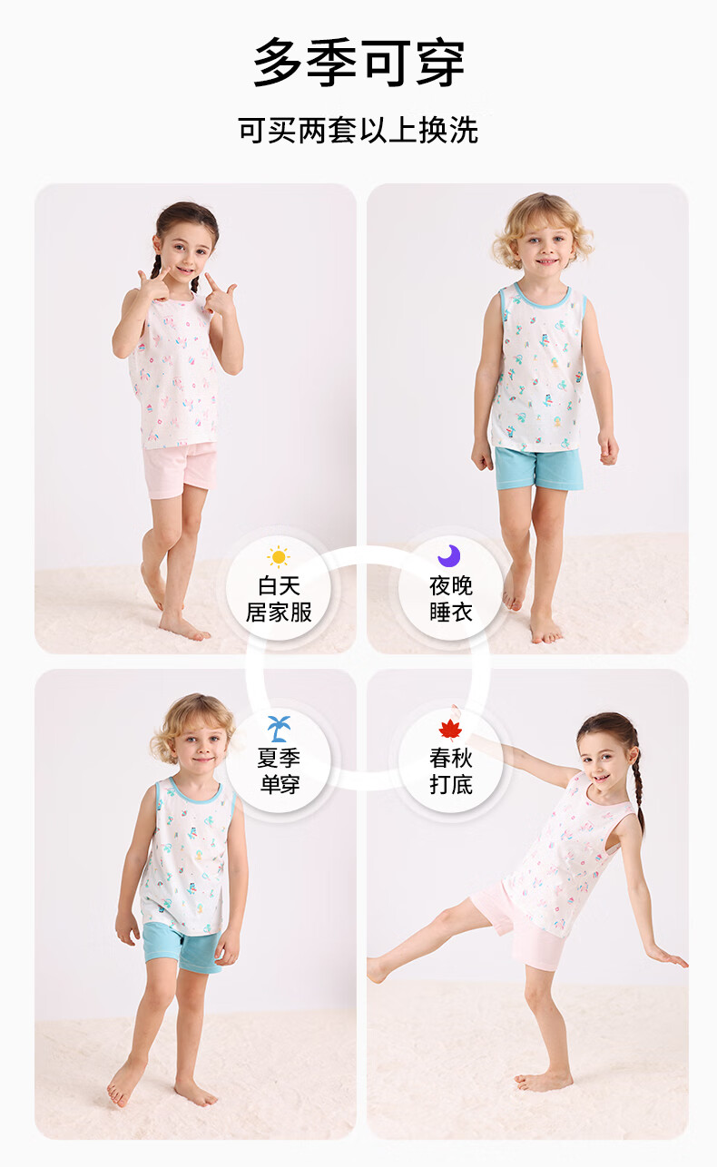 丽婴房男女童夏季纯棉背心套装睡衣套装家居服套装夏季 【100%棉】缤纷果园 100 cm/3岁