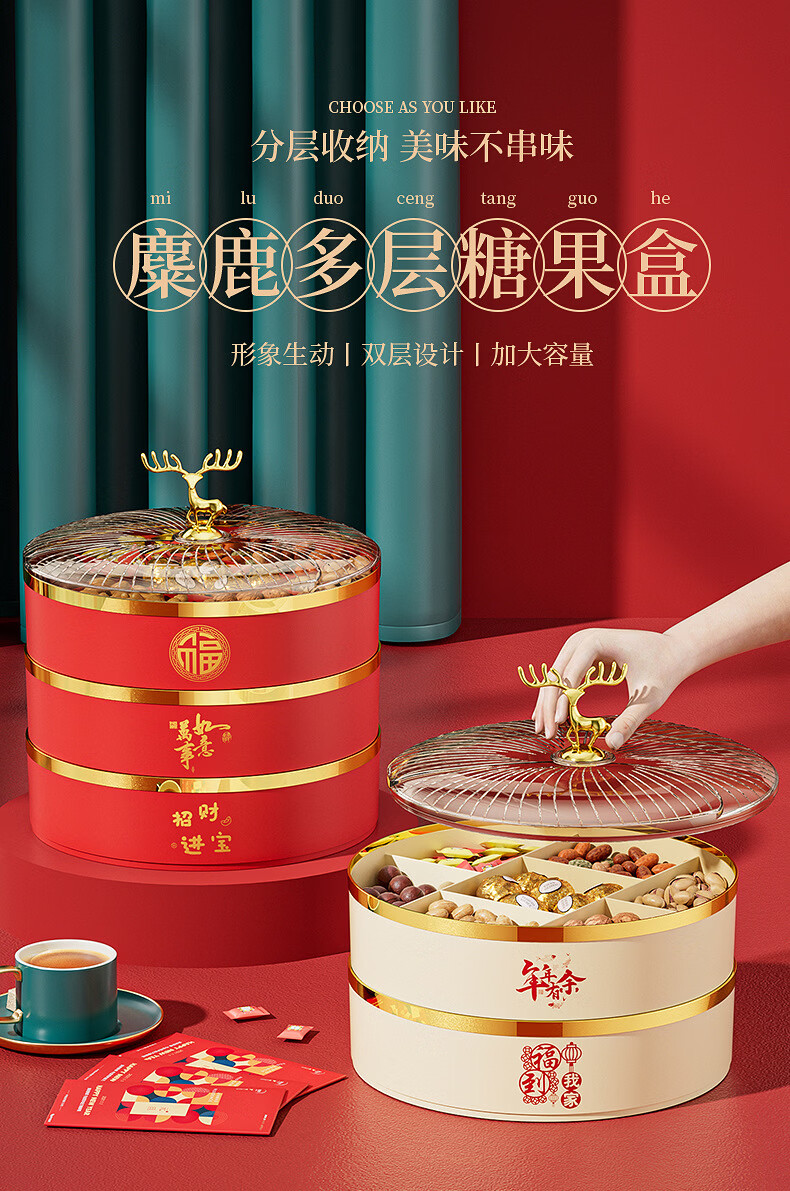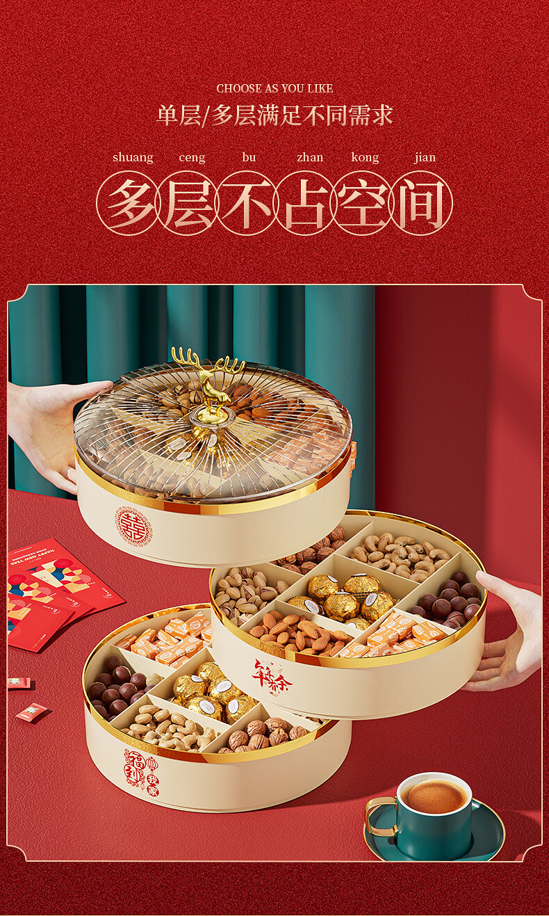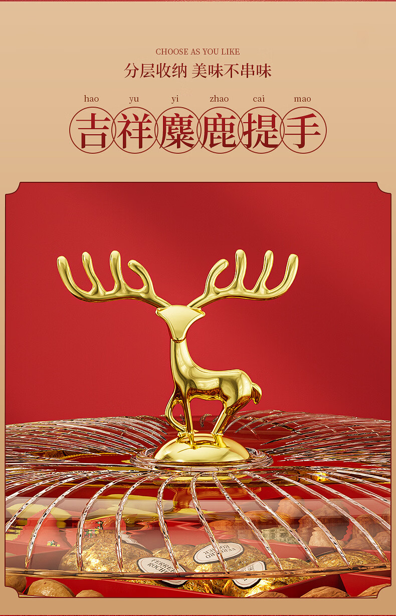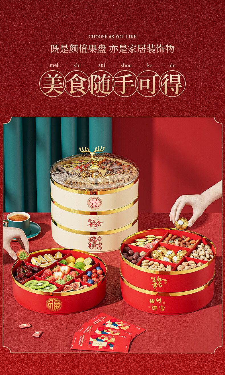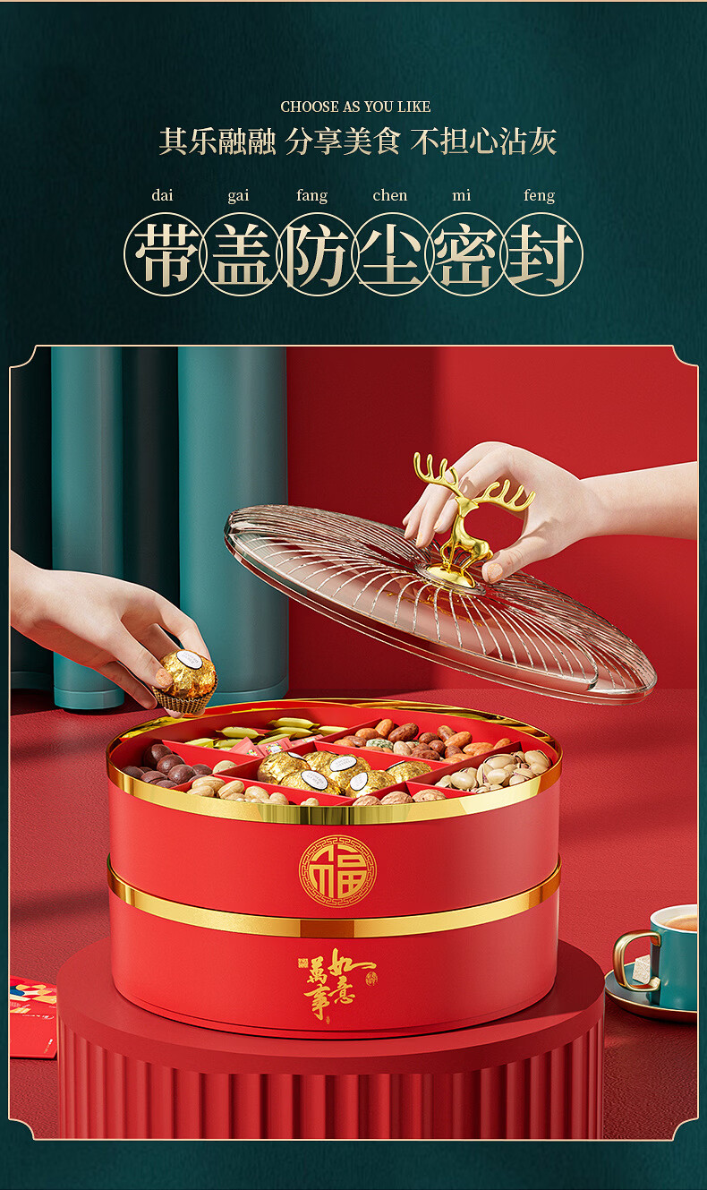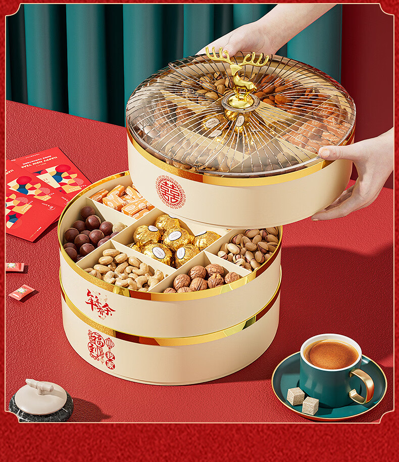 果盘客厅茶几家用5新瓜子糖果水果盘结婚喜庆零食干果纳盒 吉祥麋鹿-白色-单层