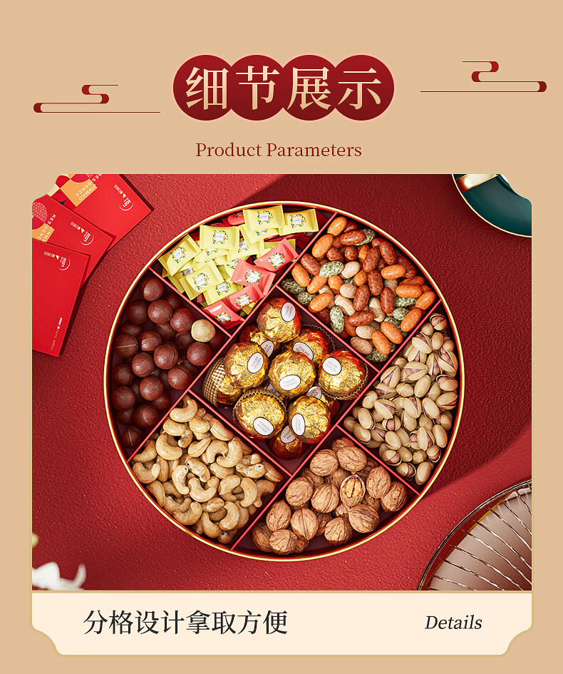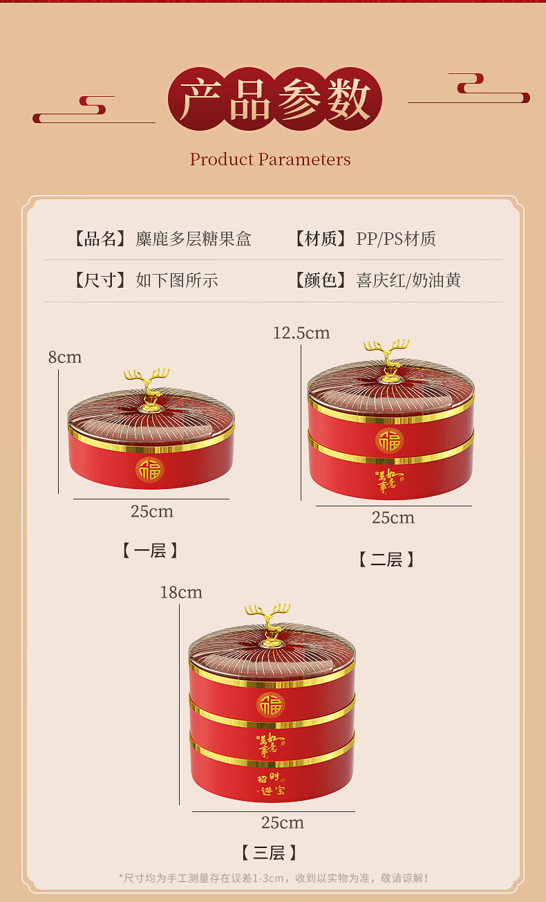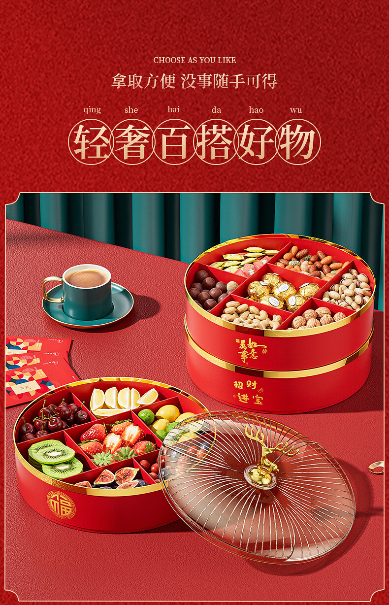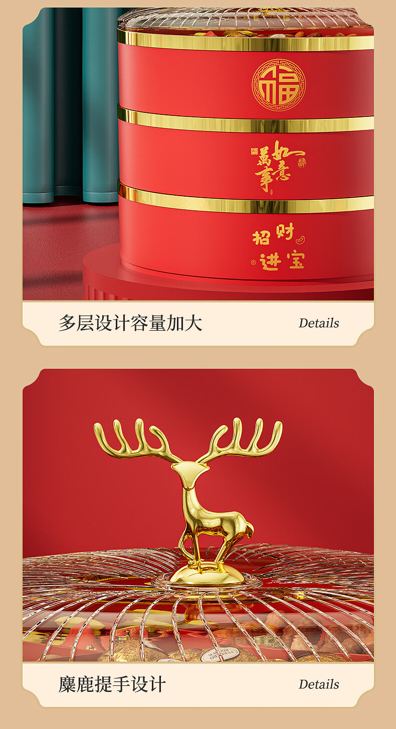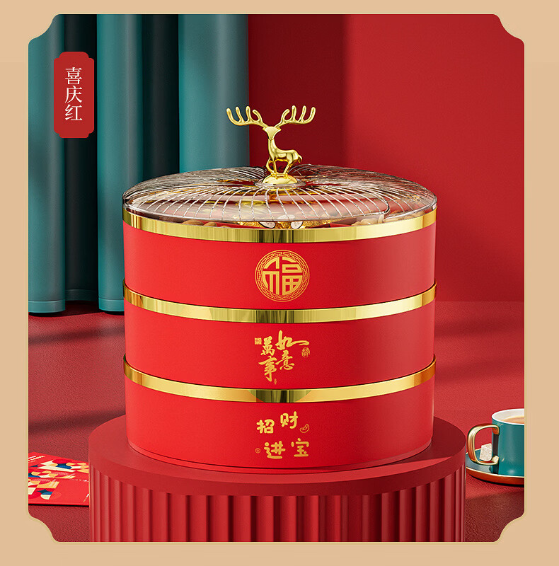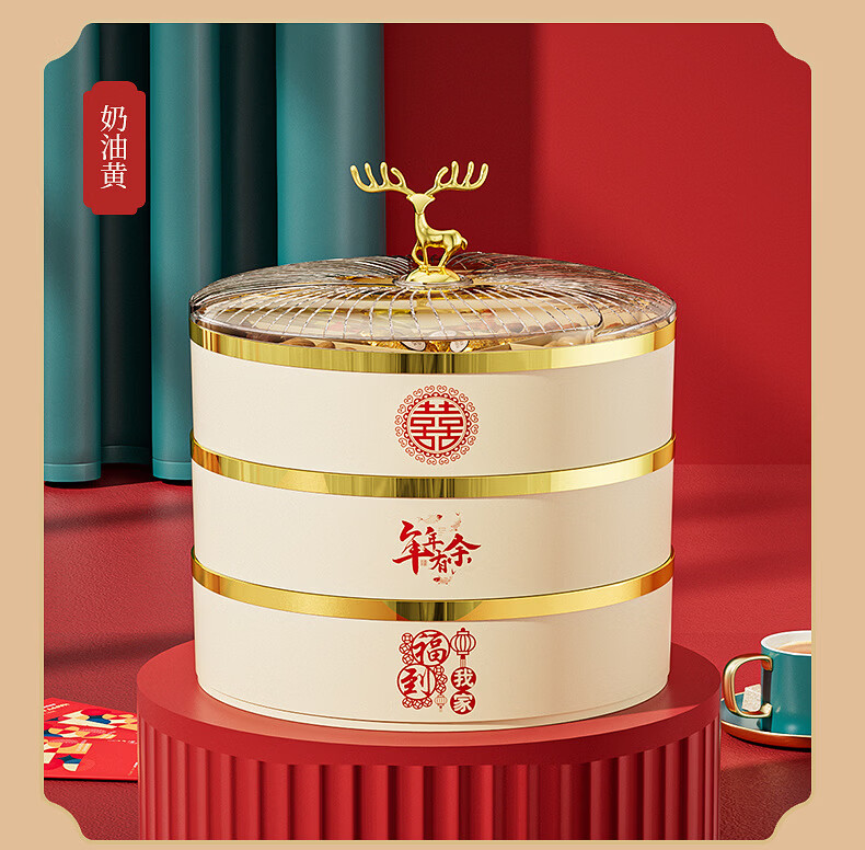 果盘客厅茶几家用5新瓜子糖果水果盘结婚喜庆零食干果纳盒 吉祥麋鹿-白色-单层