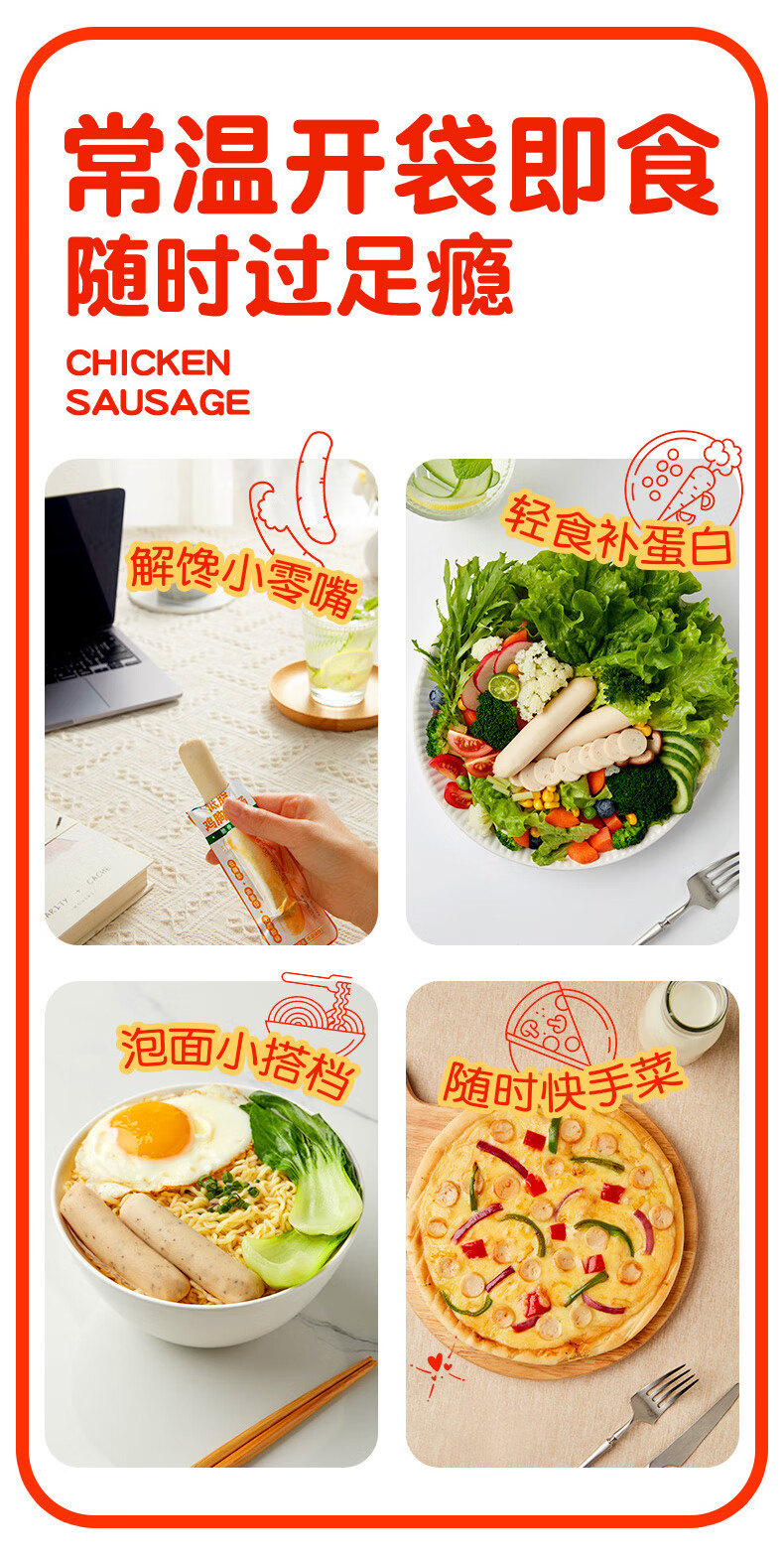 优形(ishape)鸡肉肠鸡胸肉开袋即食代餐轻食小吃饱腹充饥零食办公室下午赠丸子 原味5袋+麻辣味4袋+赠鸡胸肉丸1袋共408g