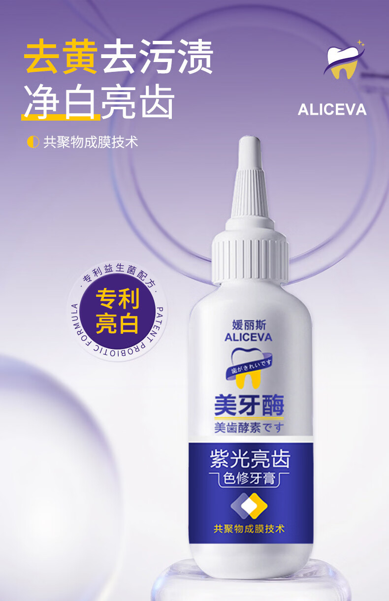 YUHOO美牙酶紫光亮齿色修牙膏亮白牙齿去黄渍去牙垢口气清新护牙慕斯 紫光亮齿色修牙膏50g*2支