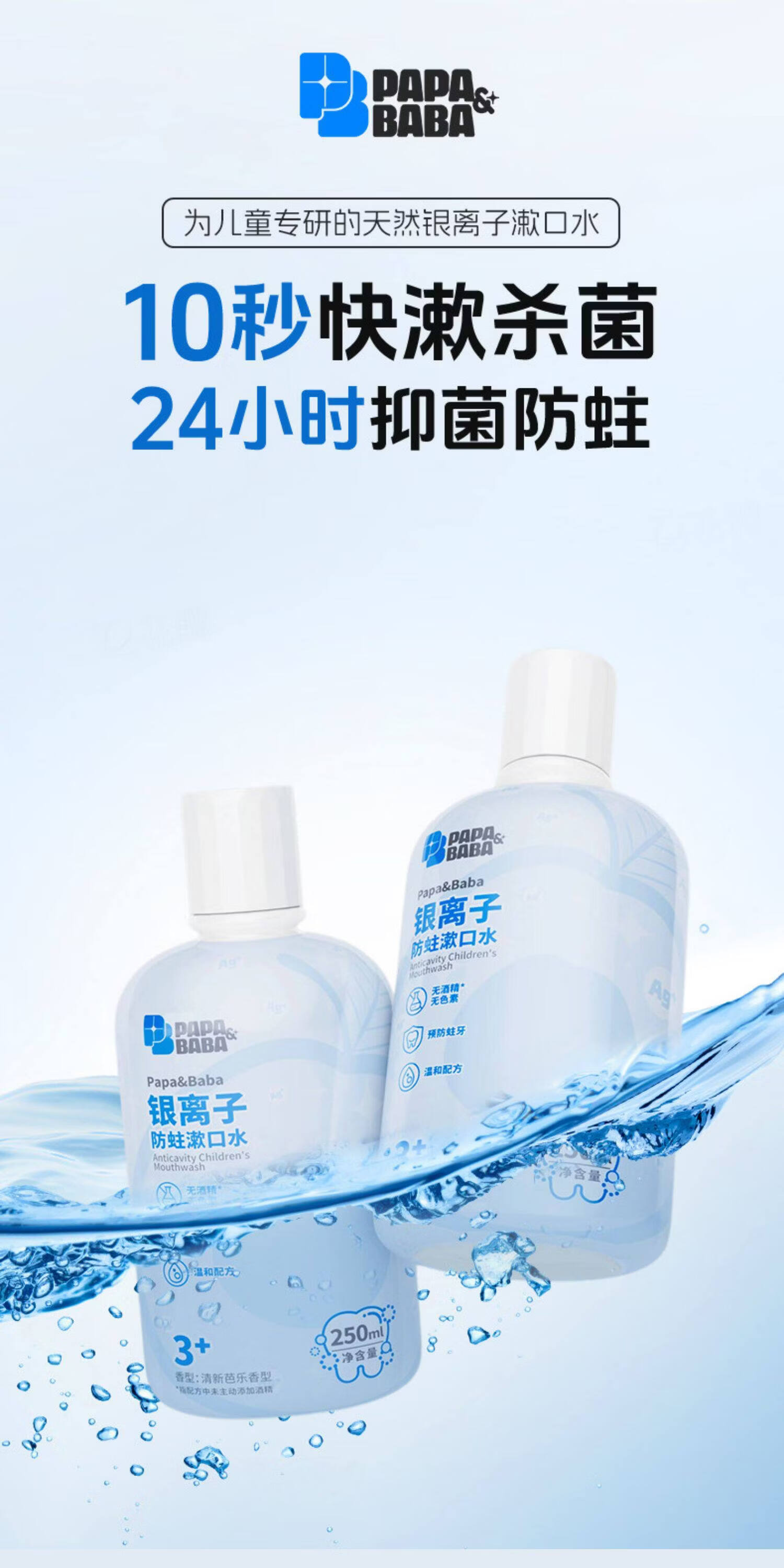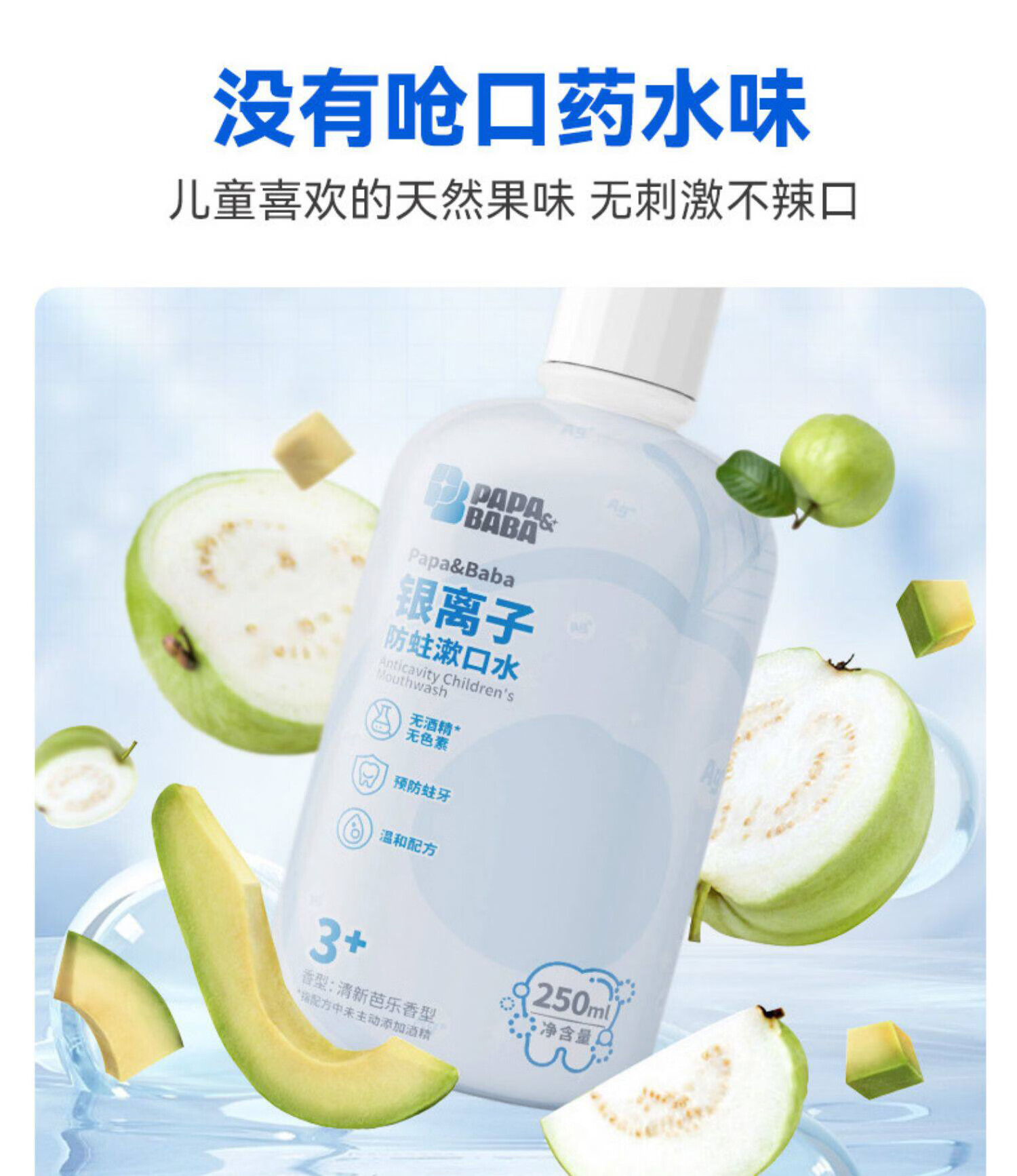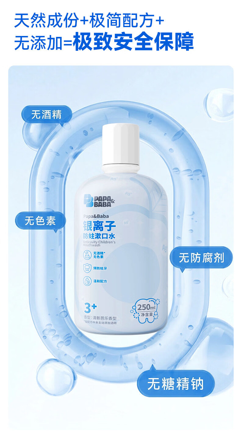 PAPA&BABA泡泡爸爸儿童漱口水温和防蛀含氟抑菌便携250ml线下同款口腔清洁 250ml三瓶装