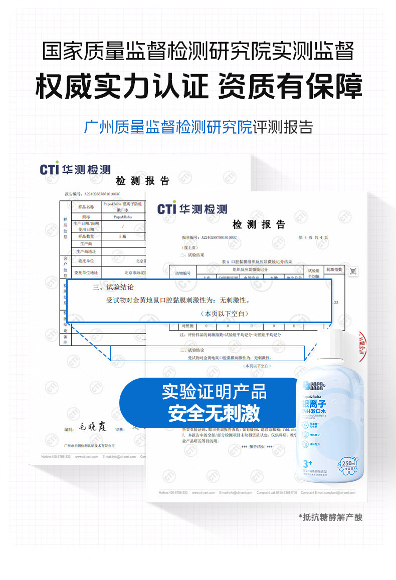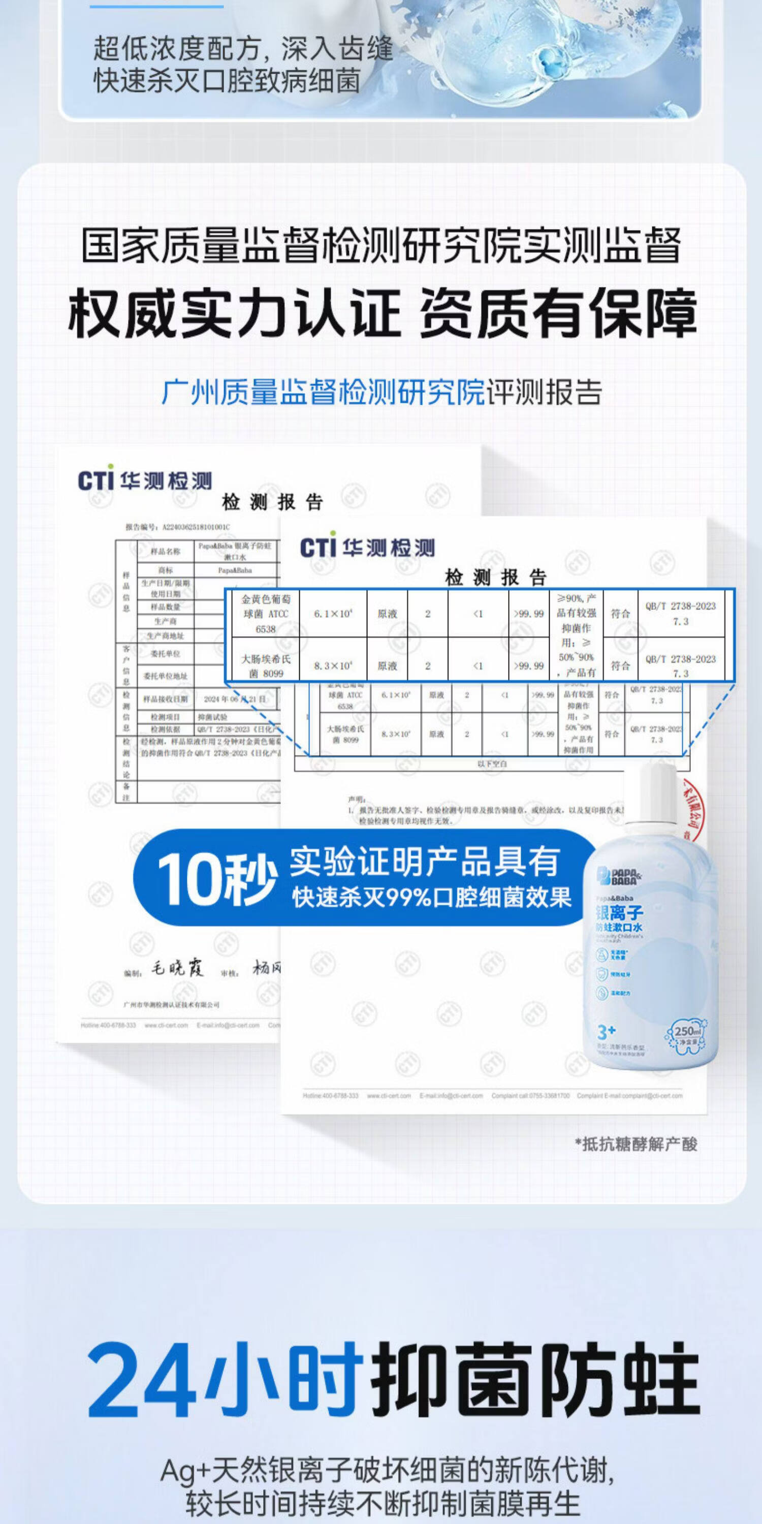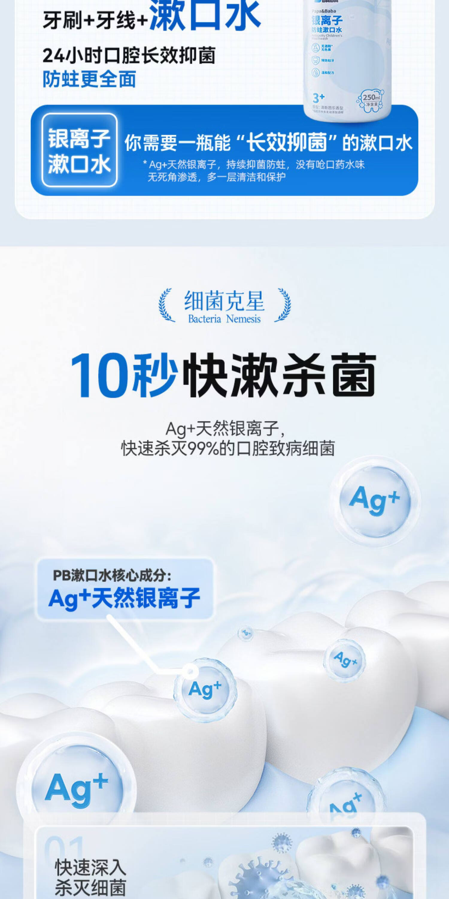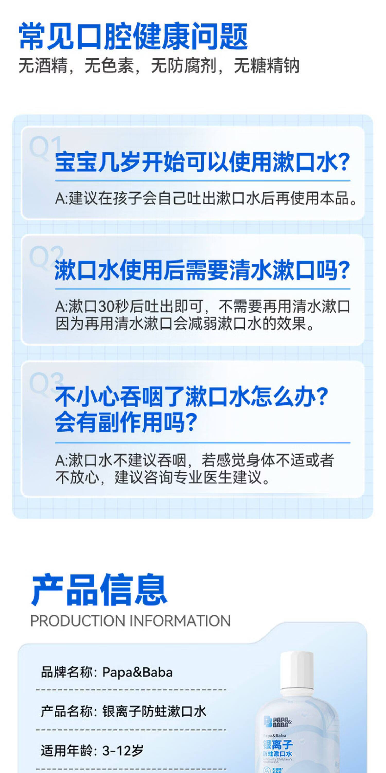 PAPA&BABA泡泡爸爸儿童漱口水温和防蛀含氟抑菌便携250ml线下同款口腔清洁 250ml三瓶装