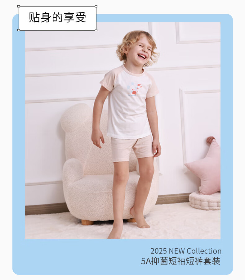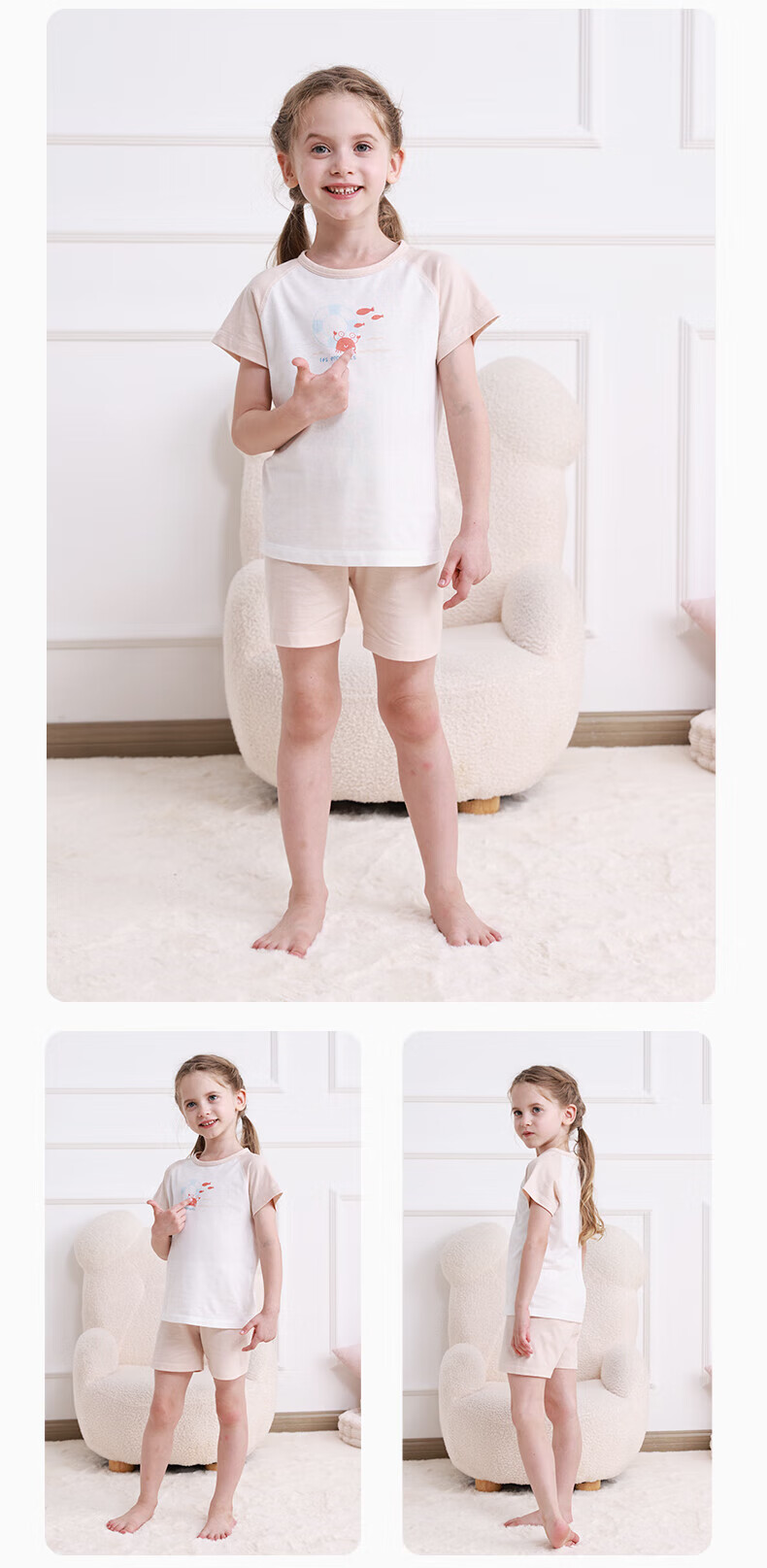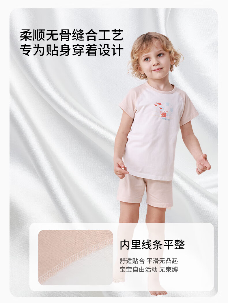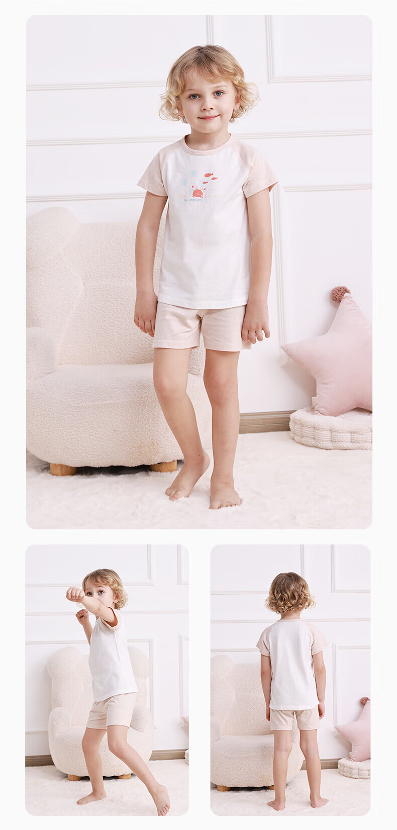 丽婴房(Les enphants)儿童5A家居服套装男童女童睡衣夏季短袖短裤套装 春日海滨 100 cm