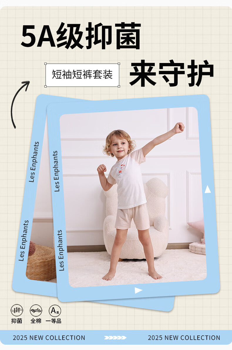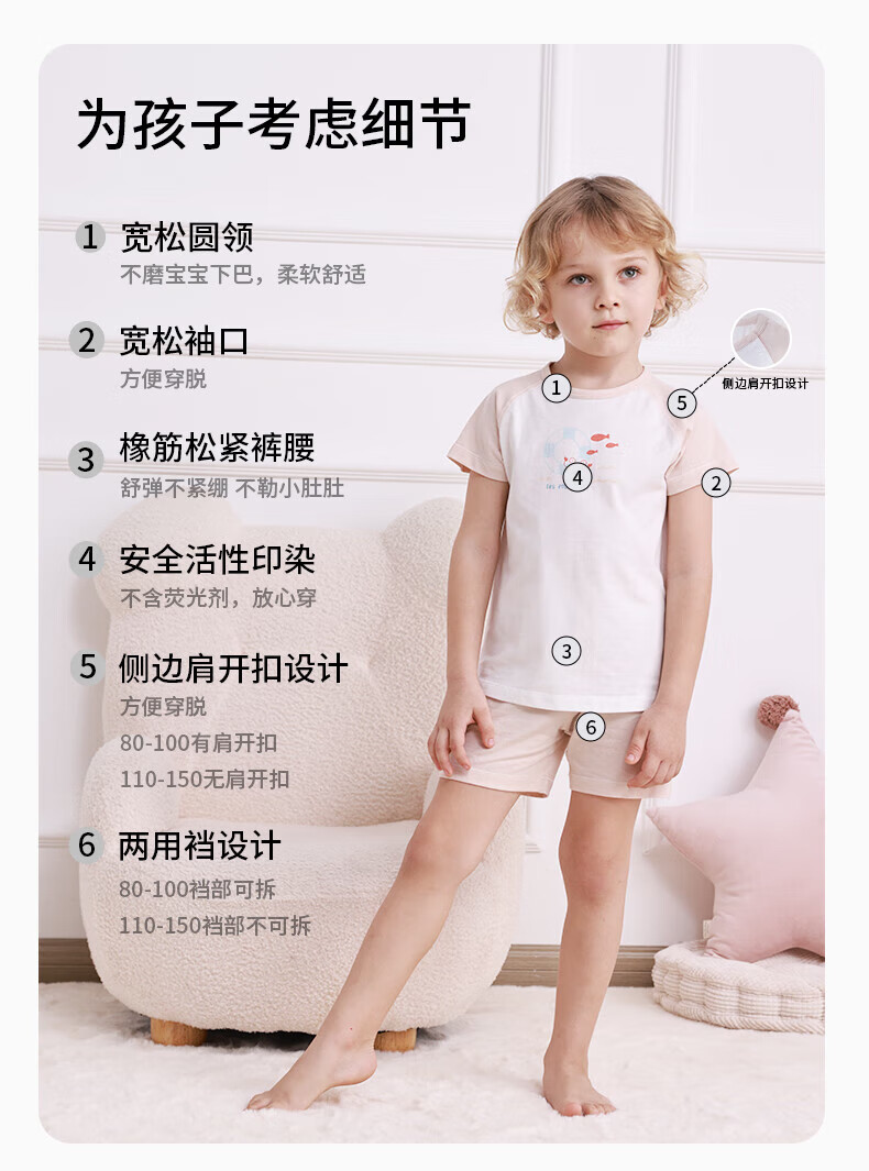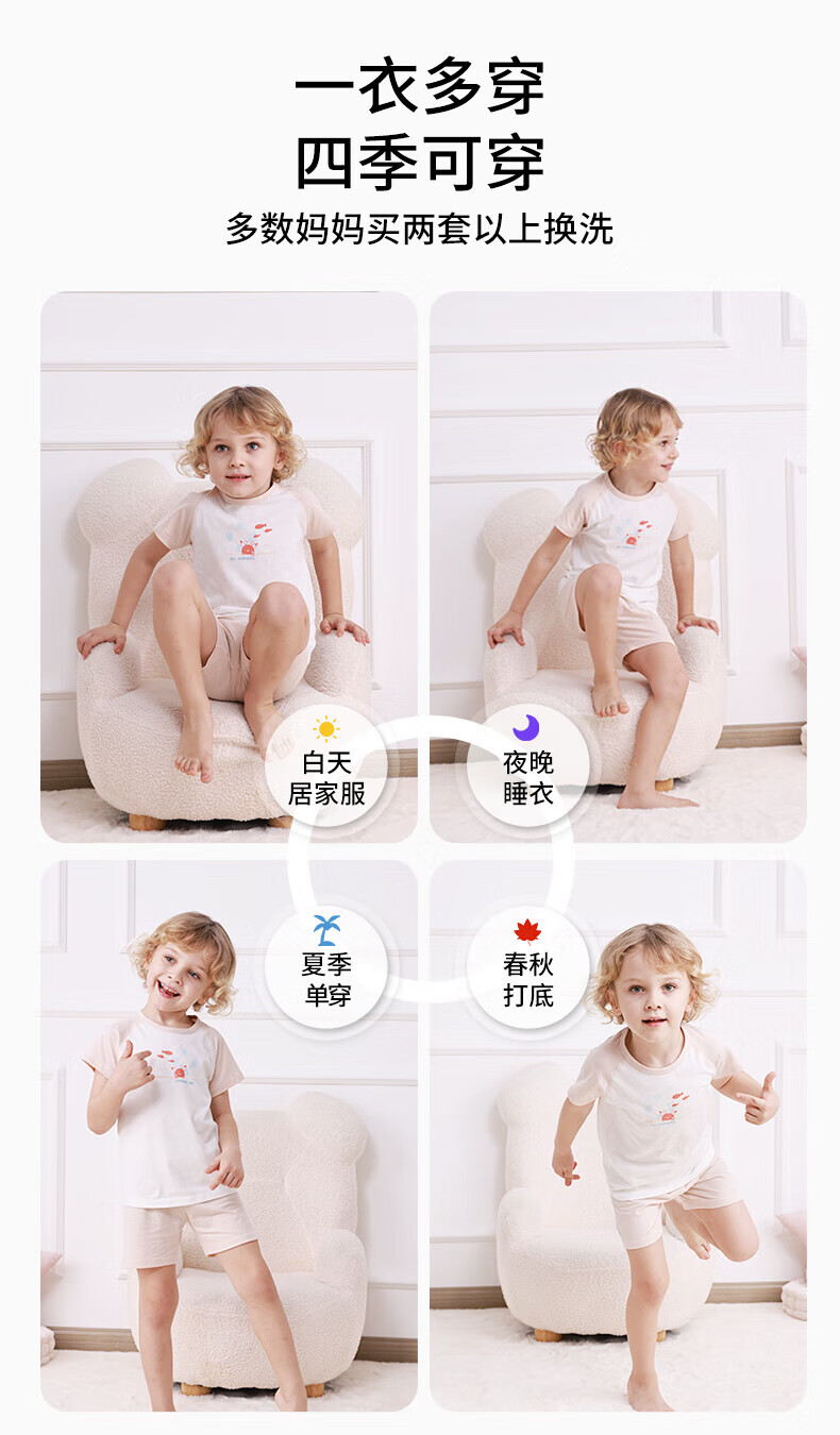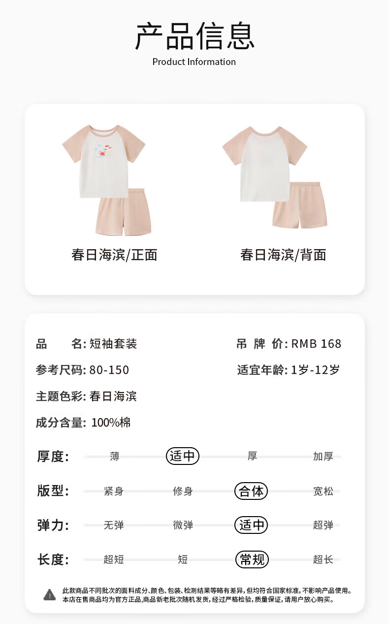 丽婴房(Les enphants)儿童5A家居服套装男童女童睡衣夏季短袖短裤套装 春日海滨 100 cm