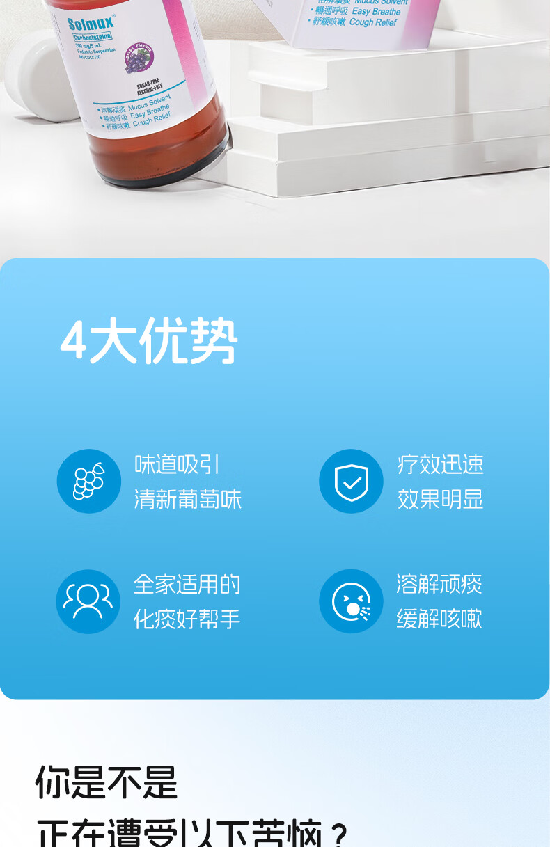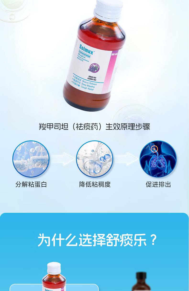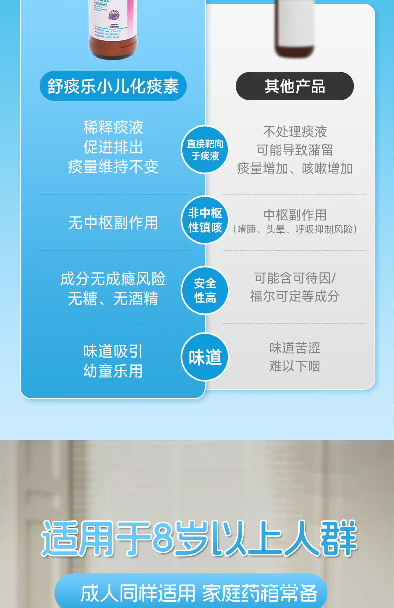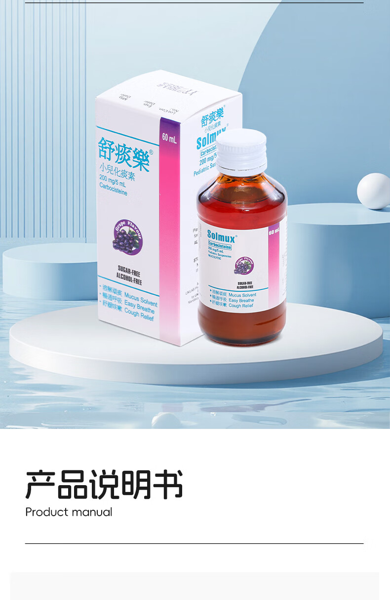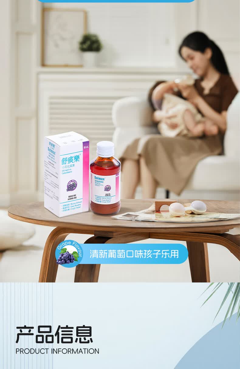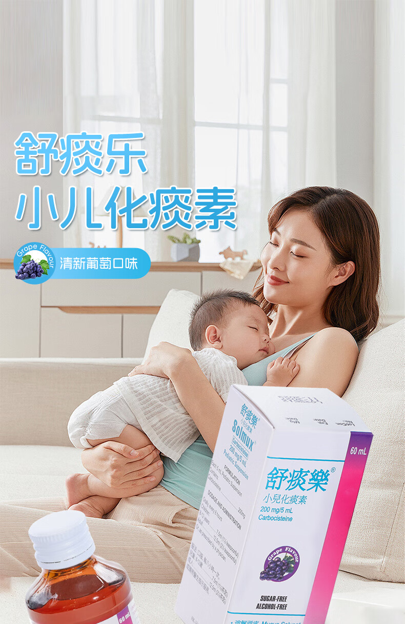 舒痰乐 儿童成人止咳化痰水 多痰止咳清肺化痰支气管炎口服液 清新葡萄味 香港进口 【家庭预防常备装】60ml*2瓶