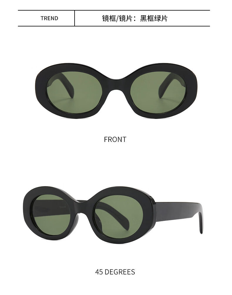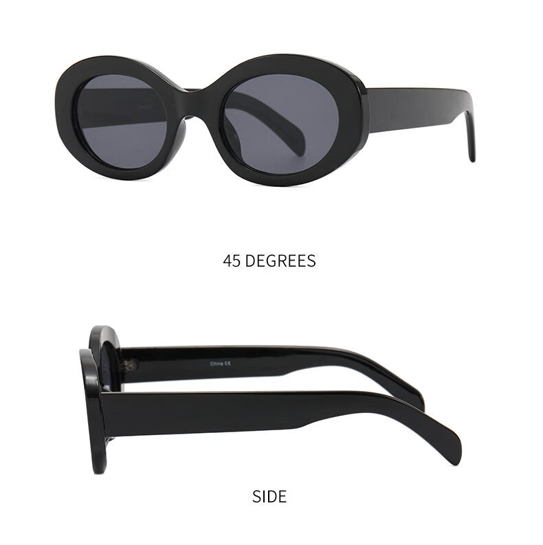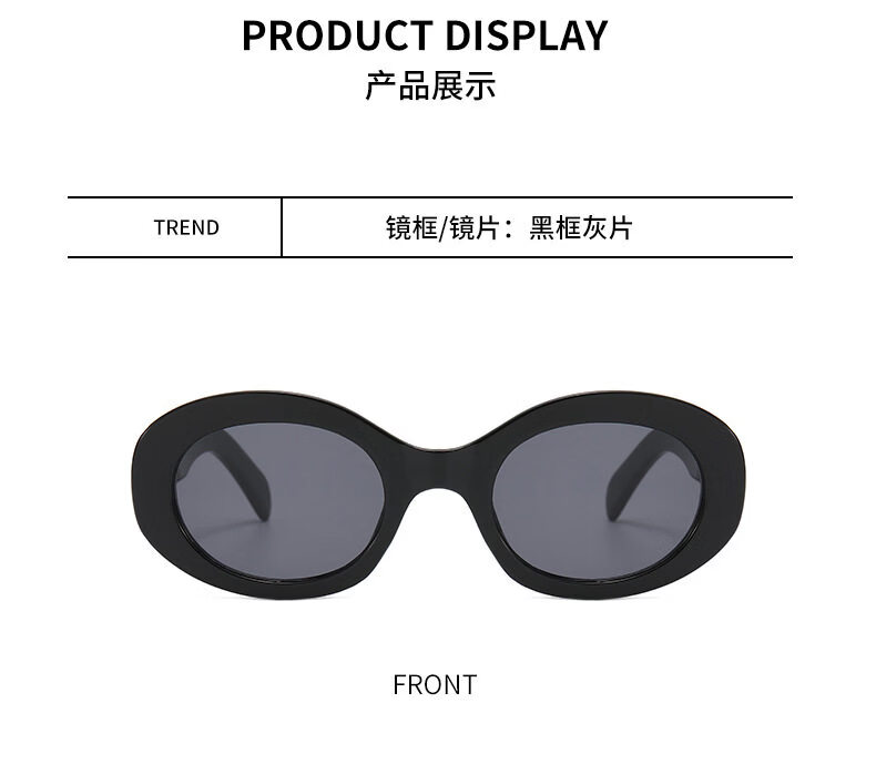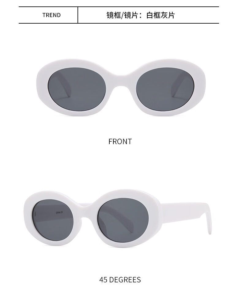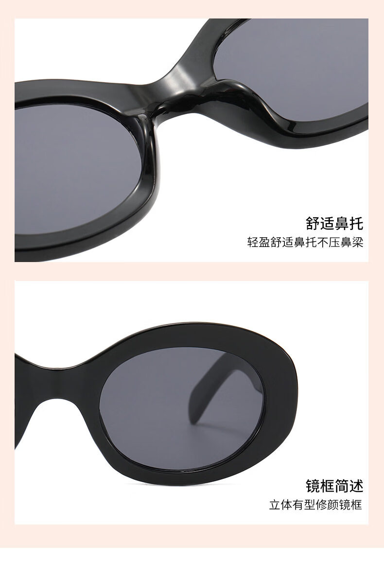 派尼英菲韩版椭圆形白色春季眼镜潮休闲度假海边沙滩墨镜女防紫外太阳镜 黑框灰片