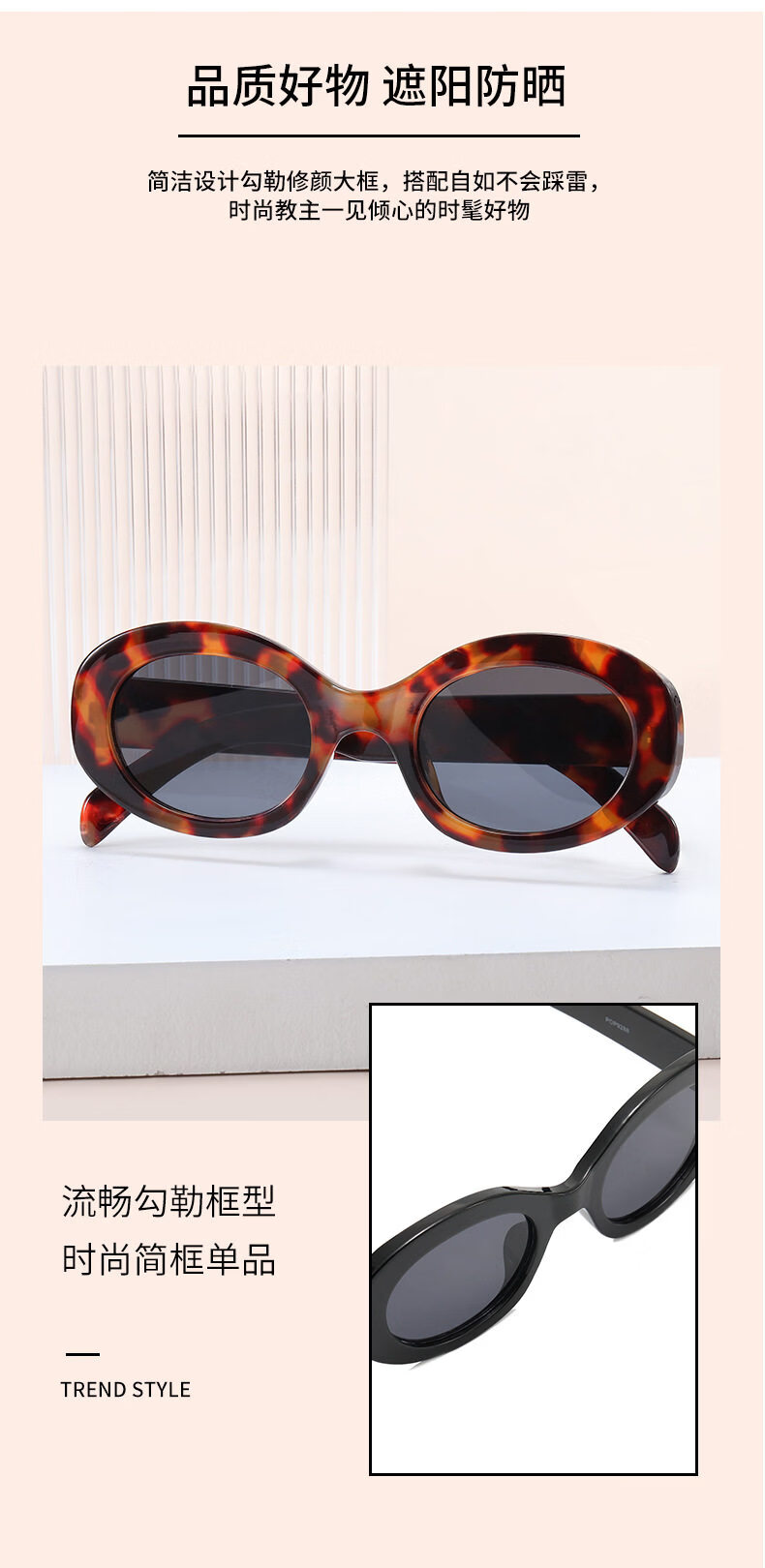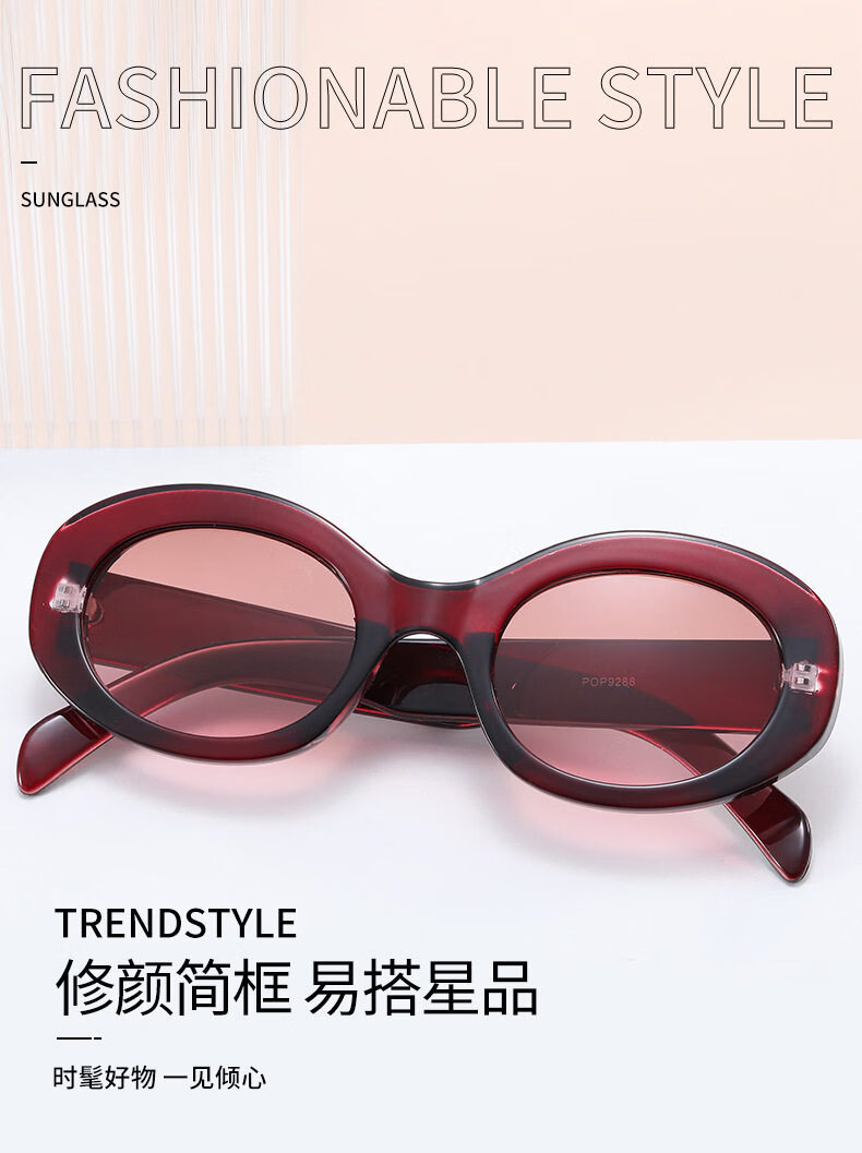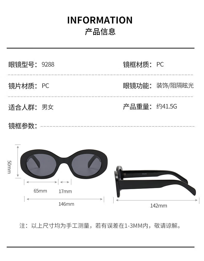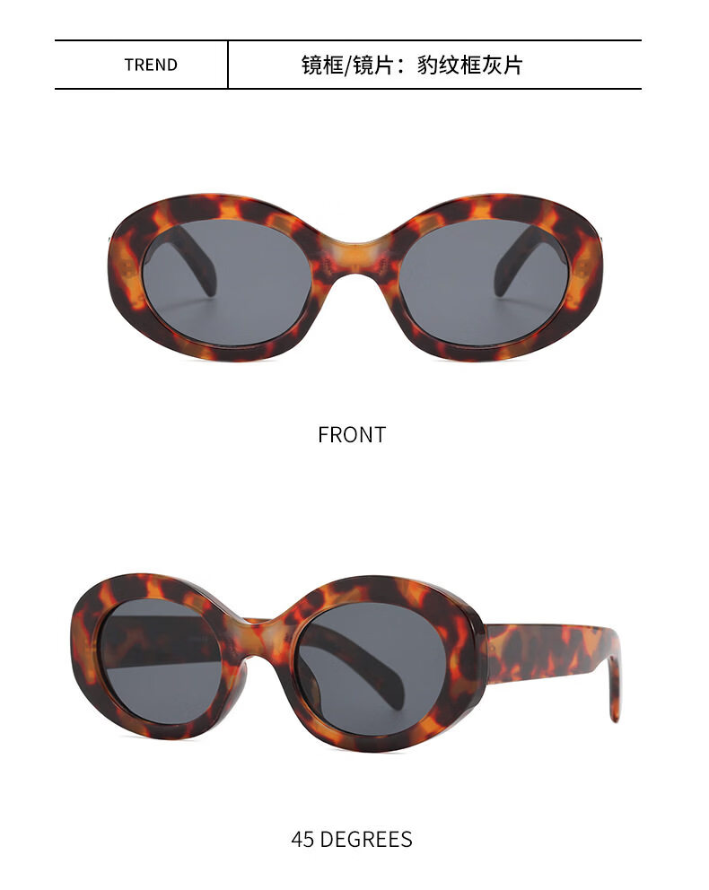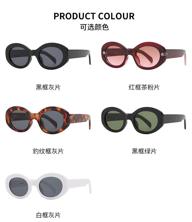 派尼英菲韩版椭圆形白色春季眼镜潮休闲度假海边沙滩墨镜女防紫外太阳镜 黑框灰片
