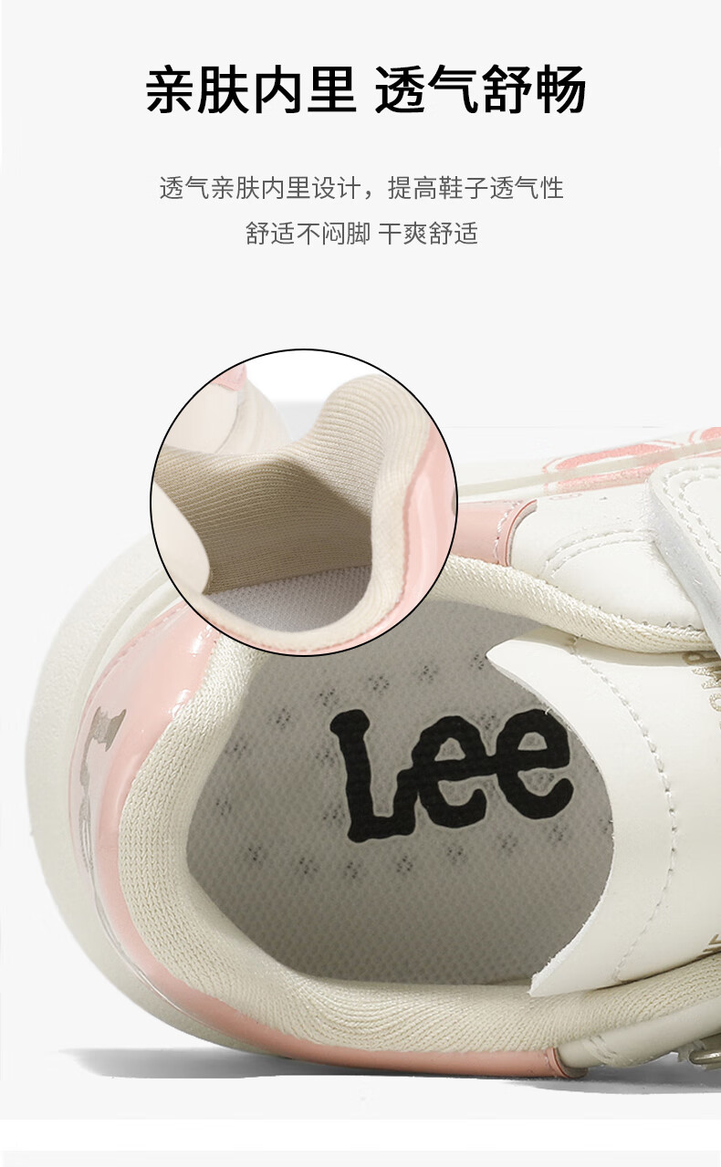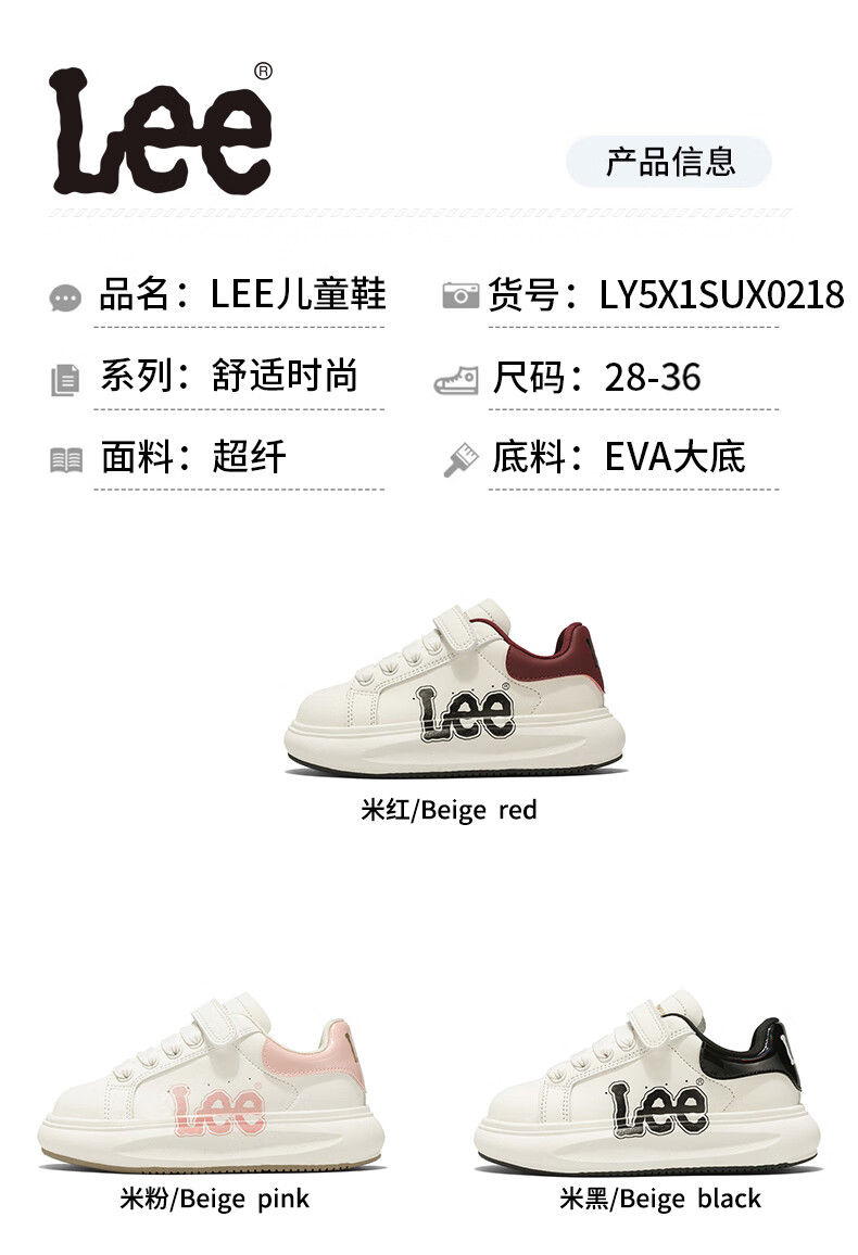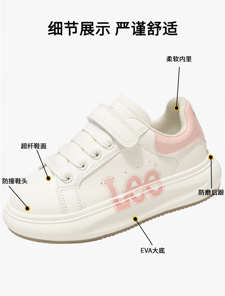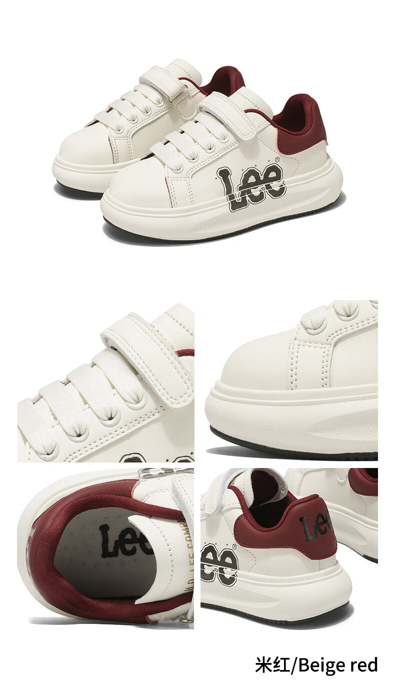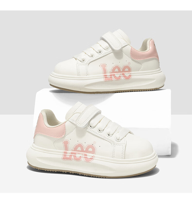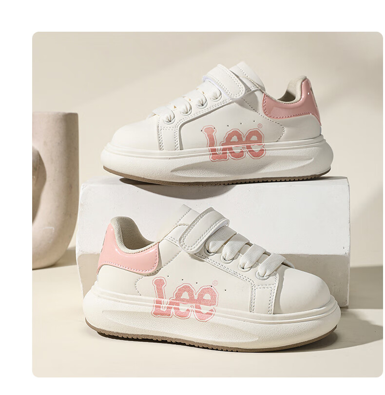 Lee童鞋春季新款儿童跑步鞋女童百搭休闲运动鞋小白板鞋男大童 米红 35 【建议脚长210mm】