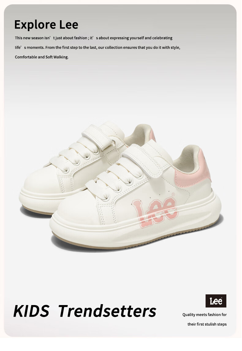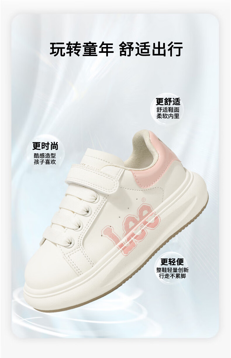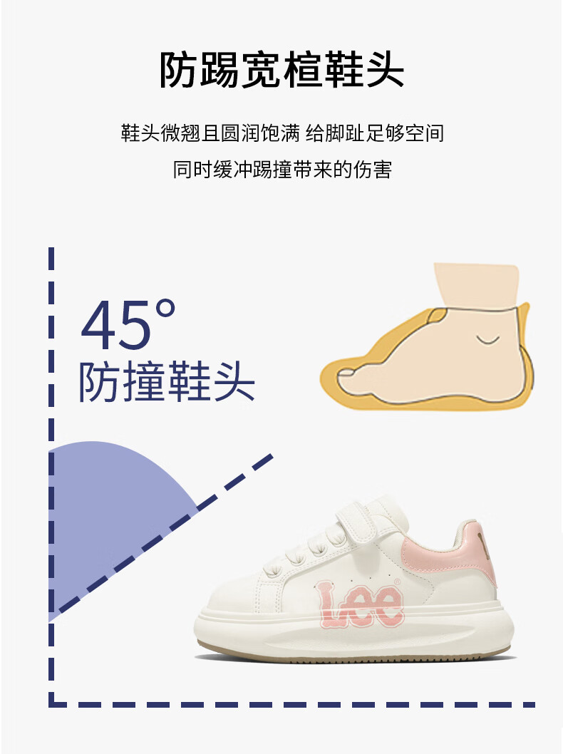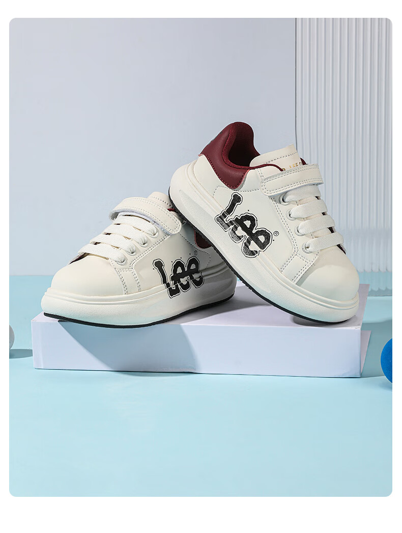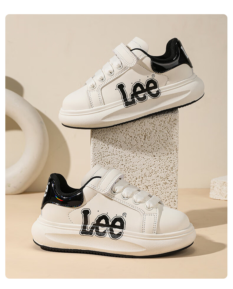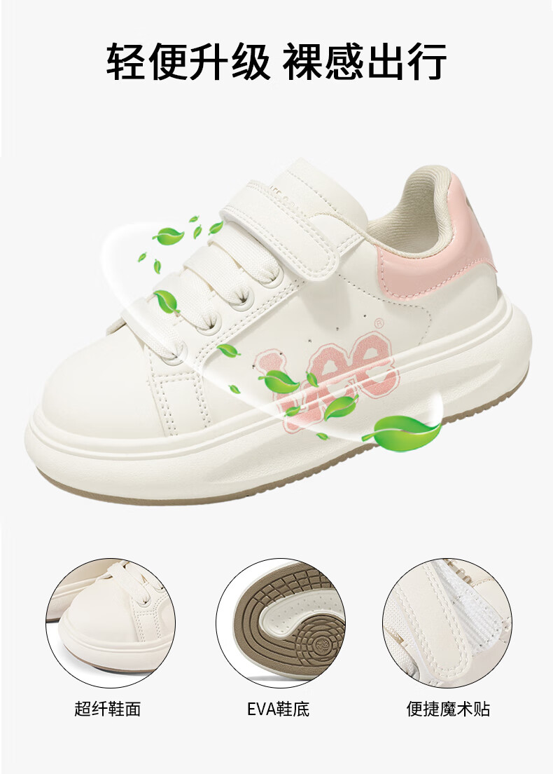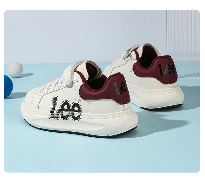 Lee童鞋春季新款儿童跑步鞋女童百搭休闲运动鞋小白板鞋男大童 米红 35 【建议脚长210mm】