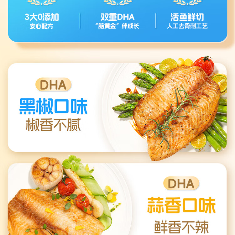叮叮懒人菜0添加DHA鱼排100g儿童早餐营养高蛋白半成品量贩装 预制菜年货 黑椒鱼排100g*5+蒜香鱼排100g*5