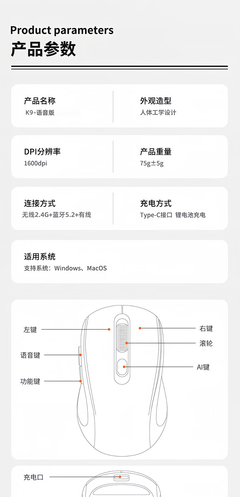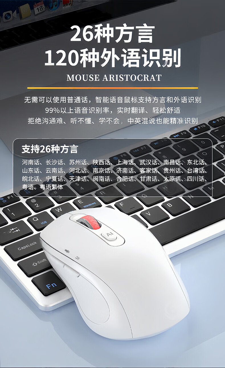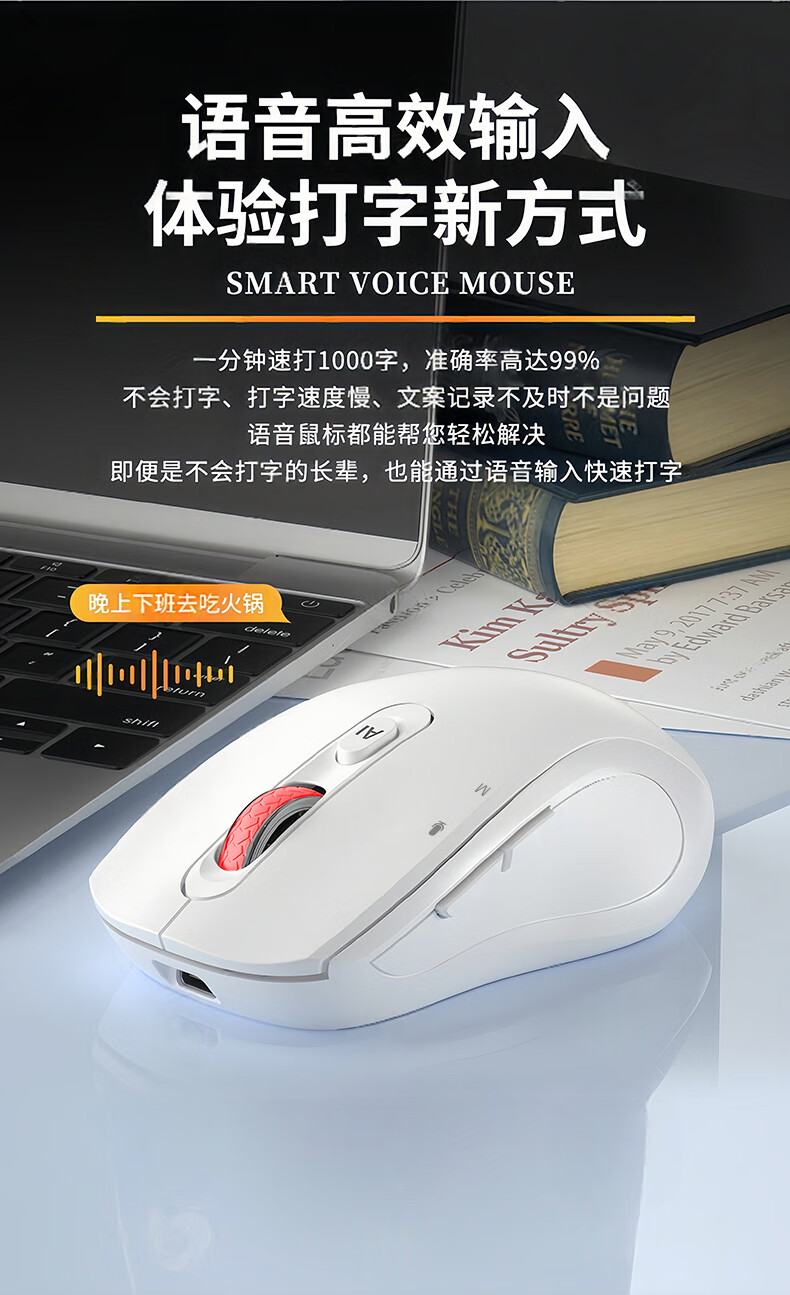 迪恪 ai智能语音无线鼠标+2.4G有线+蓝牙静音三模/适用于苹果/联想/华为台式笔记本电脑 商务黑【PPT/会议记录/翻译/数据分析/语音】 专业版:1600字/分钟(99%识别率)赠送鼠标垫