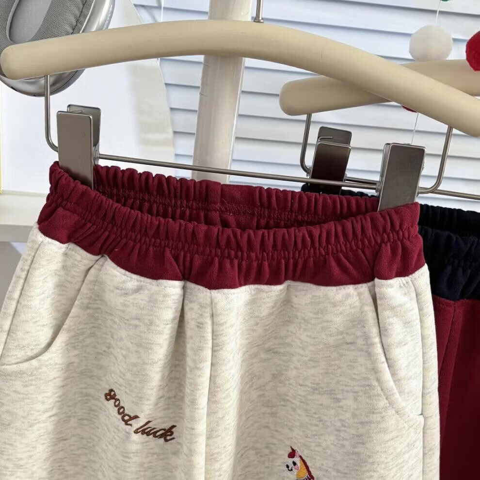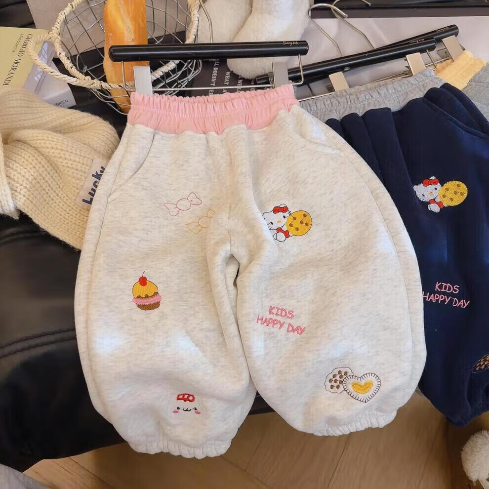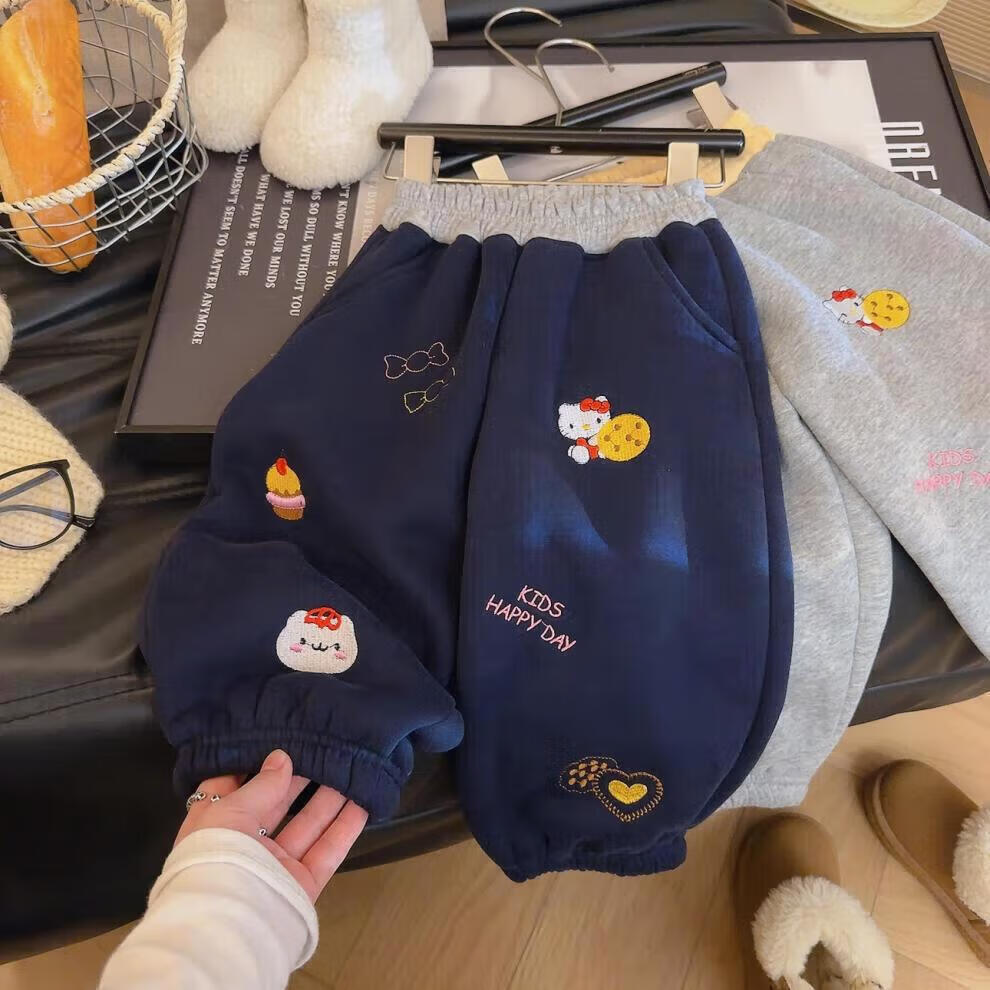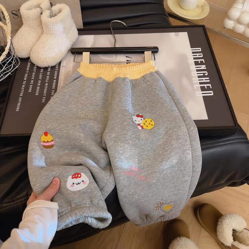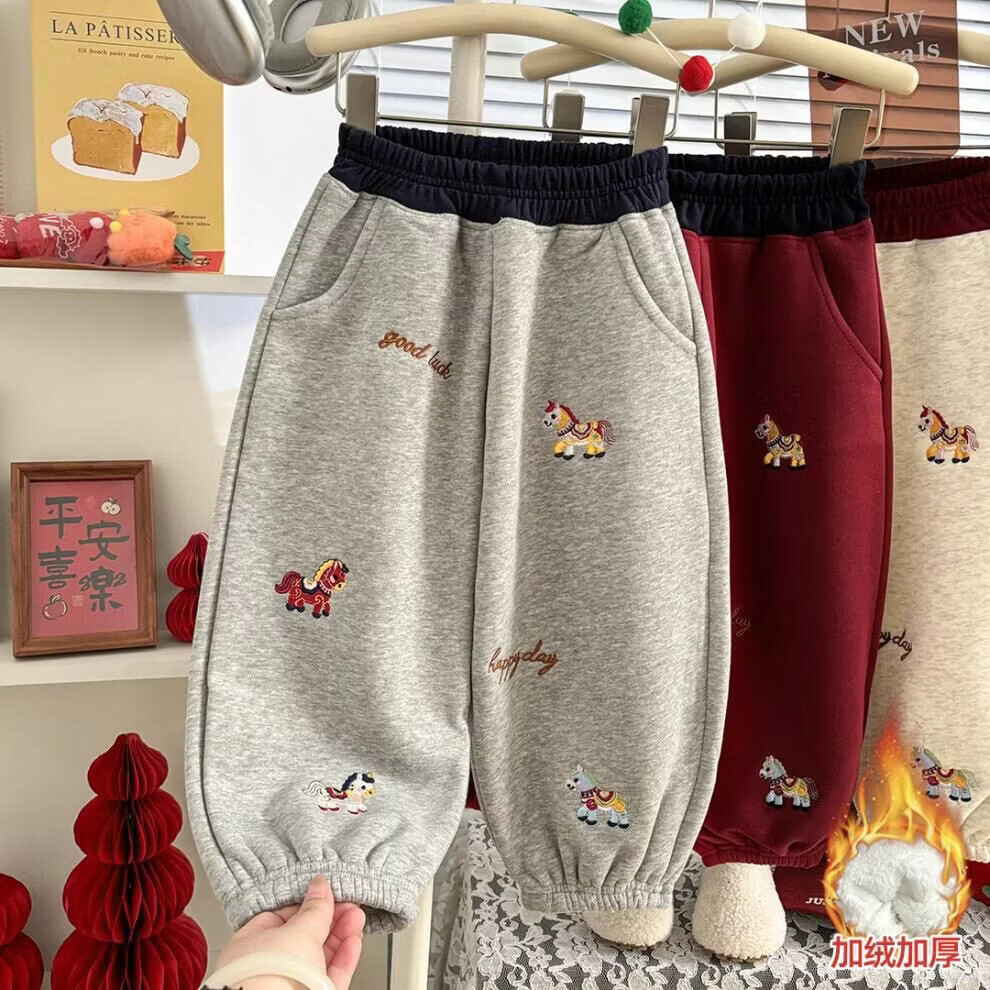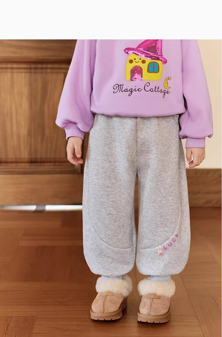小猪班纳(PEPCO)冬季女童裤子新款洋气休闲刺绣加绒加厚宝宝阔腿保暖长裤儿童卫裤 小马奔腾保暖裤-白花灰 【加绒】 140 【建议身高125-135】