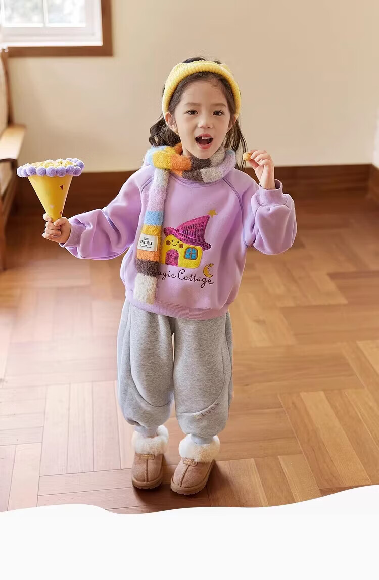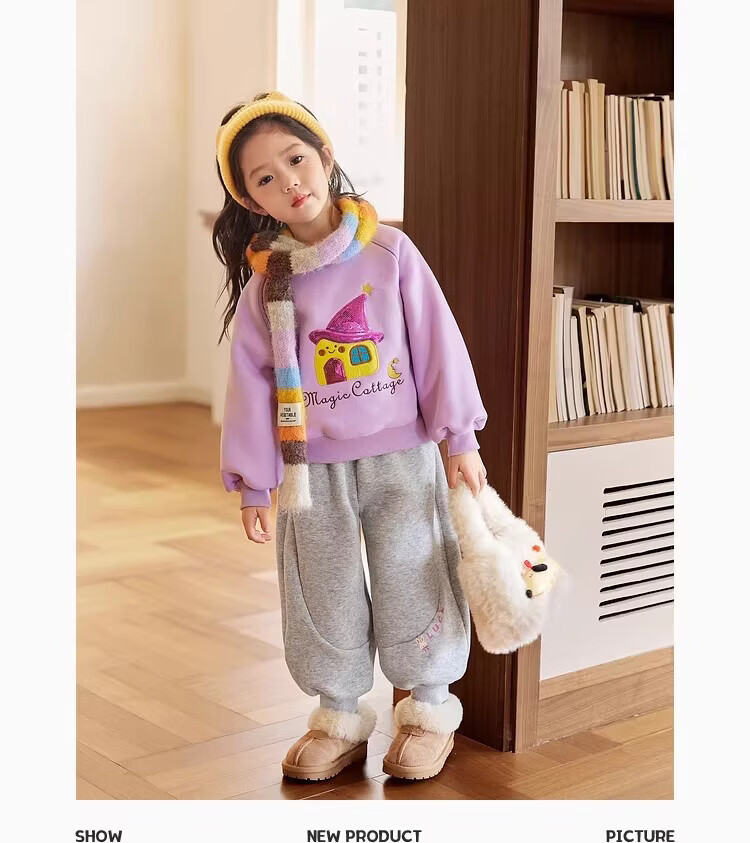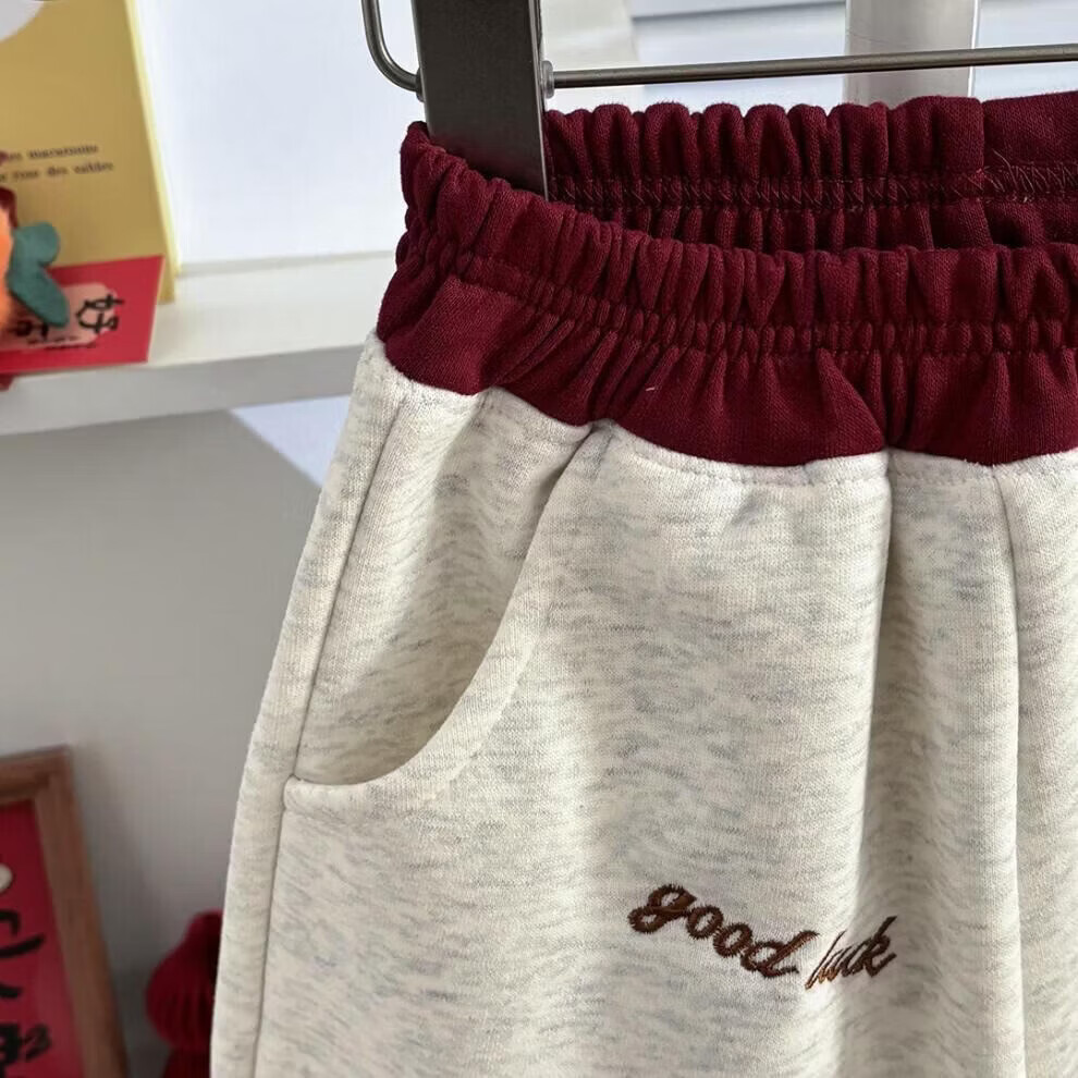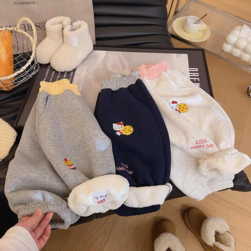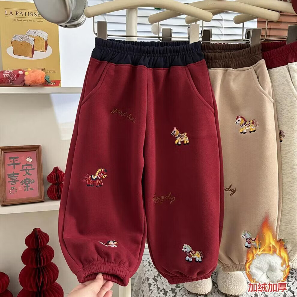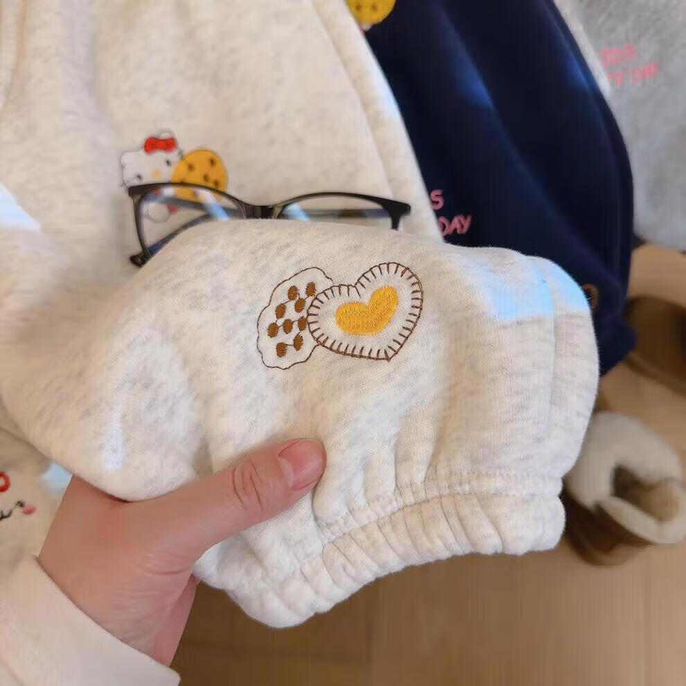 小猪班纳(PEPCO)冬季女童裤子新款洋气休闲刺绣加绒加厚宝宝阔腿保暖长裤儿童卫裤 小马奔腾保暖裤-白花灰 【加绒】 140 【建议身高125-135】