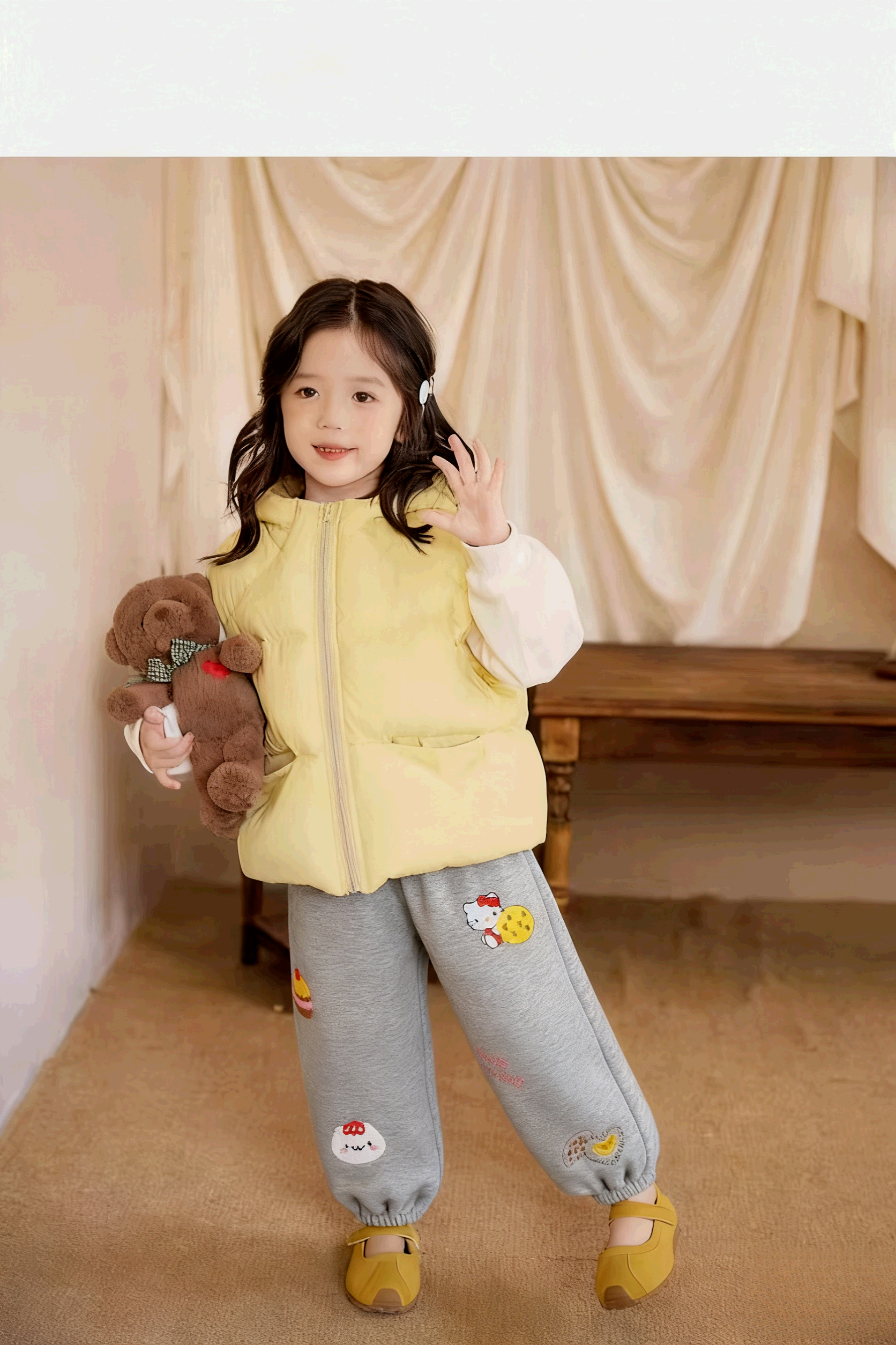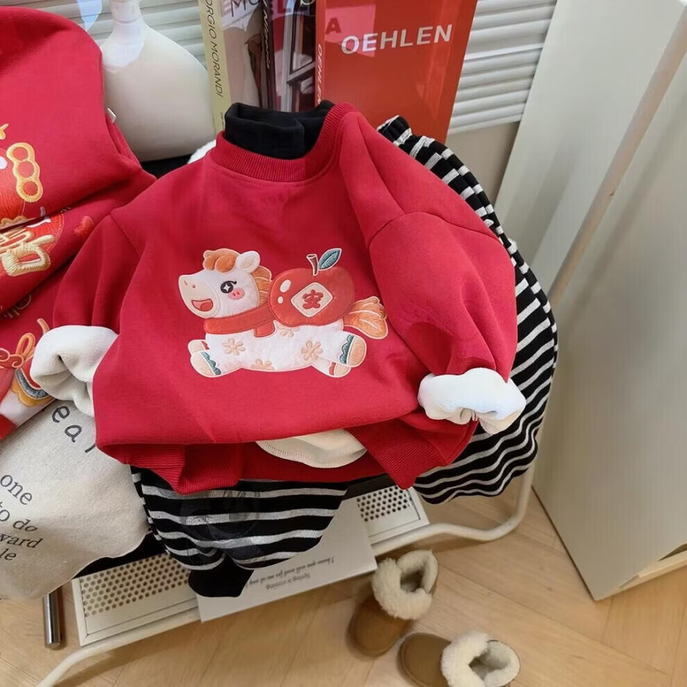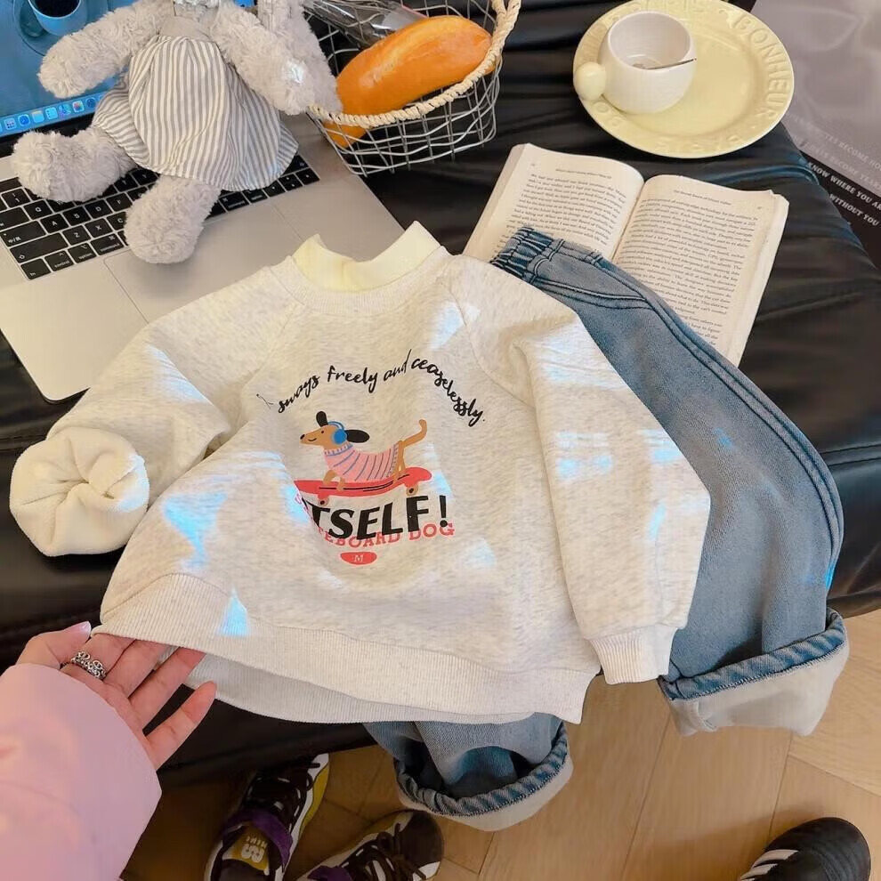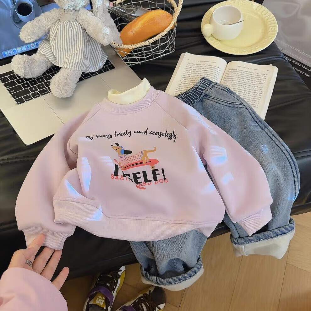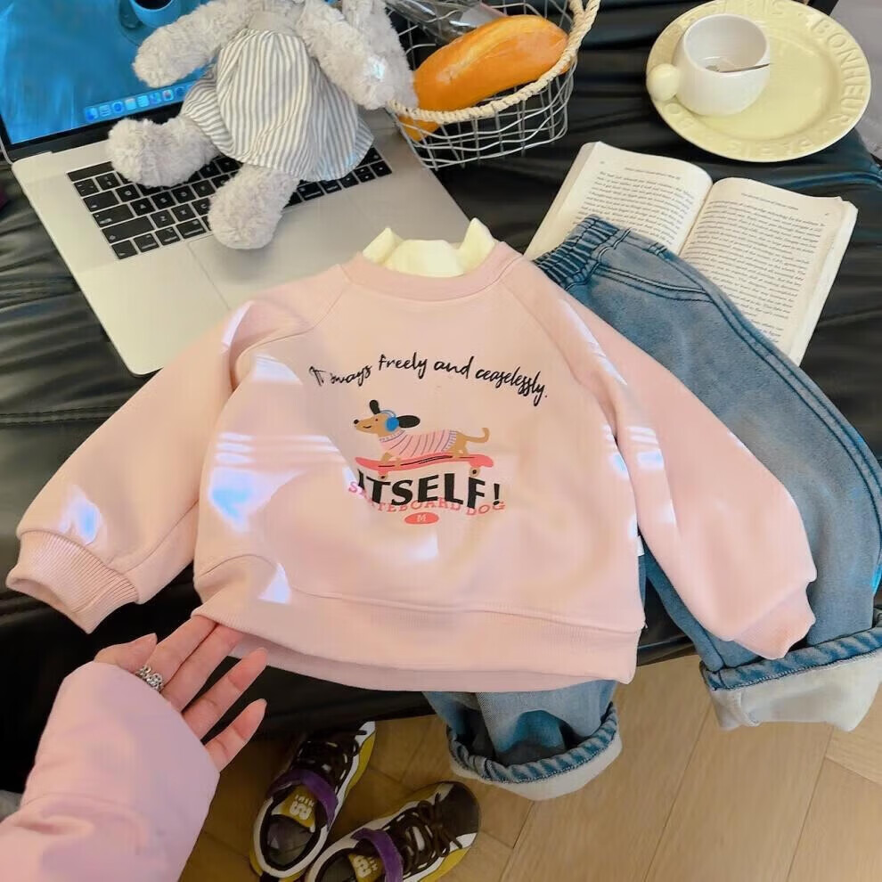 小猪班纳(PEPCO)冬季女童裤子新款洋气休闲刺绣加绒加厚宝宝阔腿保暖长裤儿童卫裤 小马奔腾保暖裤-白花灰 【加绒】 140 【建议身高125-135】