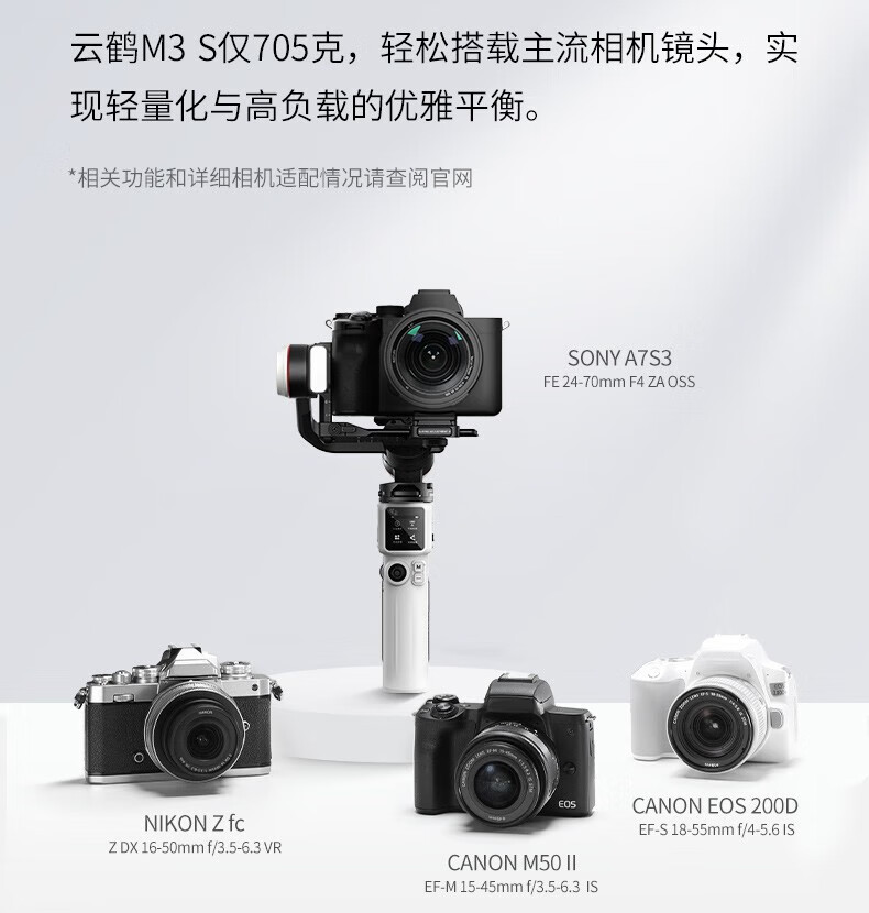 智云CRANE云鹤 M3S手持云台稳定器 微单反相机手机vlog视频抖音快手视频拍摄手持防抖设备 云鹤M3S COMBO套装