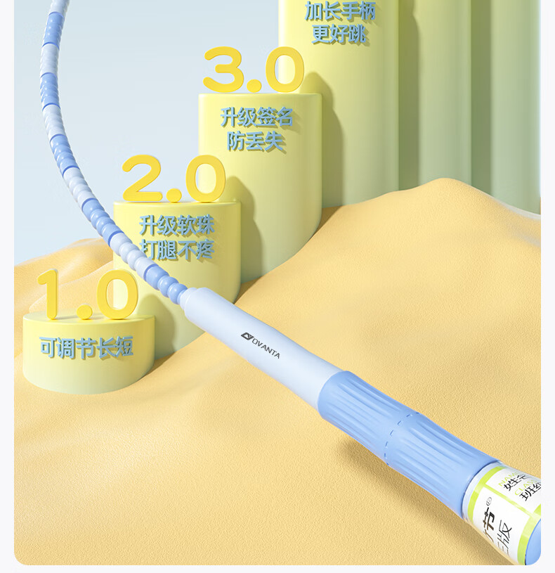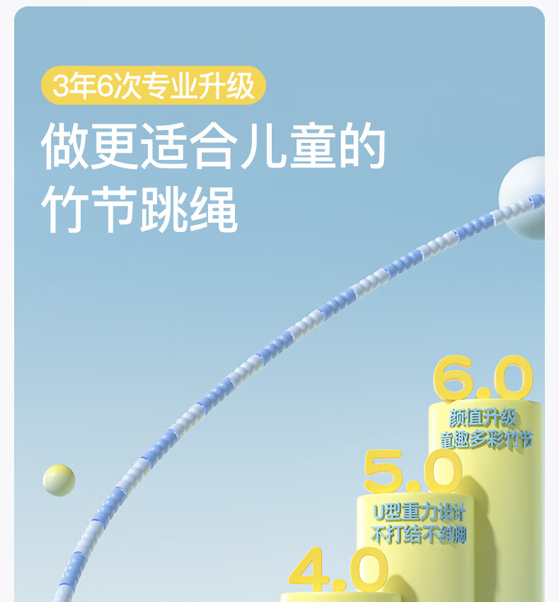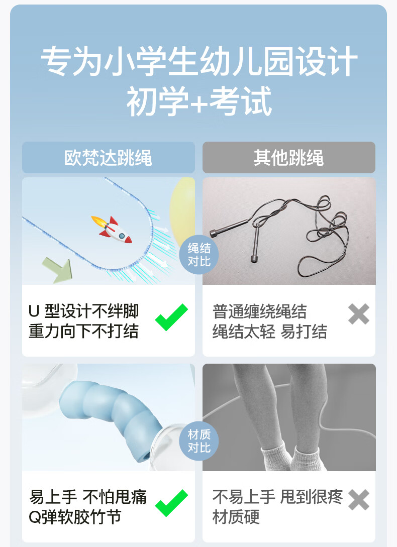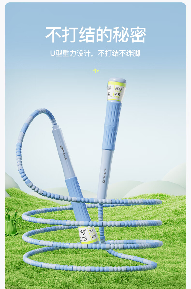 欧梵达儿童跳绳竹节小学生幼儿园3-56-12岁一年级初学训练不打结神 入门必选/儿童专业竹节绳-春芽绿