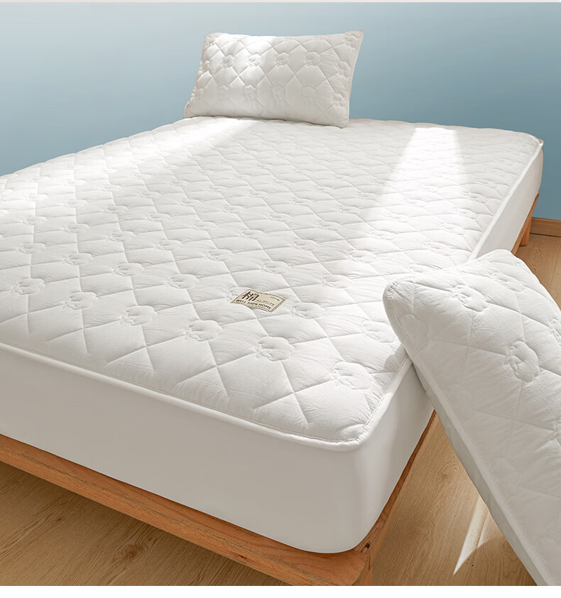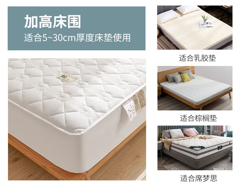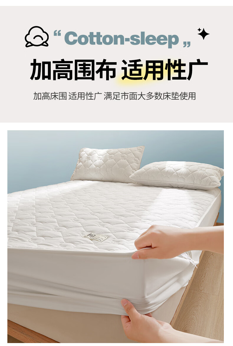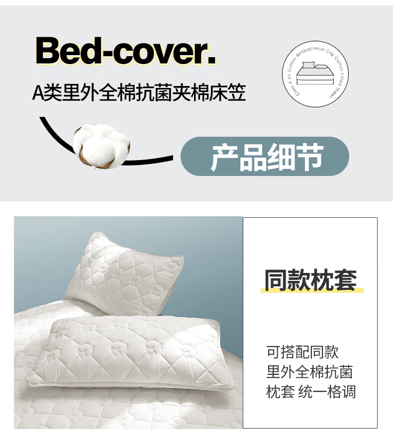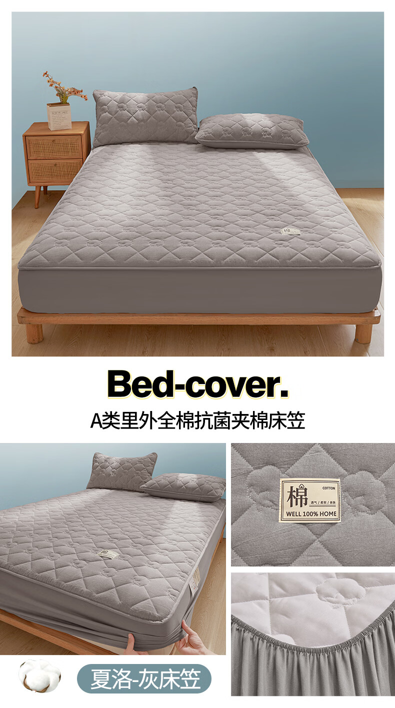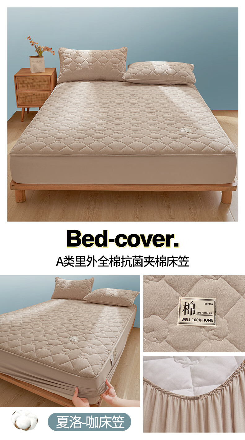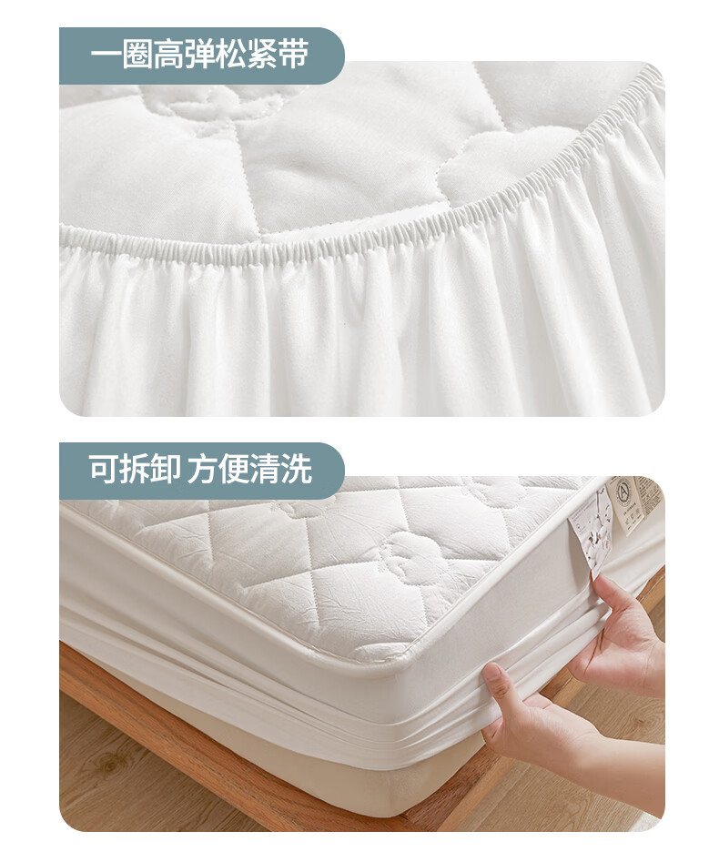 无印良品A类抗菌纯棉床笠1.5x2米100%全棉新疆棉花夹棉床罩防滑床垫保护套 夏洛-白 【A类抗菌 100%纯棉】 150cm*200cm 【单床笠】