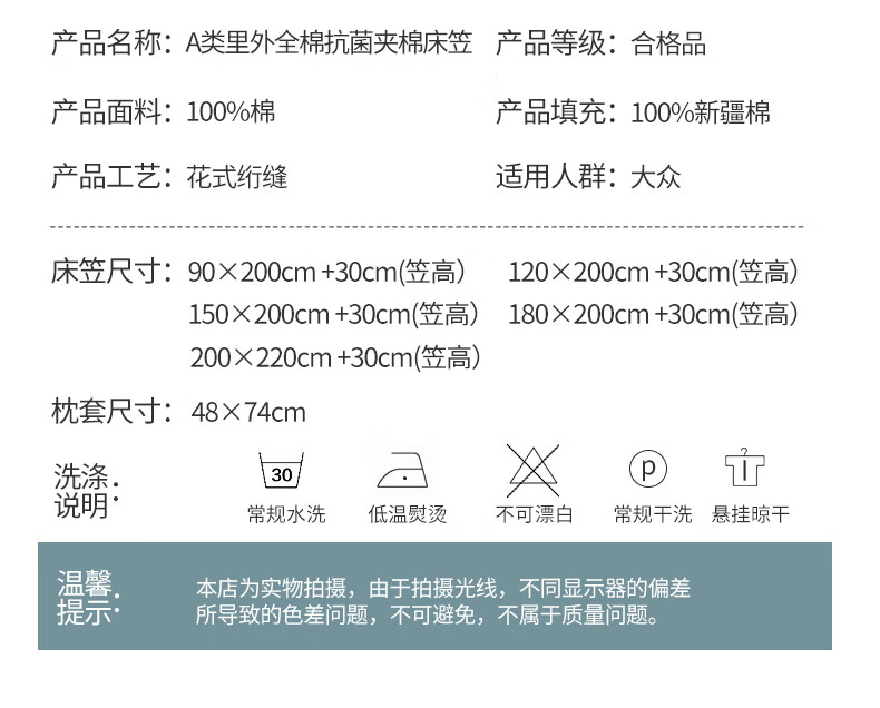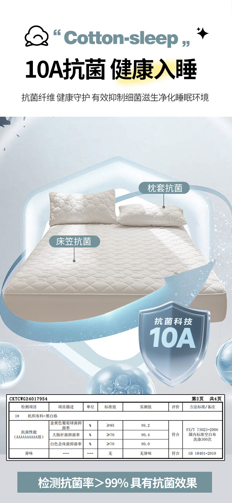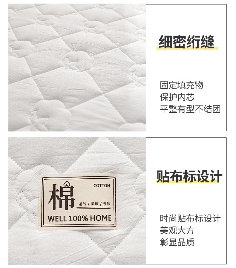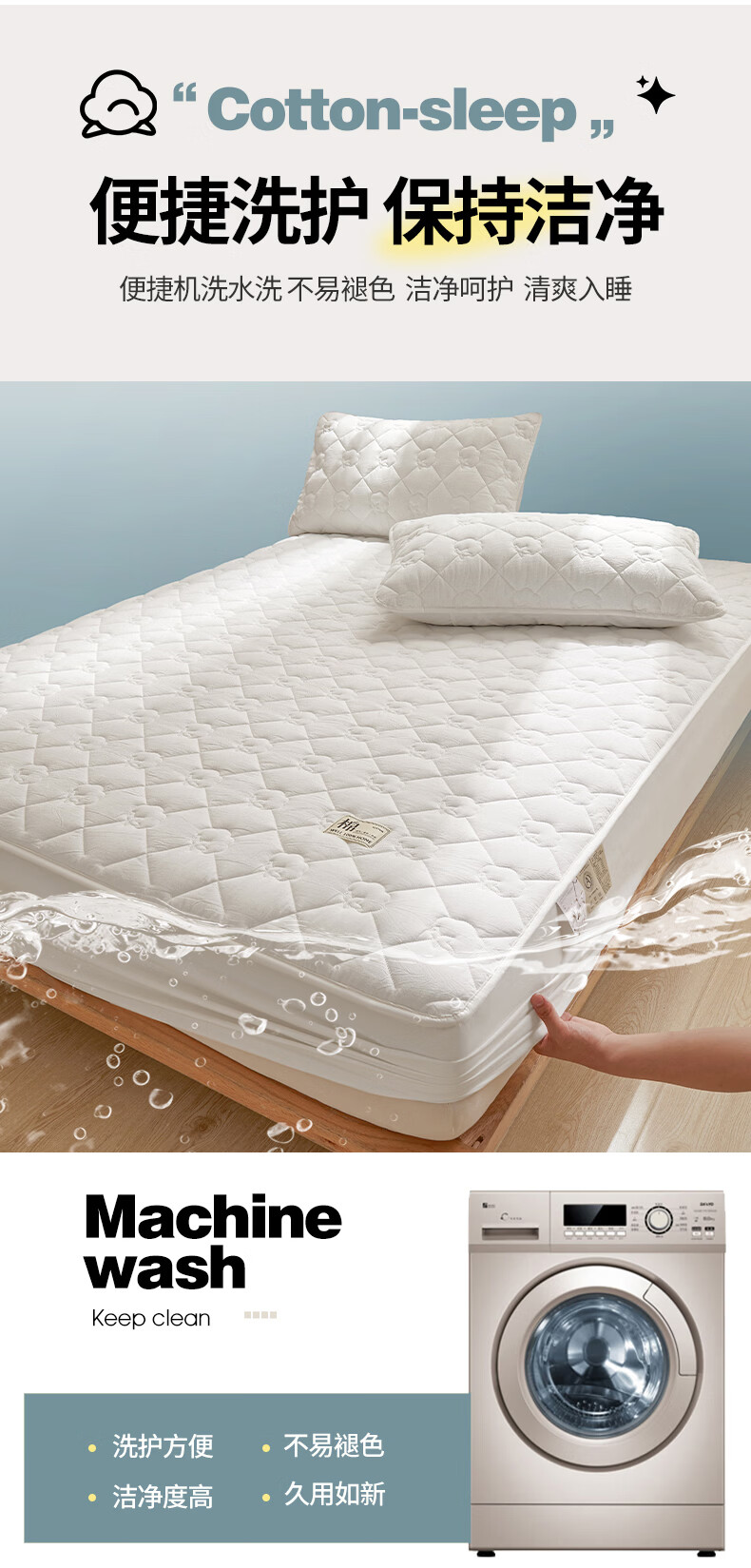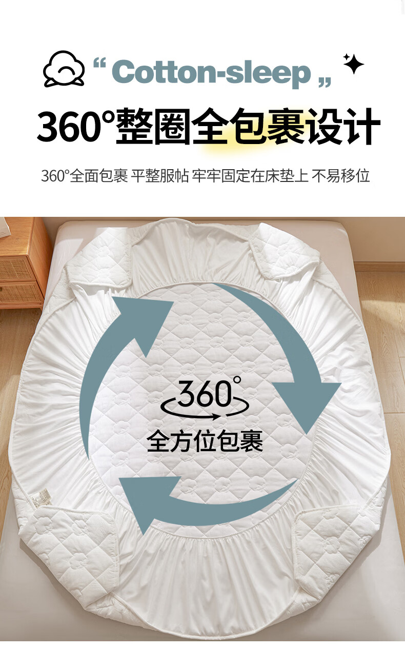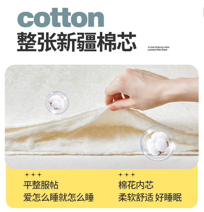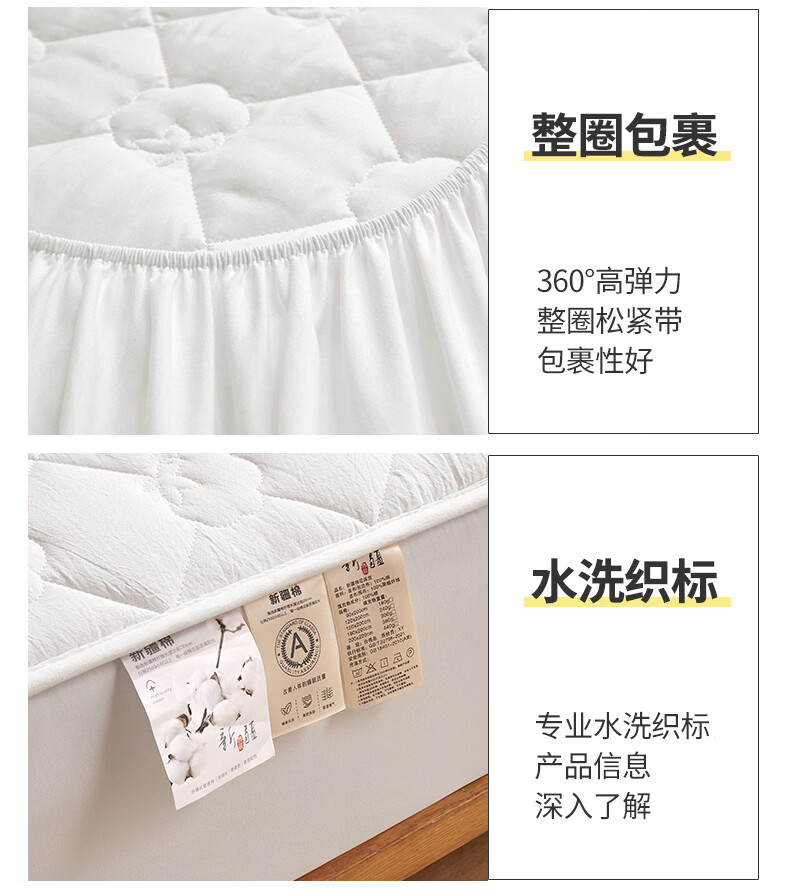无印良品A类抗菌纯棉床笠1.5x2米100%全棉新疆棉花夹棉床罩防滑床垫保护套 夏洛-白 【A类抗菌 100%纯棉】 150cm*200cm 【单床笠】