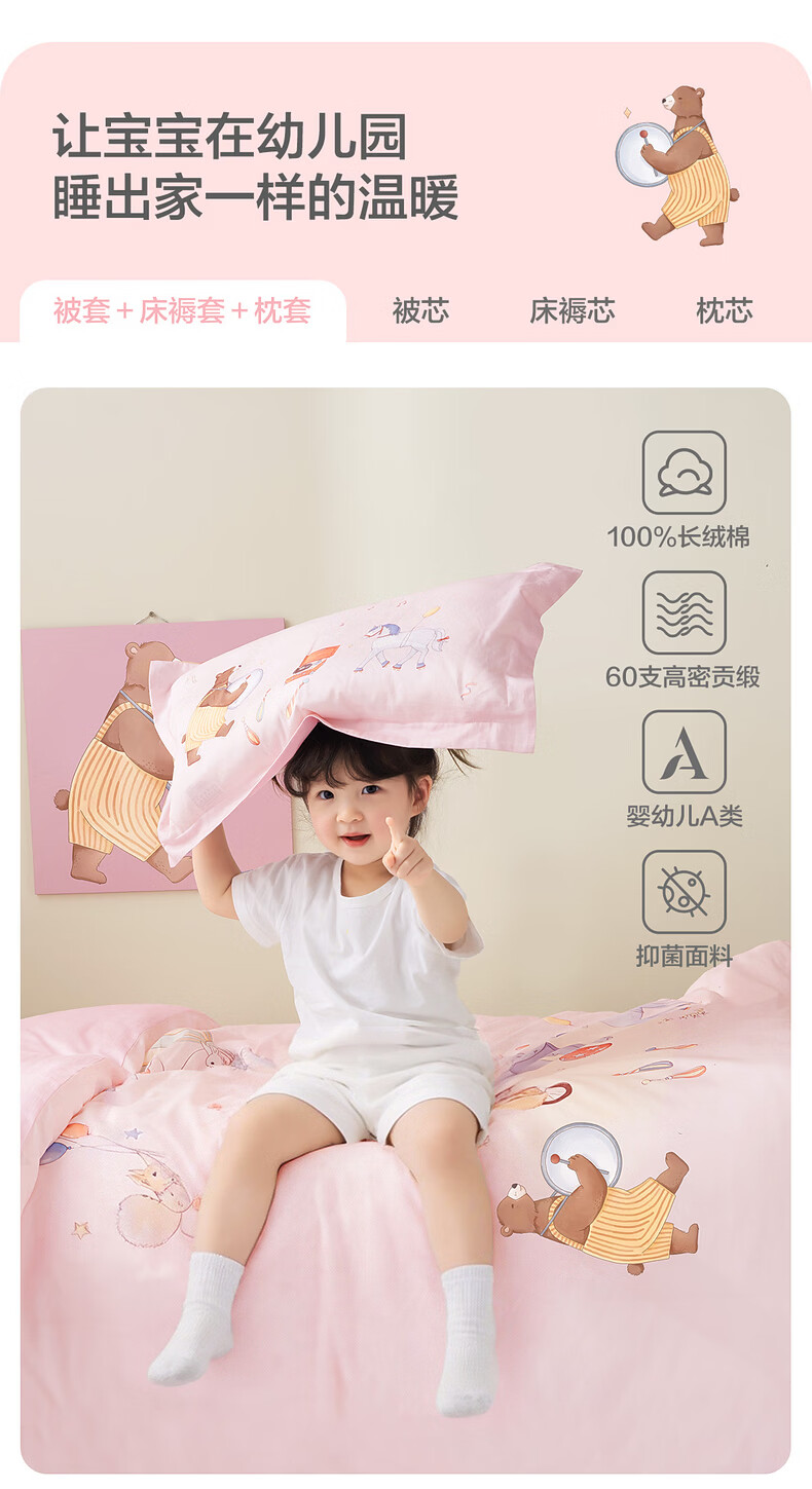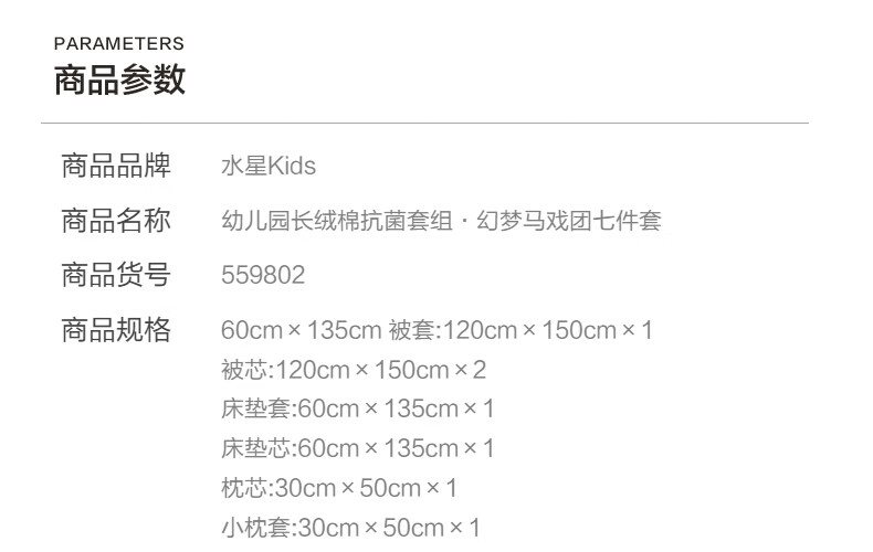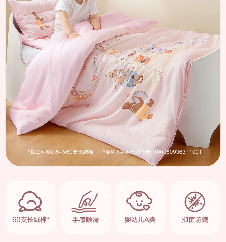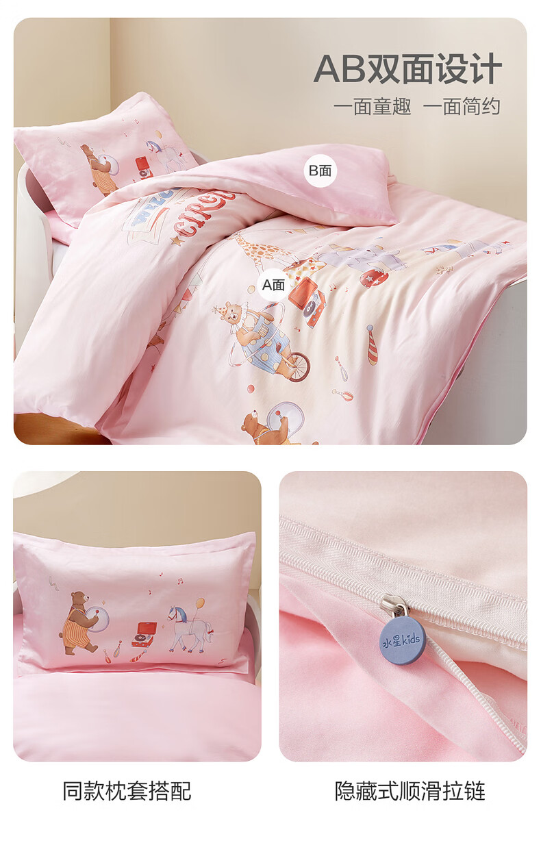 水星家纺幼儿园长绒棉抗菌套组·幻梦马戏团 幼儿园长绒棉抗菌套组·幻梦马戏团 床笠款 (被套150*120cm)