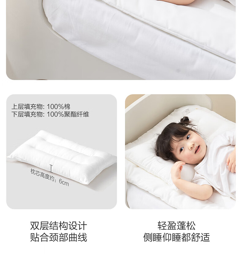 樵纪枕头40支全棉水洗棉A类无添加儿童枕Panda国朝躺平枕纯棉回弹枕芯 Panda Chil 单只 30x50x5cm/小童枕