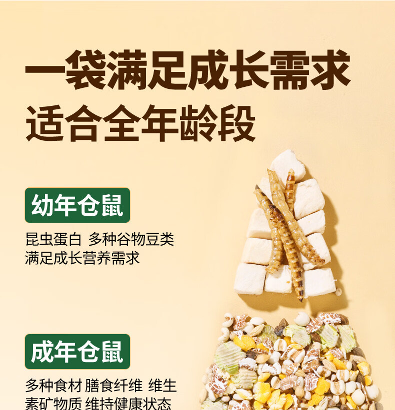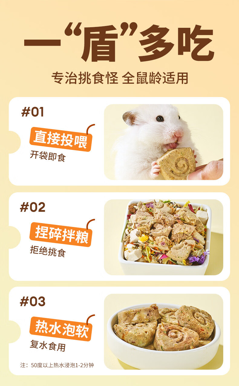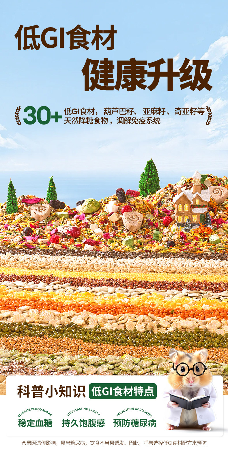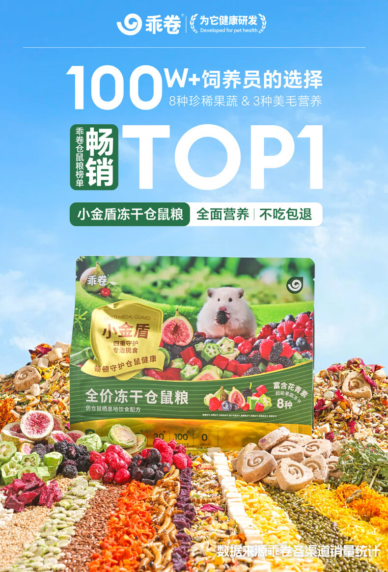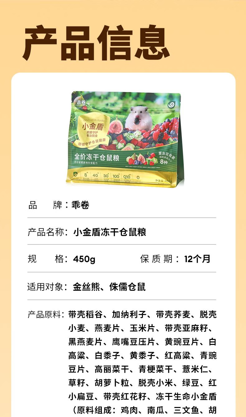 乖卷仓鼠粮小金盾益生菌果蔬鲜肉冻干粮金丝熊花枝鼠全价营养主粮450g