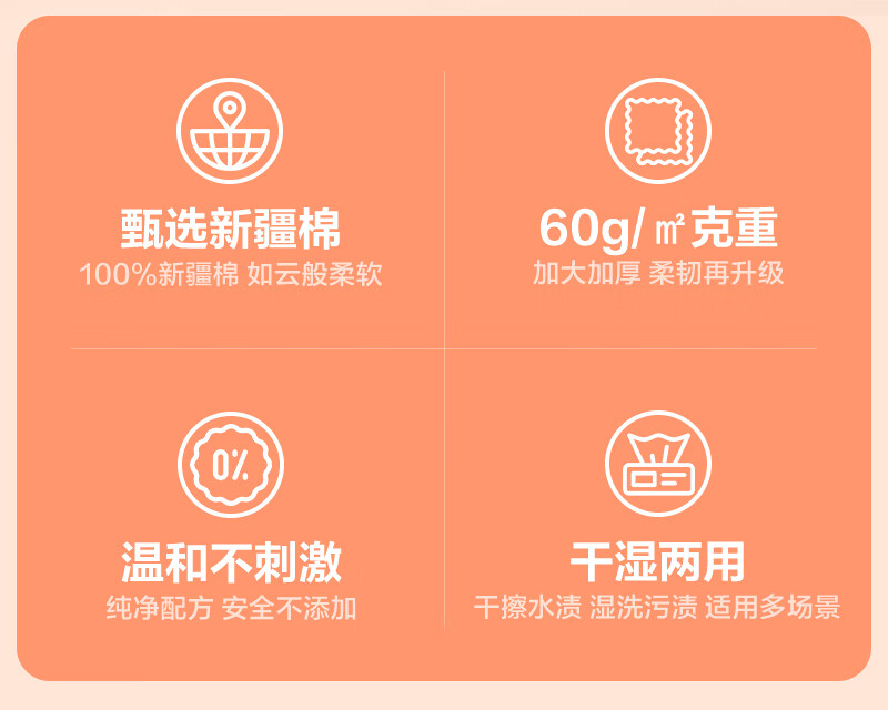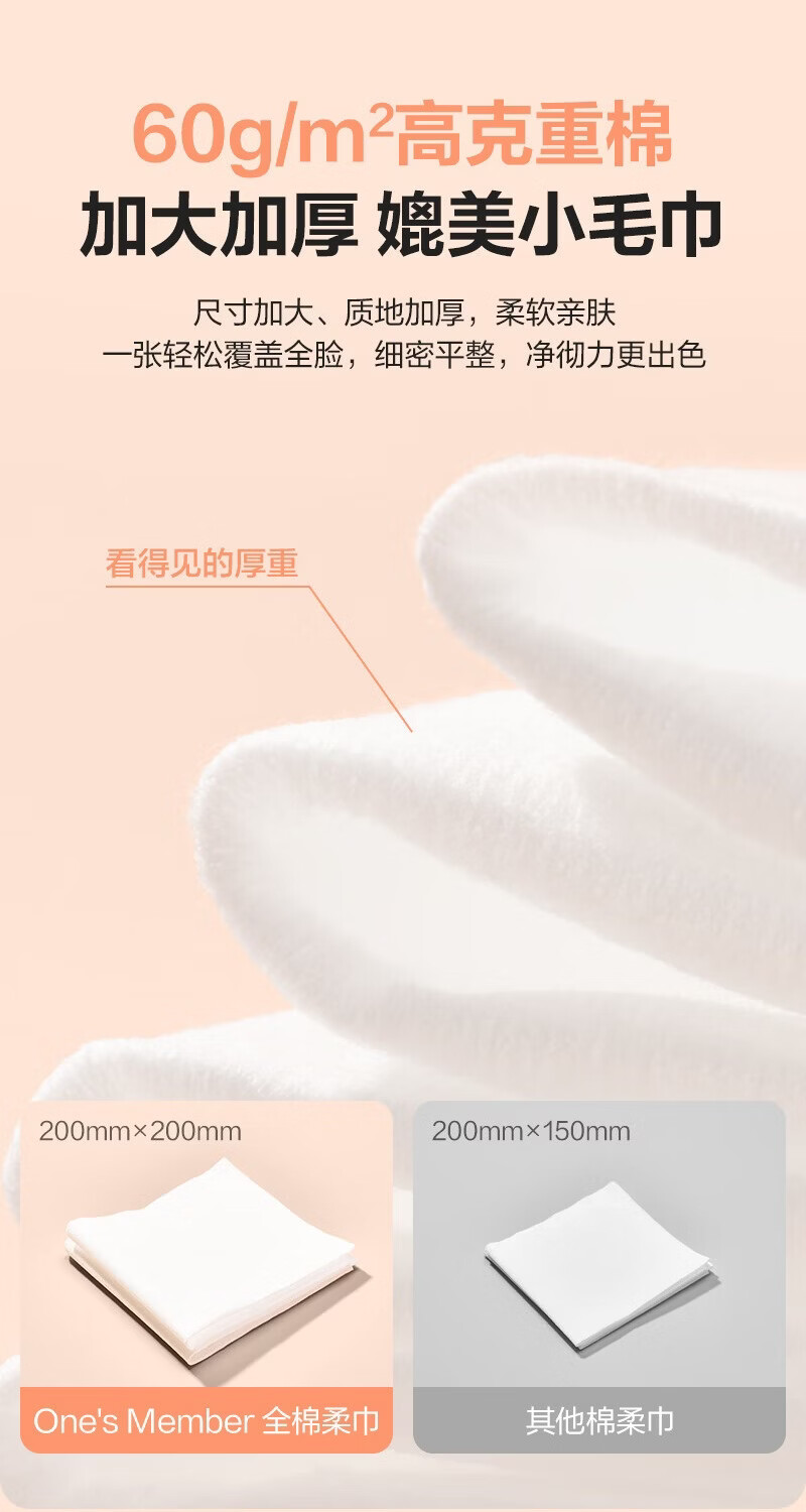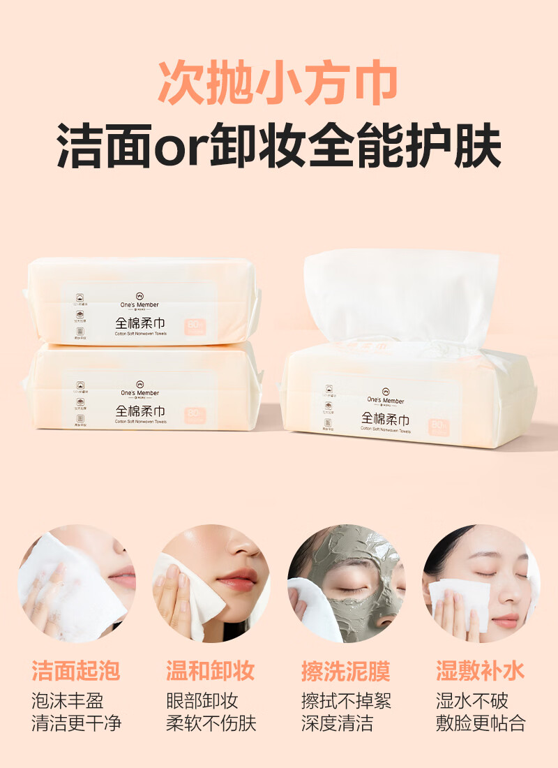 1号会员店 100%新疆棉全棉洗脸巾80抽*6包 加大加厚干湿两用