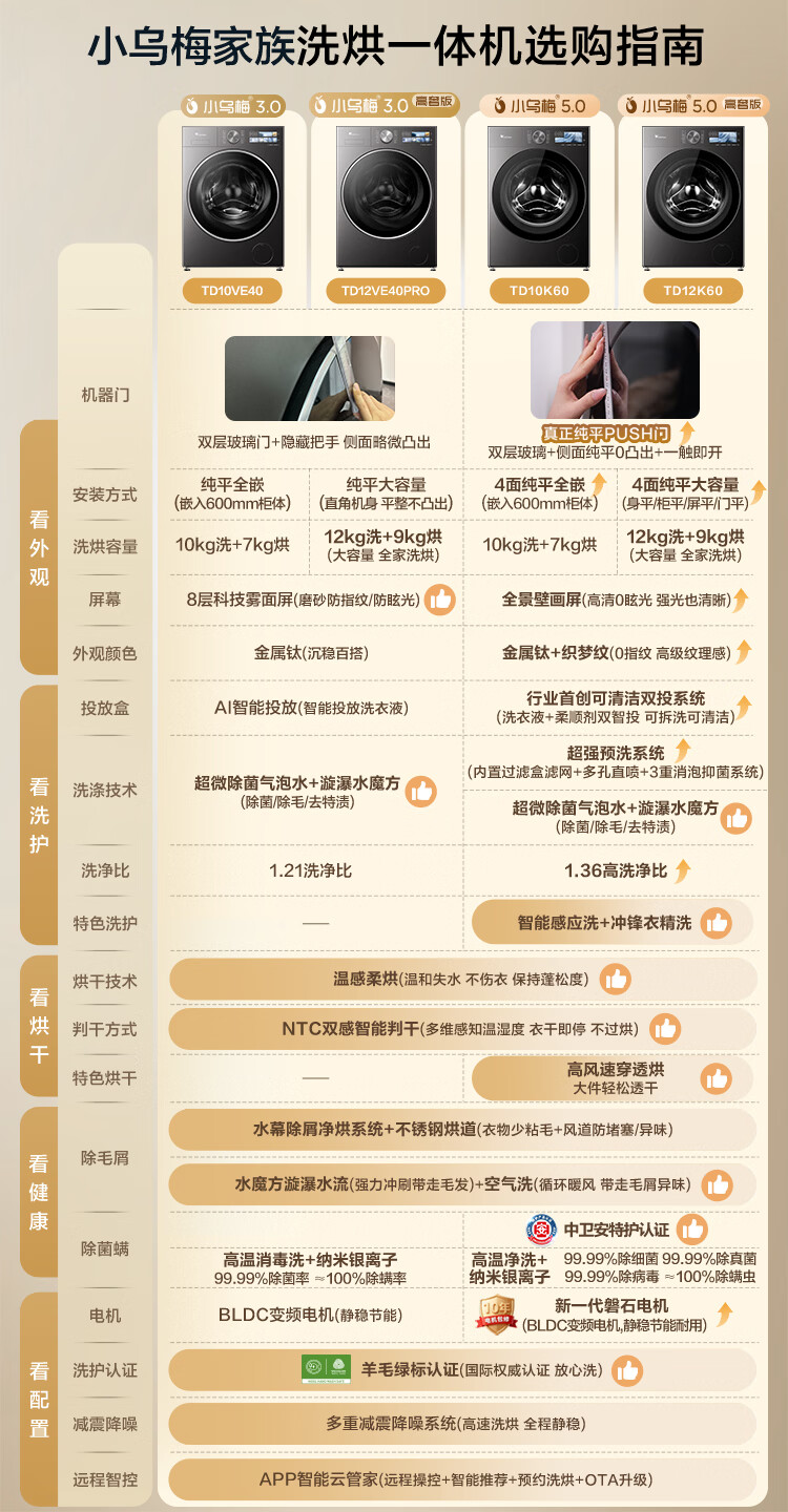 小天鹅(LittleSwan)小乌梅3.0 滚筒洗衣机全自动 带烘干洗烘一体 10KG 纯平全嵌 TD10VE40 以旧换新 国家补贴 自营