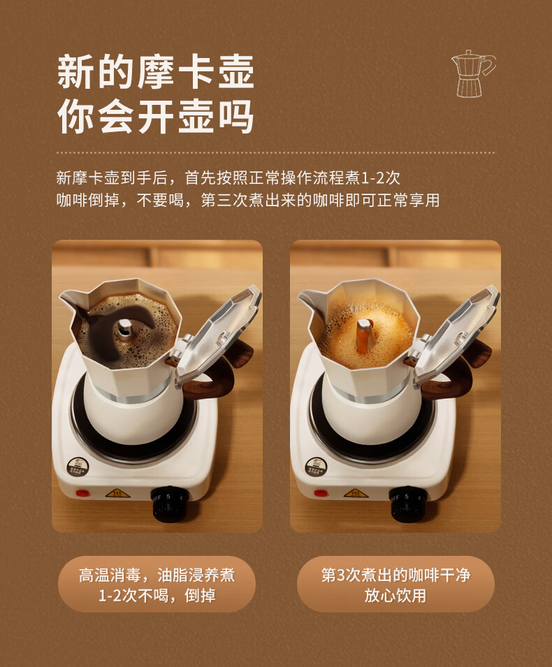 STAR-START咖啡摩卡壶双阀家用套装第三代小型意式煮咖啡壶浓缩萃取咖啡机 【2人份】黑色双阀摩卡壶+滤纸+布粉器+电热炉-4件套