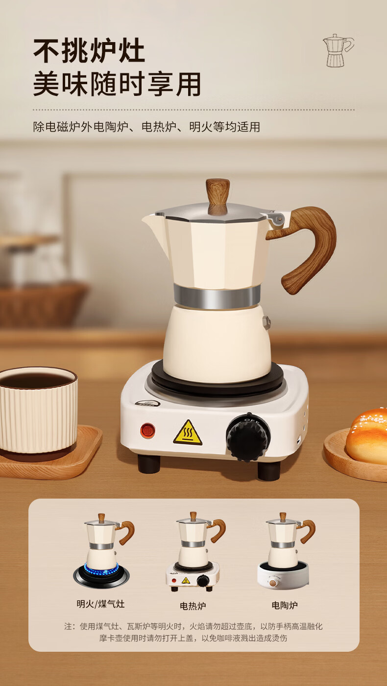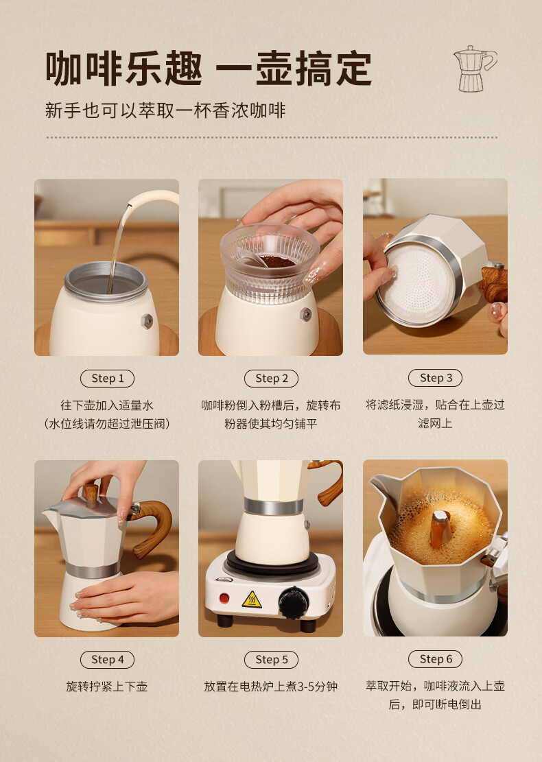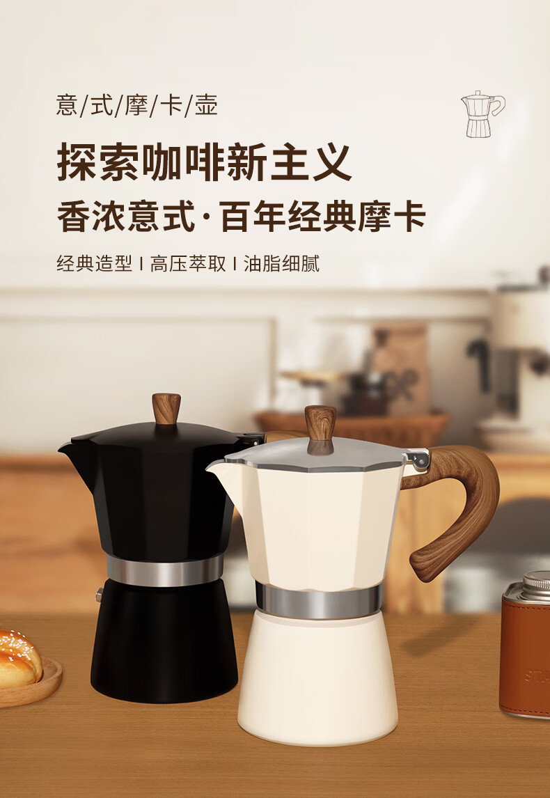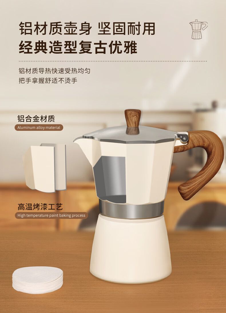 STAR-START摩卡壶套装礼盒家用煮摩卡咖啡壶单阀入门意式浓缩萃取咖啡机小型 白色摩卡壶 单阀 【2件套】滤纸