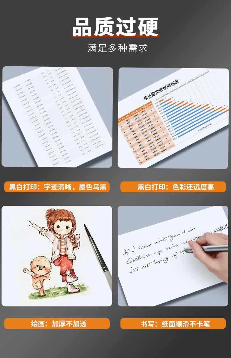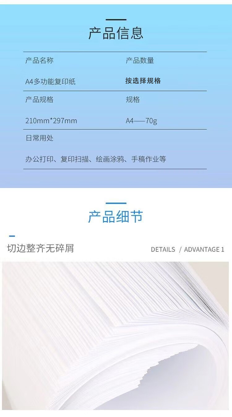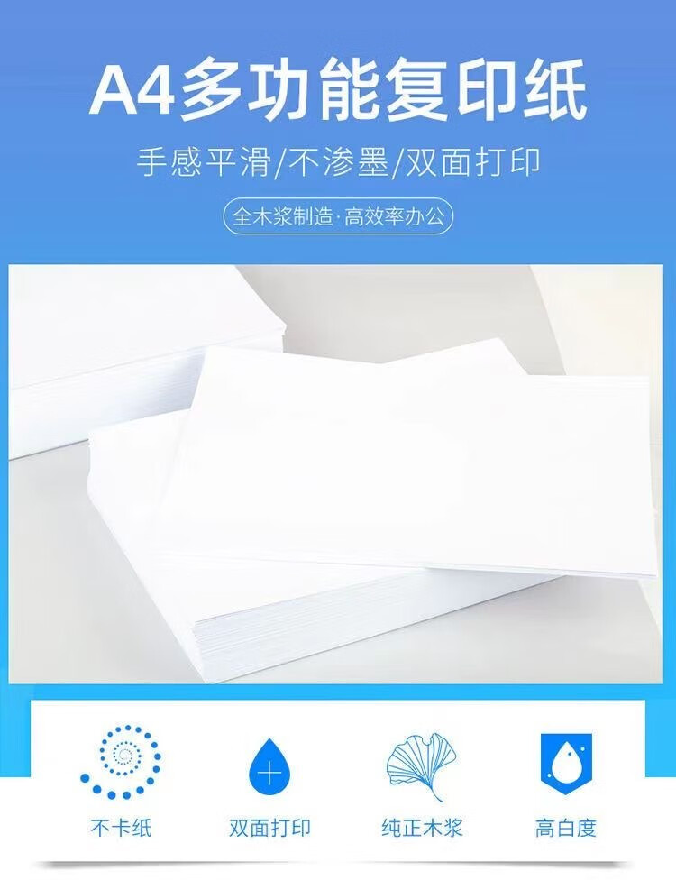 A4打印纸70g500张加厚多功能双面打印纸a4纸复印纸快递办公用品白纸整箱笔记企业团购 打印纸100张/包
