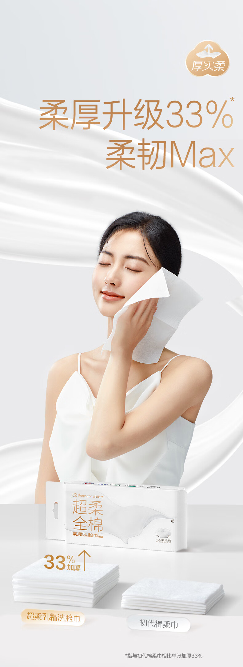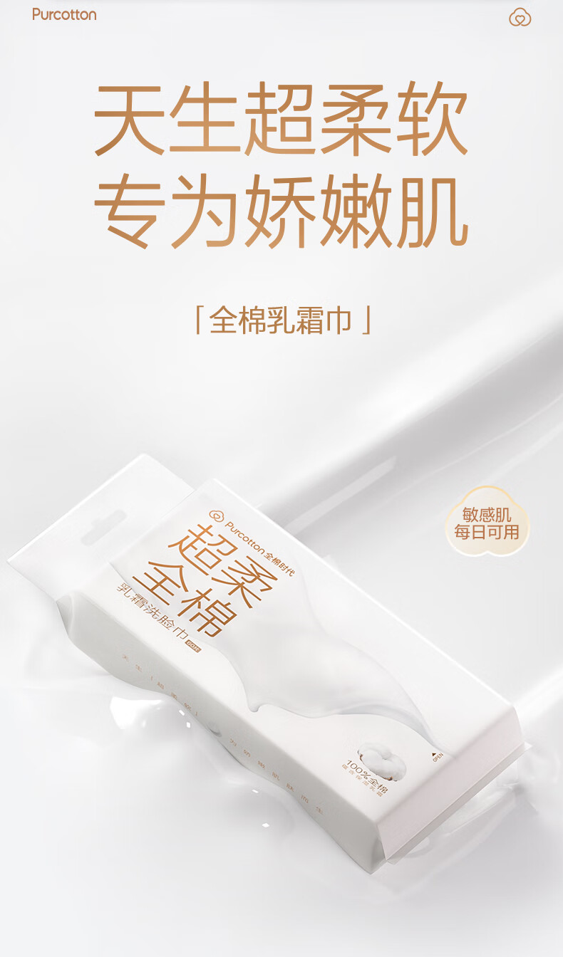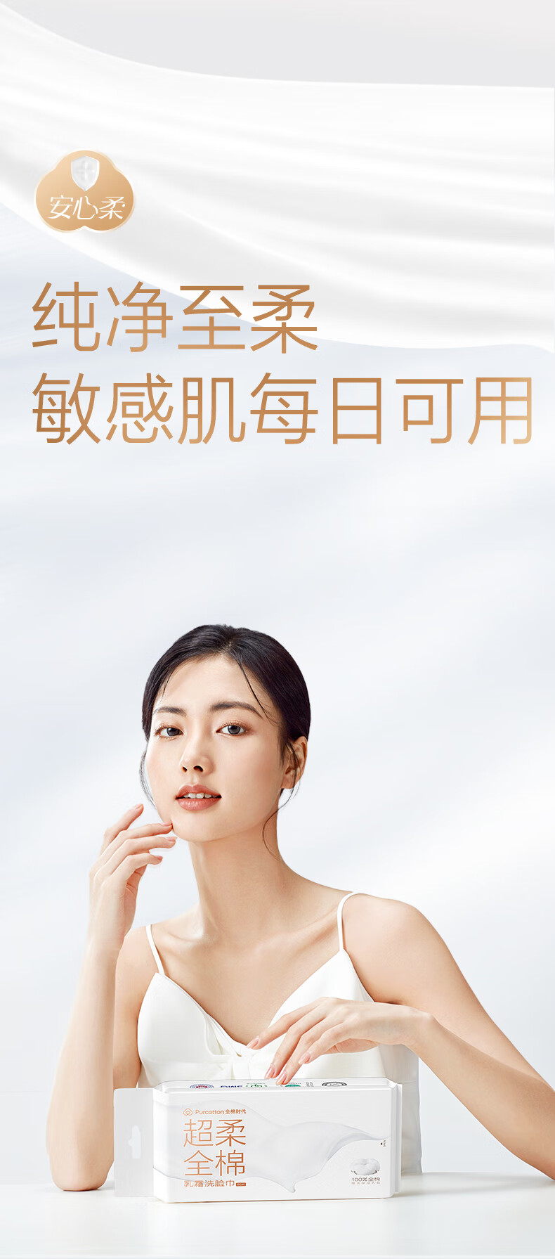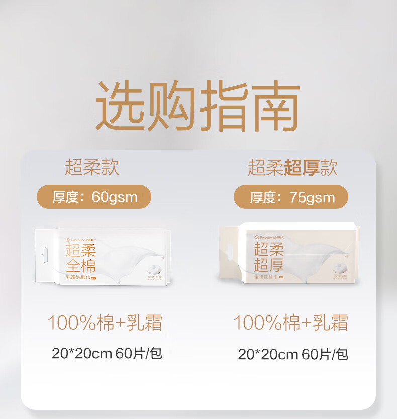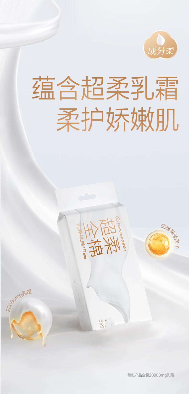 全棉时代【孙颖莎同款】乳霜洗脸巾 60抽/包*1加厚悬壁挂式100%棉柔巾毛巾