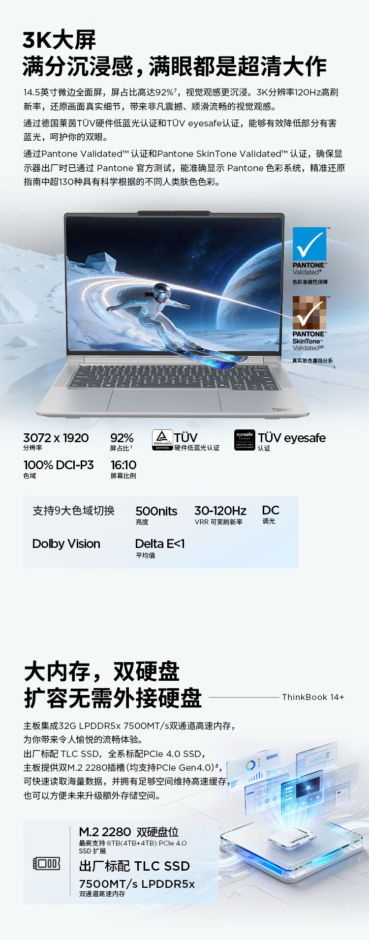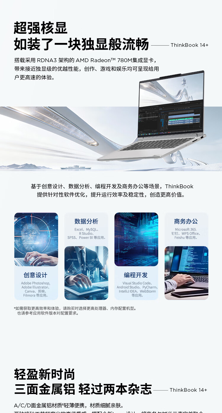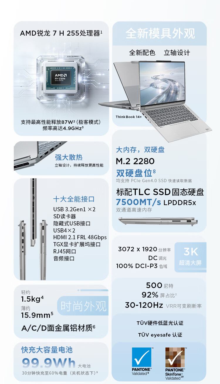 ThinkPad国家补贴15%联想笔记本电脑ThinkBook14+ 2026全能本 锐龙7 H 255 32G 1T 3K 14.5英寸高刷 星耀白