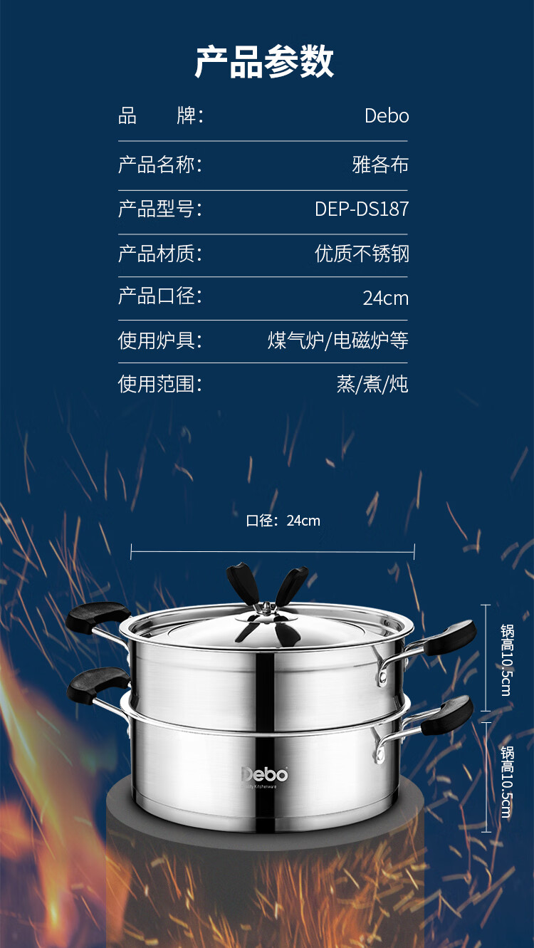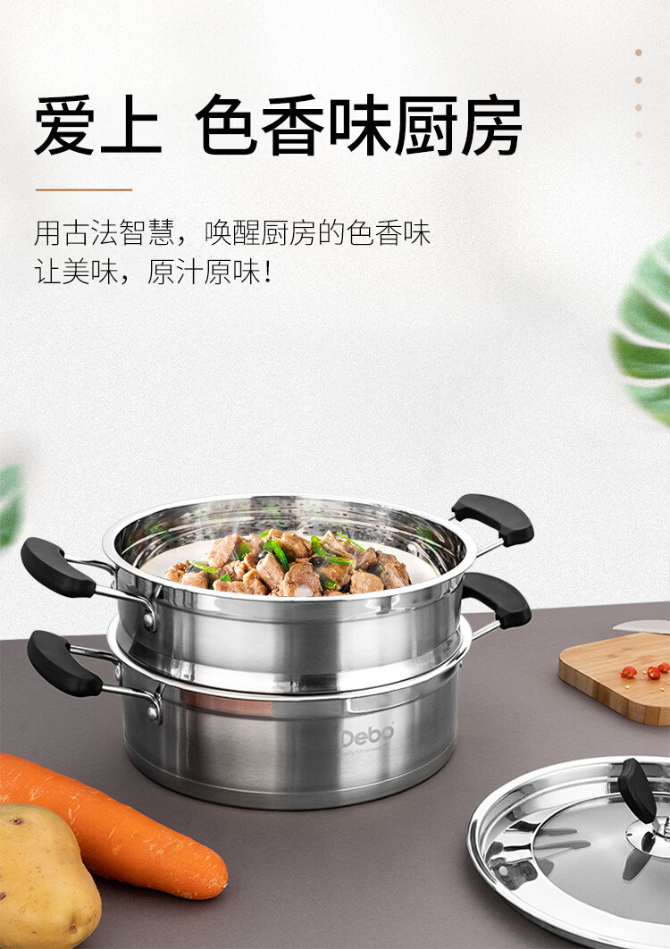 Debo德铂不锈钢蒸煮锅大容量易清洗上蒸下煮加厚复底不挑灶家用