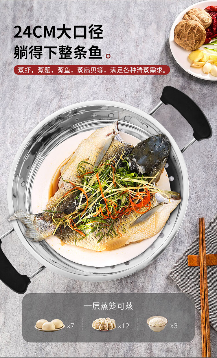 荣事达蒸锅家用304不锈钢三层加厚蒸笼蒸鱼馒头电磁炉燃气炉汤锅 【304不锈钢锅】 三层 高拱盖加高 28cm