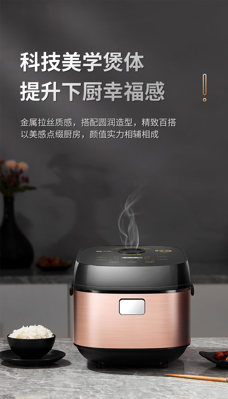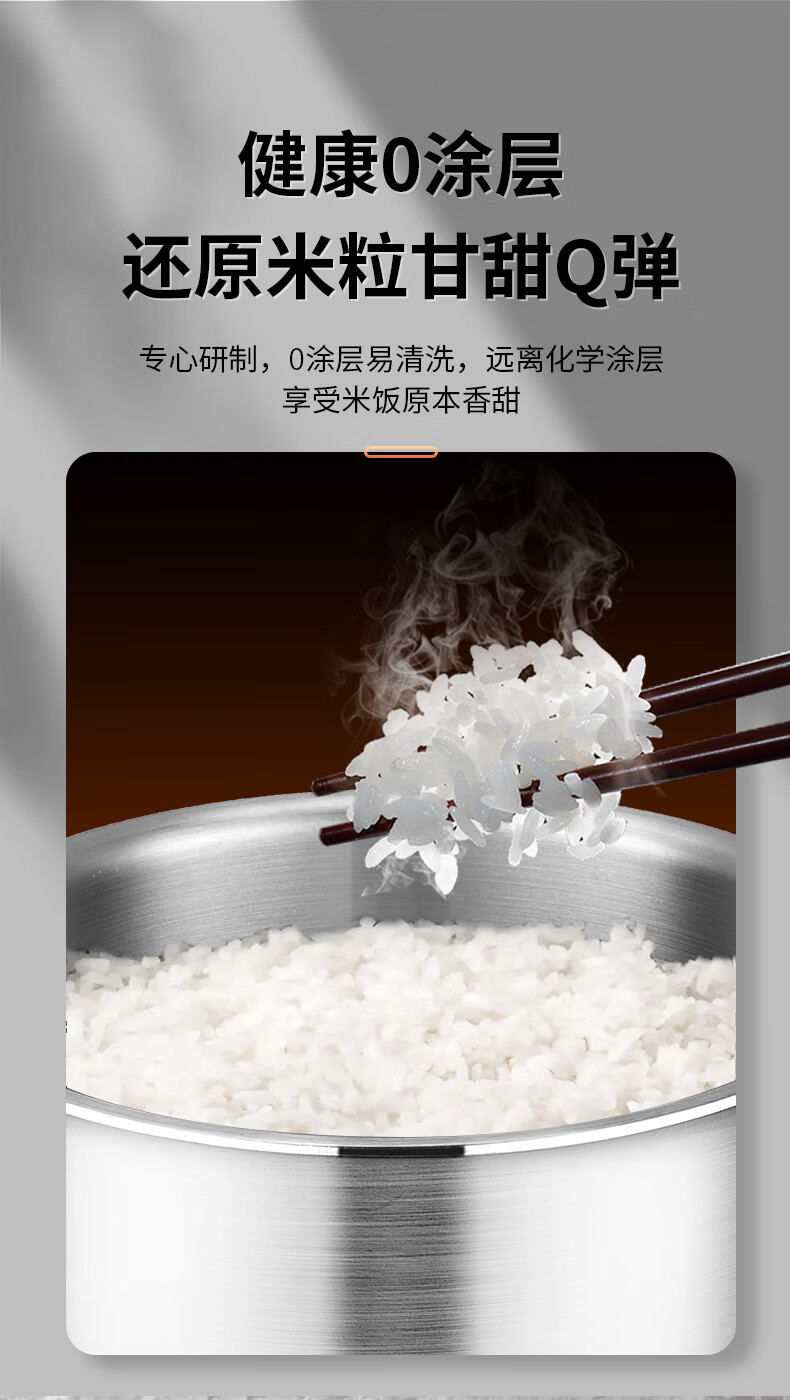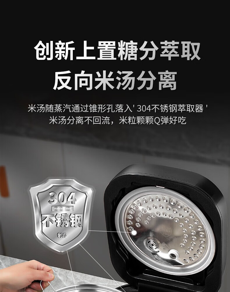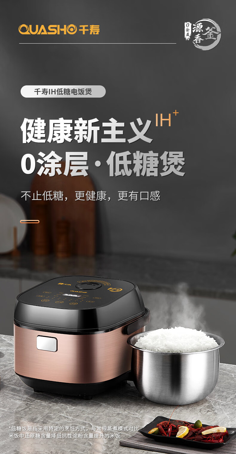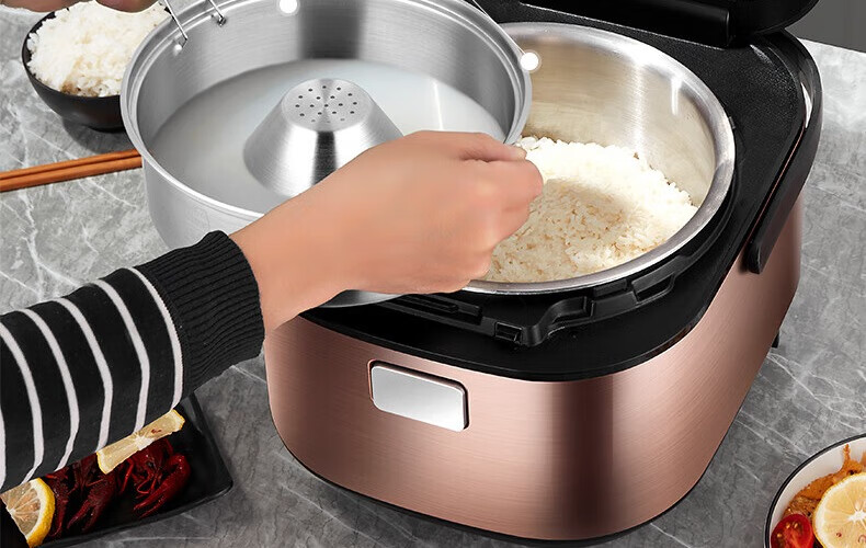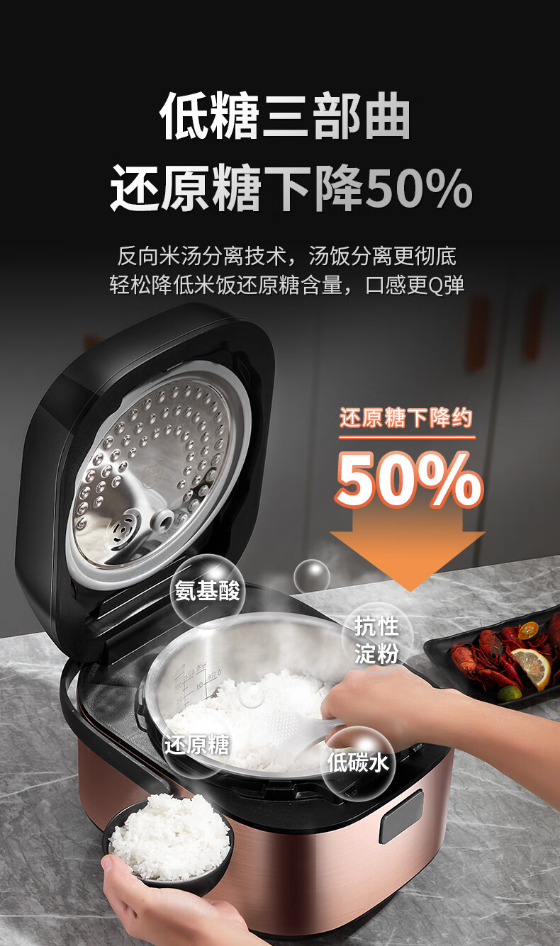 QUASHOIH加热低糖电饭煲0涂层一级能效5升3-5-8个人家用304不锈钢球釜内胆米汤分离沥米饭预约蒸米电饭锅 玫瑰金升级【1级能效】 5L 3-8人适用 【高端电饭煲-萃取米汤】