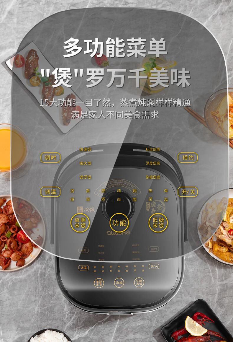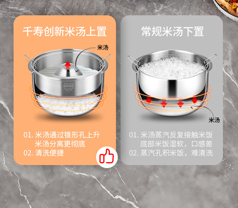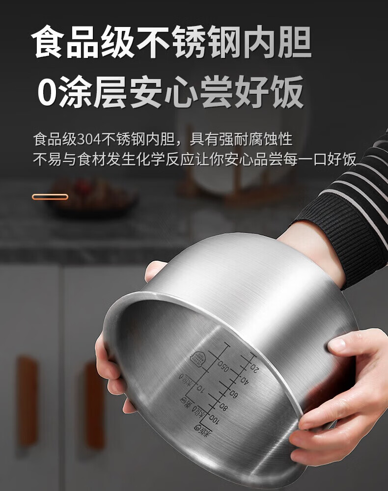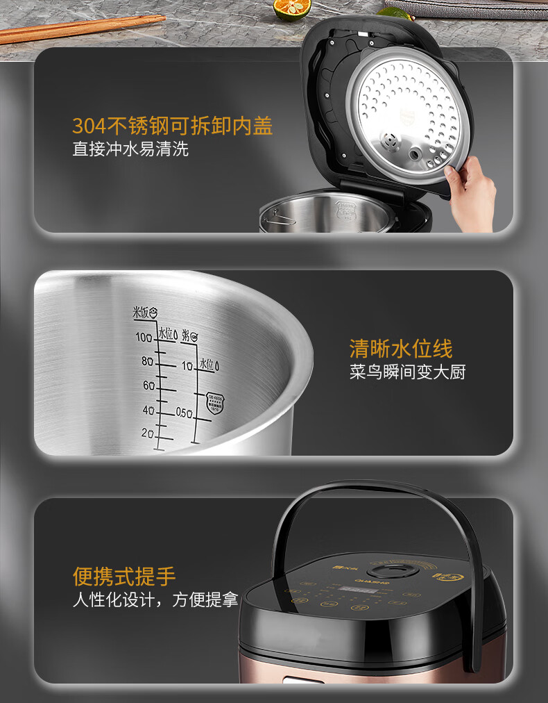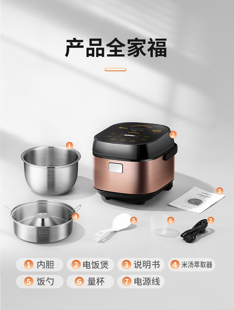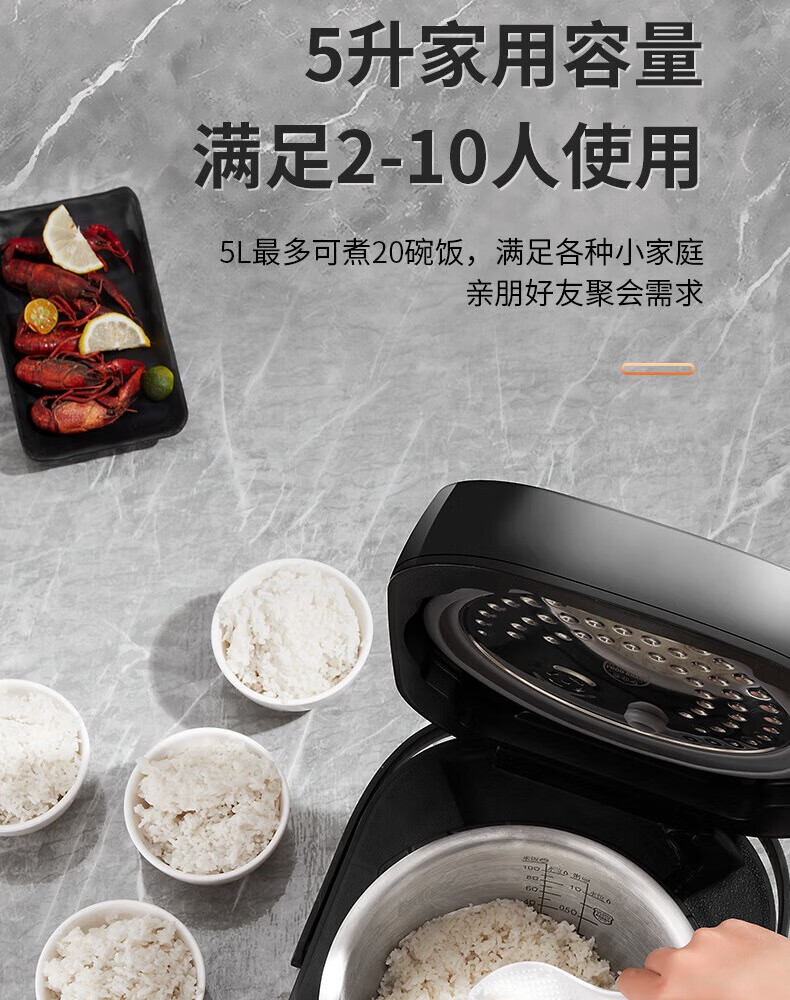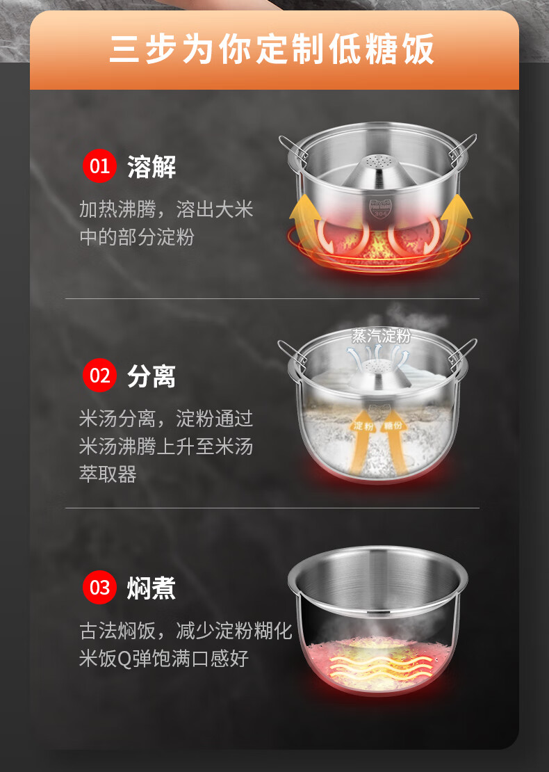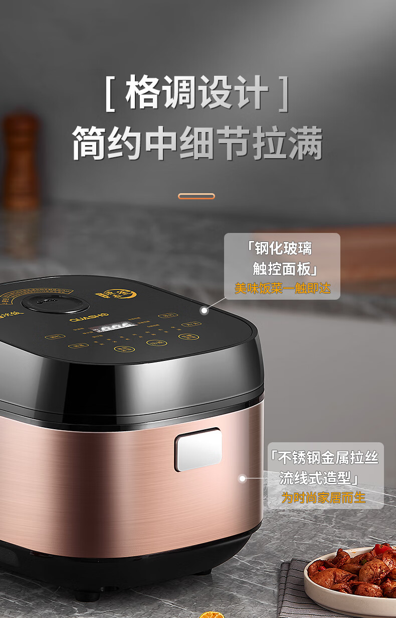 QUASHOIH加热低糖电饭煲0涂层一级能效5升3-5-8个人家用304不锈钢球釜内胆米汤分离沥米饭预约蒸米电饭锅 玫瑰金升级【1级能效】 5L 3-8人适用 【高端电饭煲-萃取米汤】