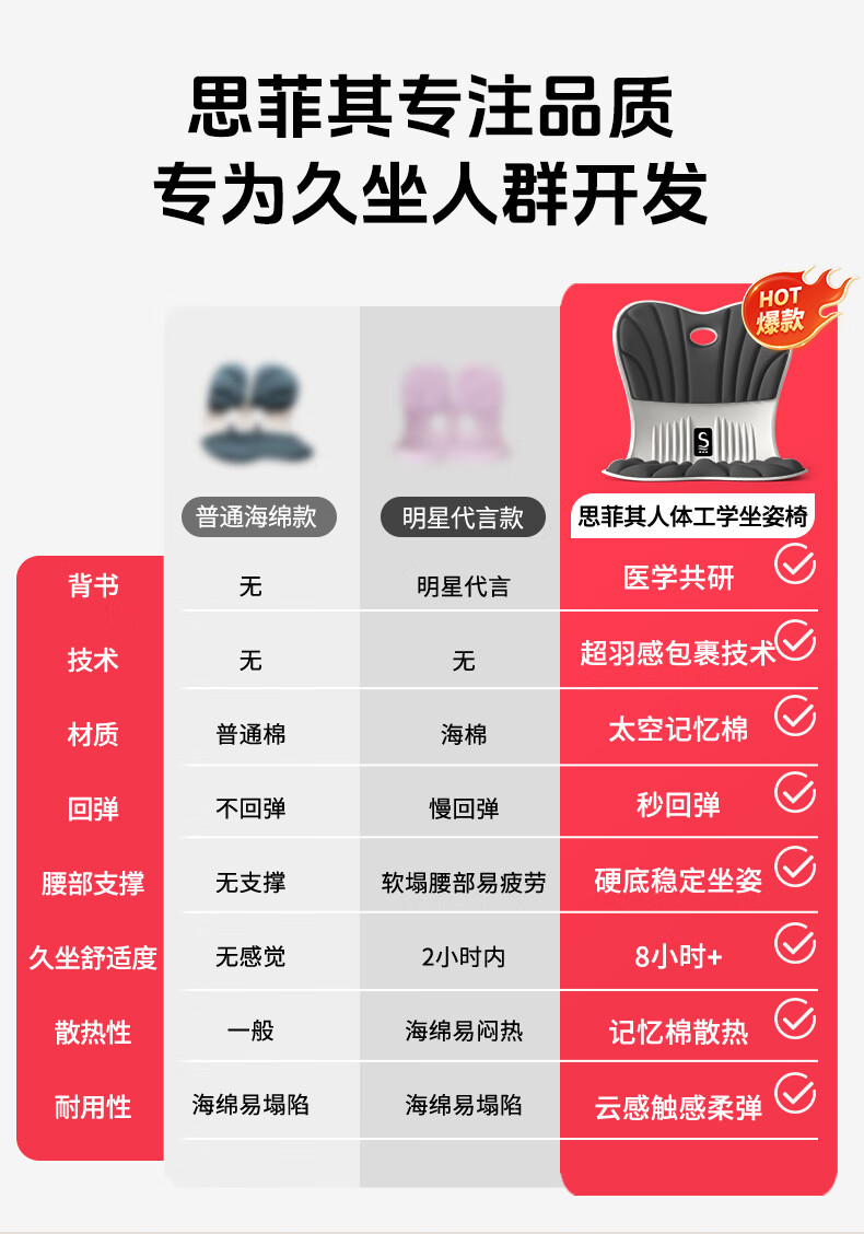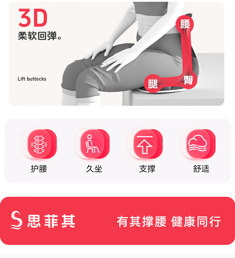 思菲其护腰坐垫靠垫护腰久坐神器人体工学椅支撑腰部坐靠背一体座椅垫