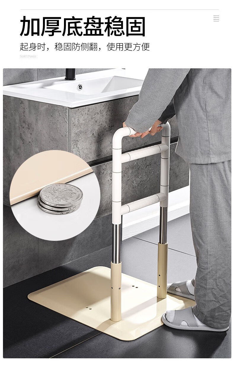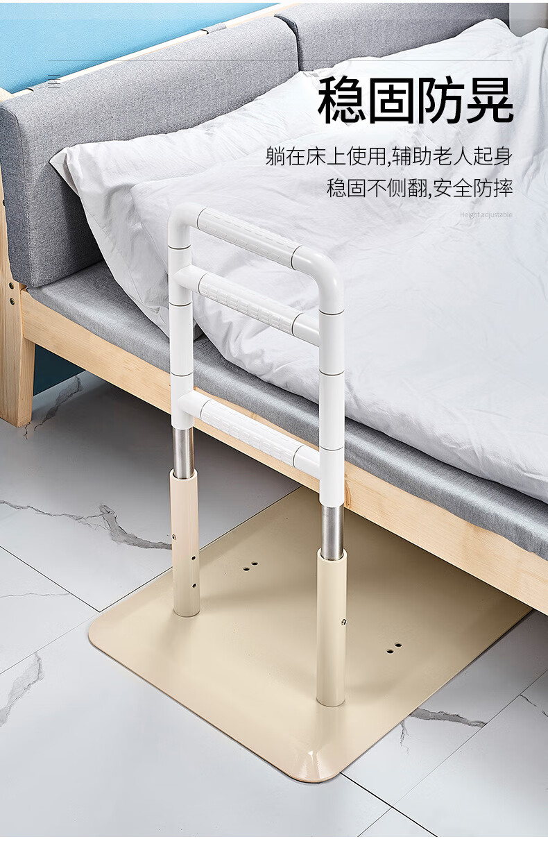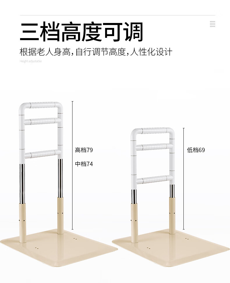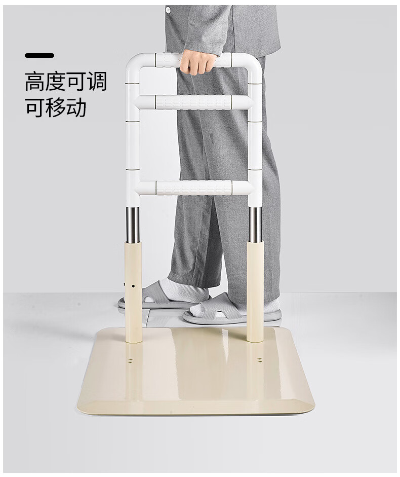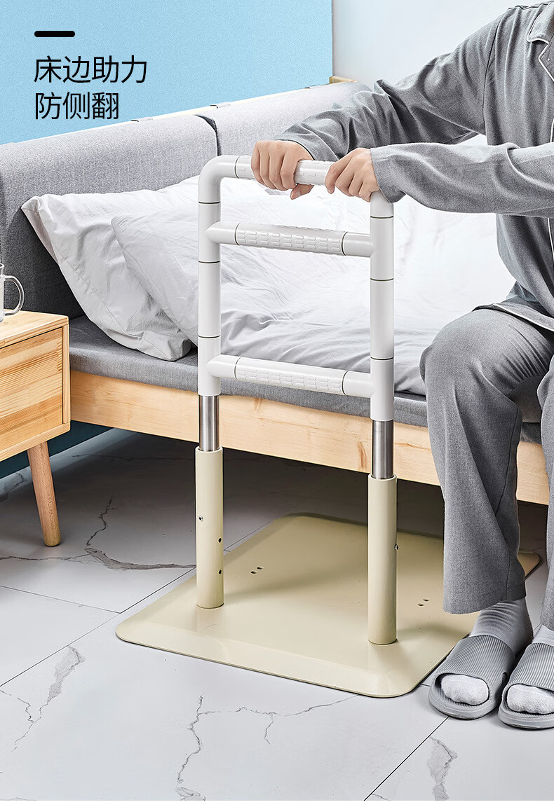 家文化(JIAWENHUA)床边扶手老人辅助起身器沙发马桶防摔栏杆把孕妇安全助力架免打孔 医护可调节高度免打孔-米白色