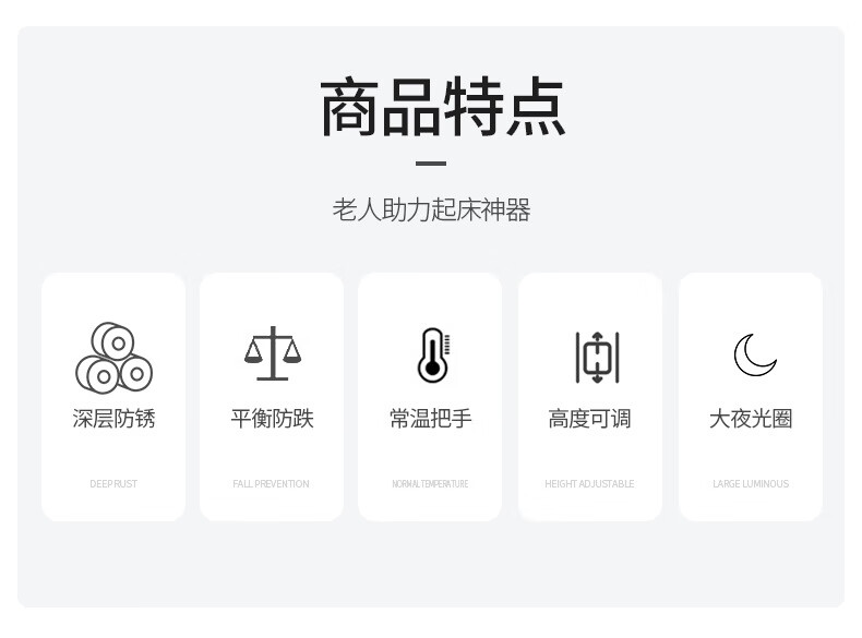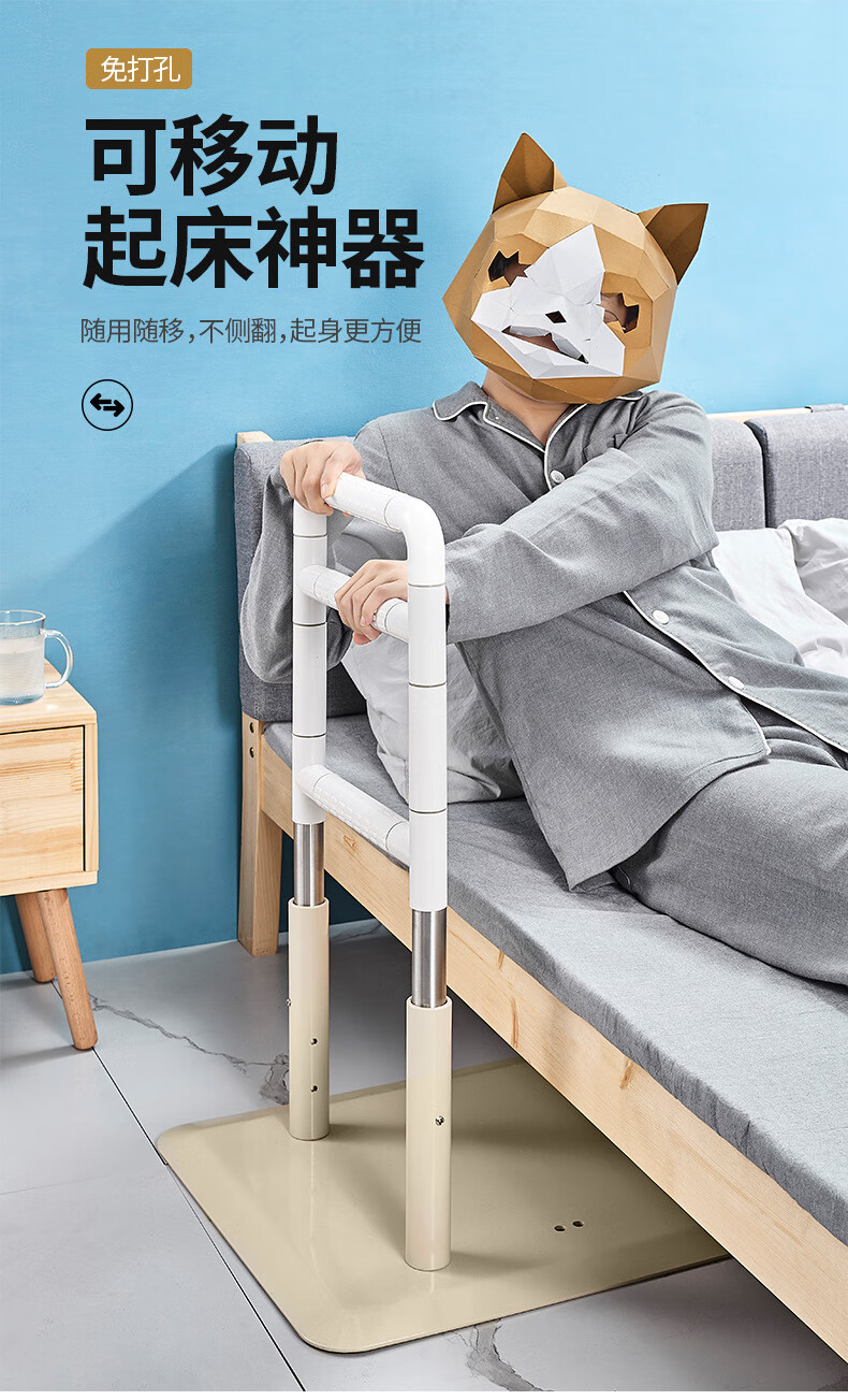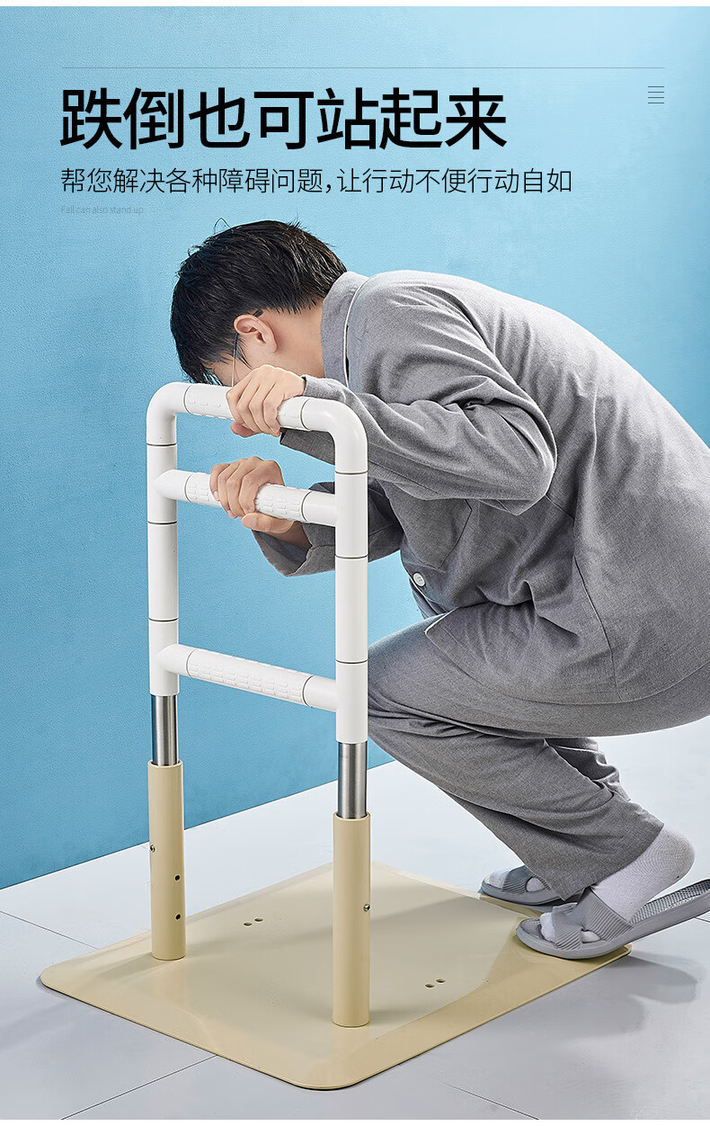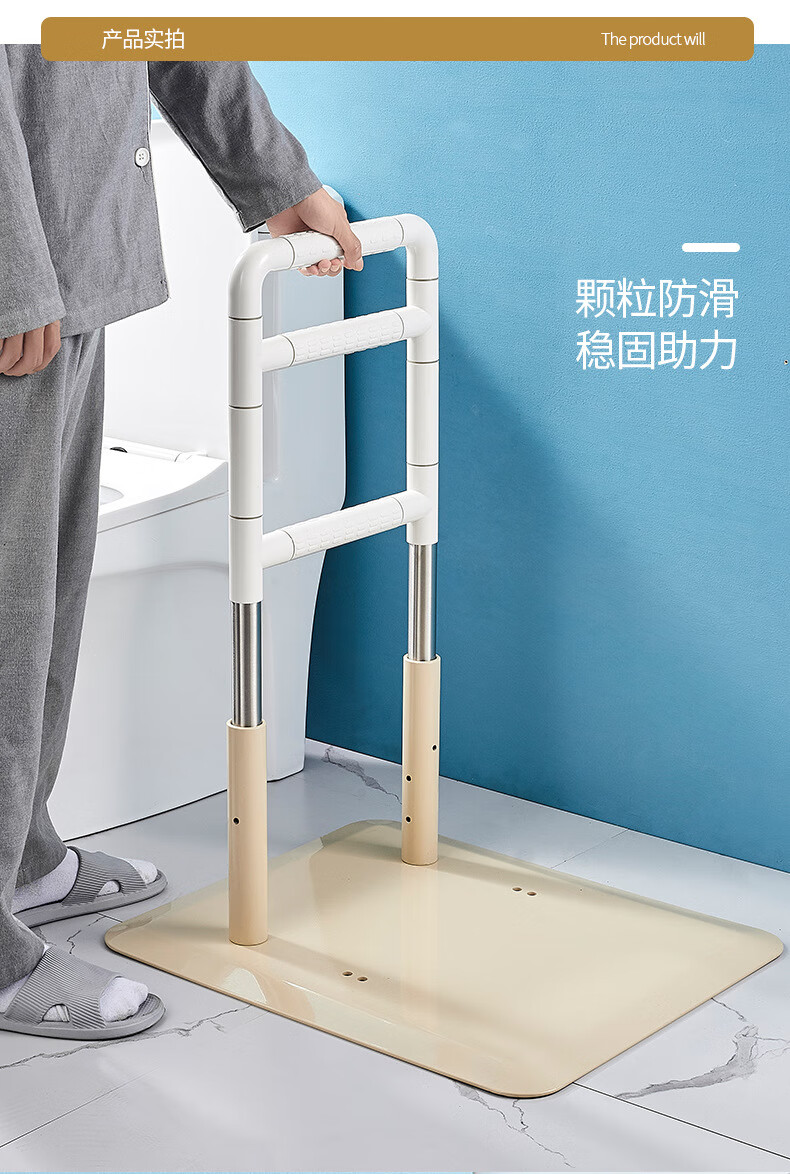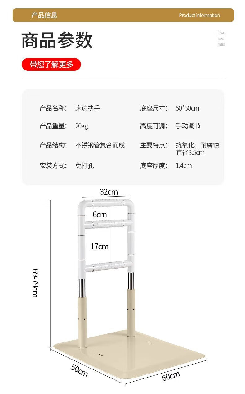 家文化(JIAWENHUA)床边扶手老人辅助起身器沙发马桶防摔栏杆把孕妇安全助力架免打孔 医护可调节高度免打孔-米白色